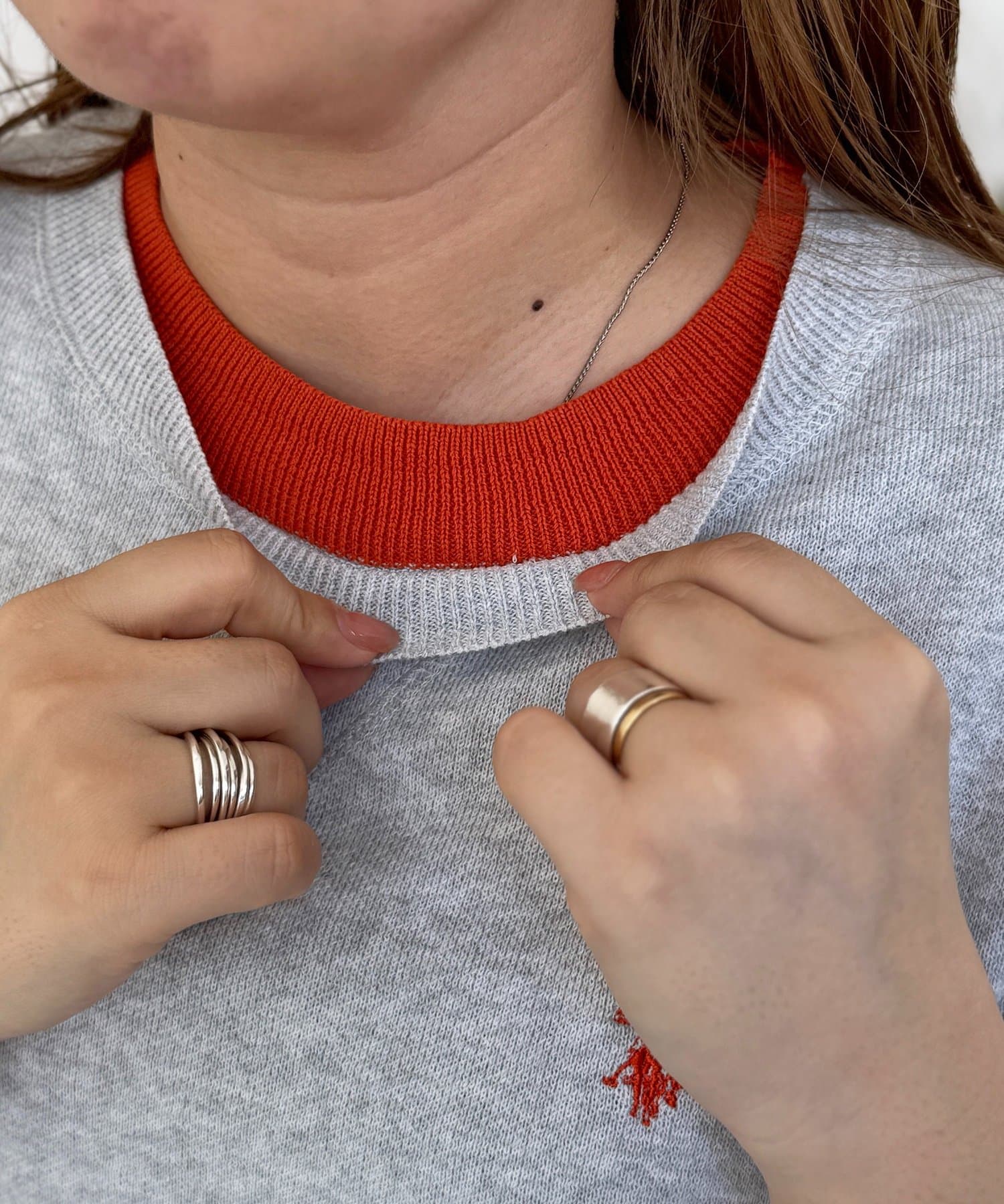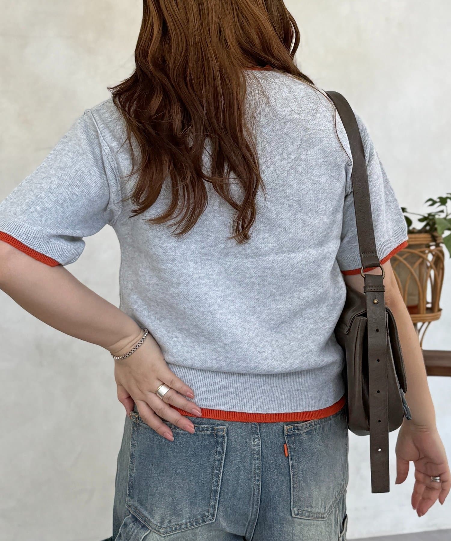 ・襟元、袖口、裾からのぞく配色カラーがコーディネートのアクセントに
