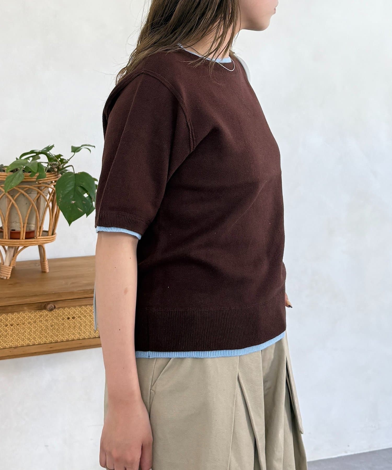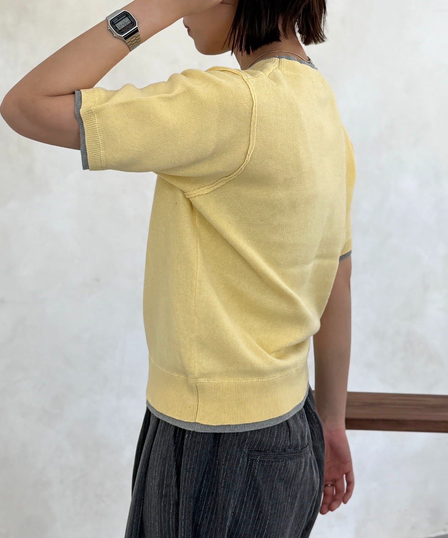 Tシャツを重ね着したようなデザインで、忙しい朝もこれ1枚でおしゃれなスタイリングが完成します。
