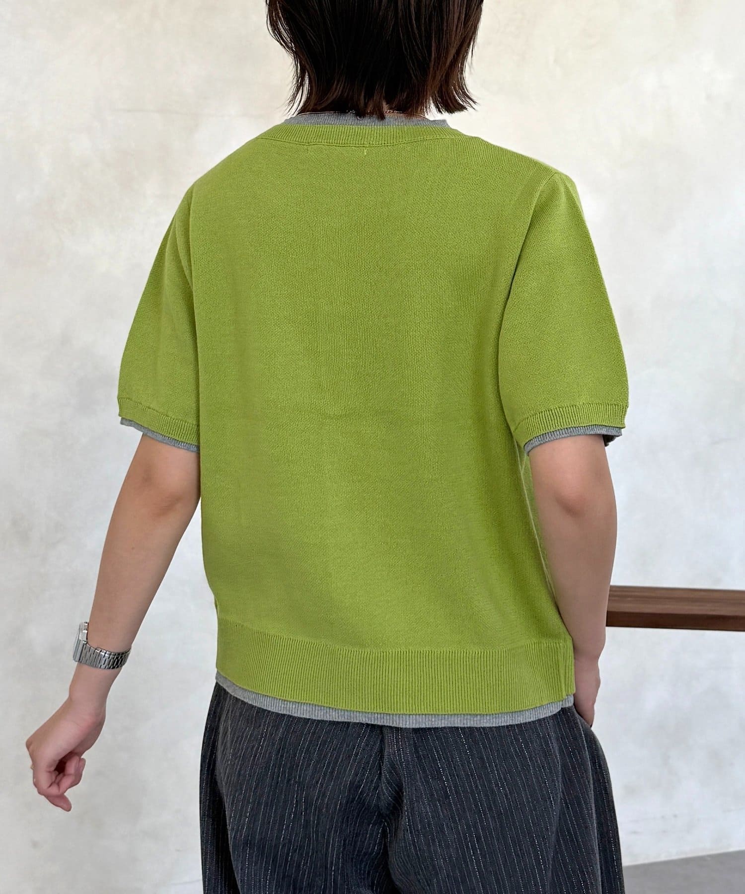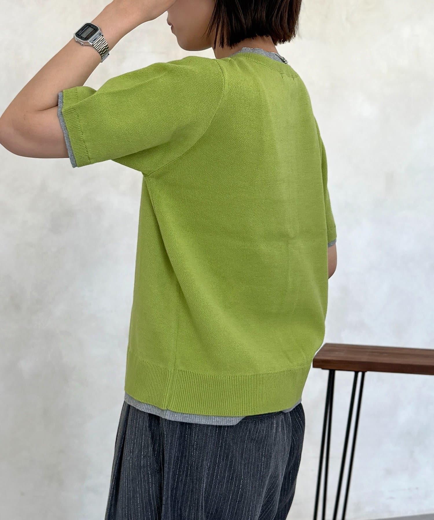 Tシャツを重ね着しているかのようなネックデザインで、コーディネートに悩まず一枚でスタイルが完成します。