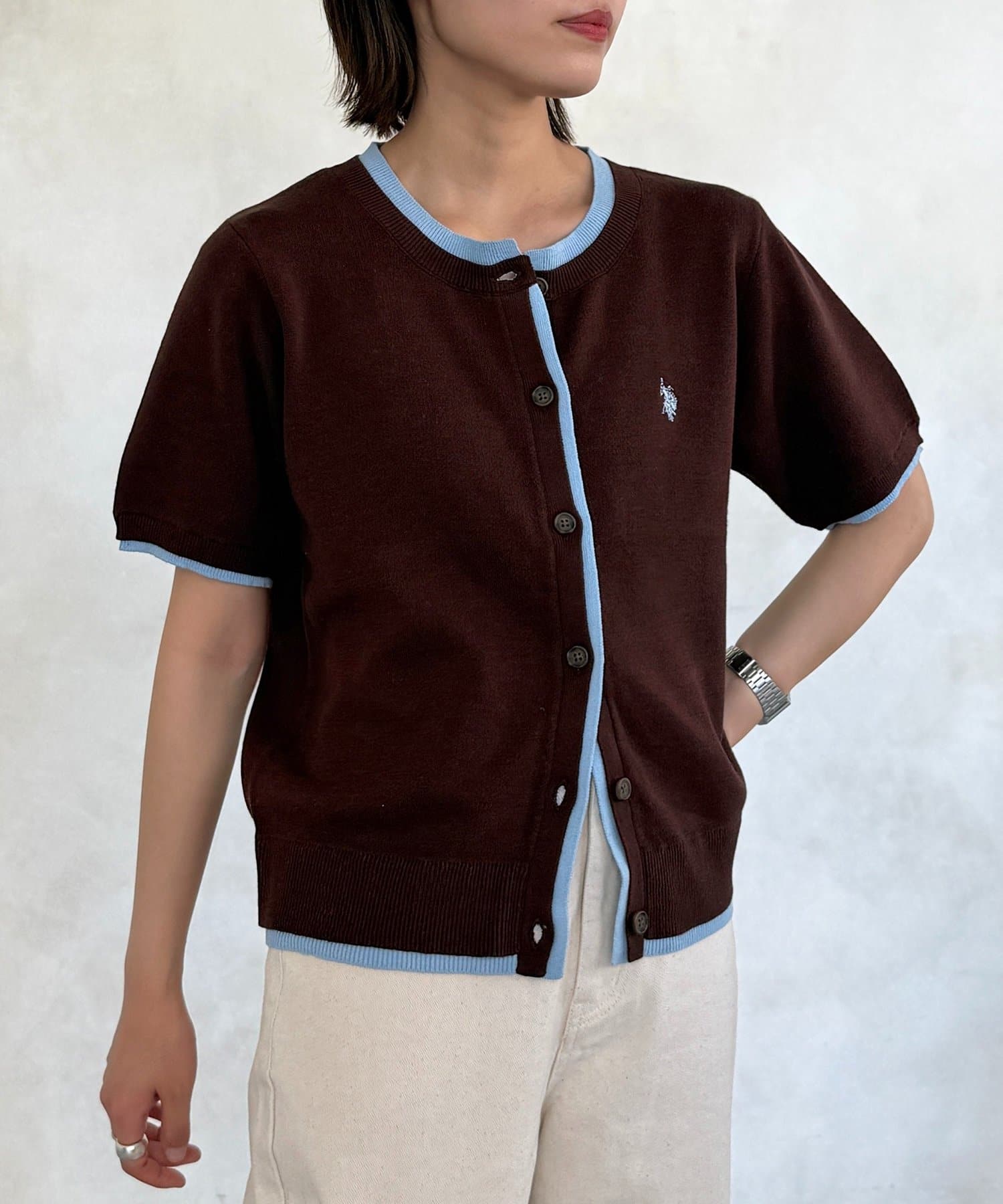CPCM(シーピーシーエム) 【U.S. POLO ASSN.】フェイクレイヤードスウェットライクカーディガン