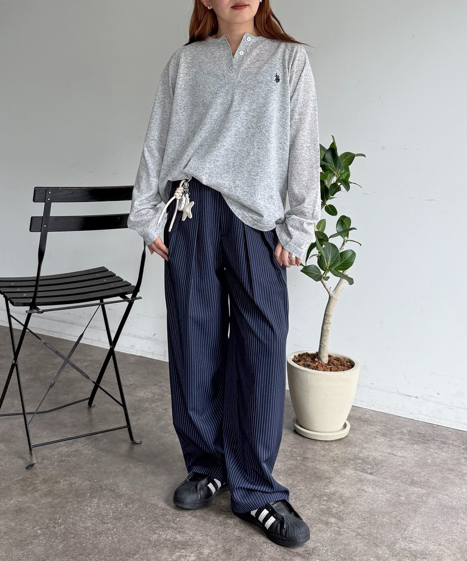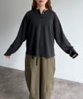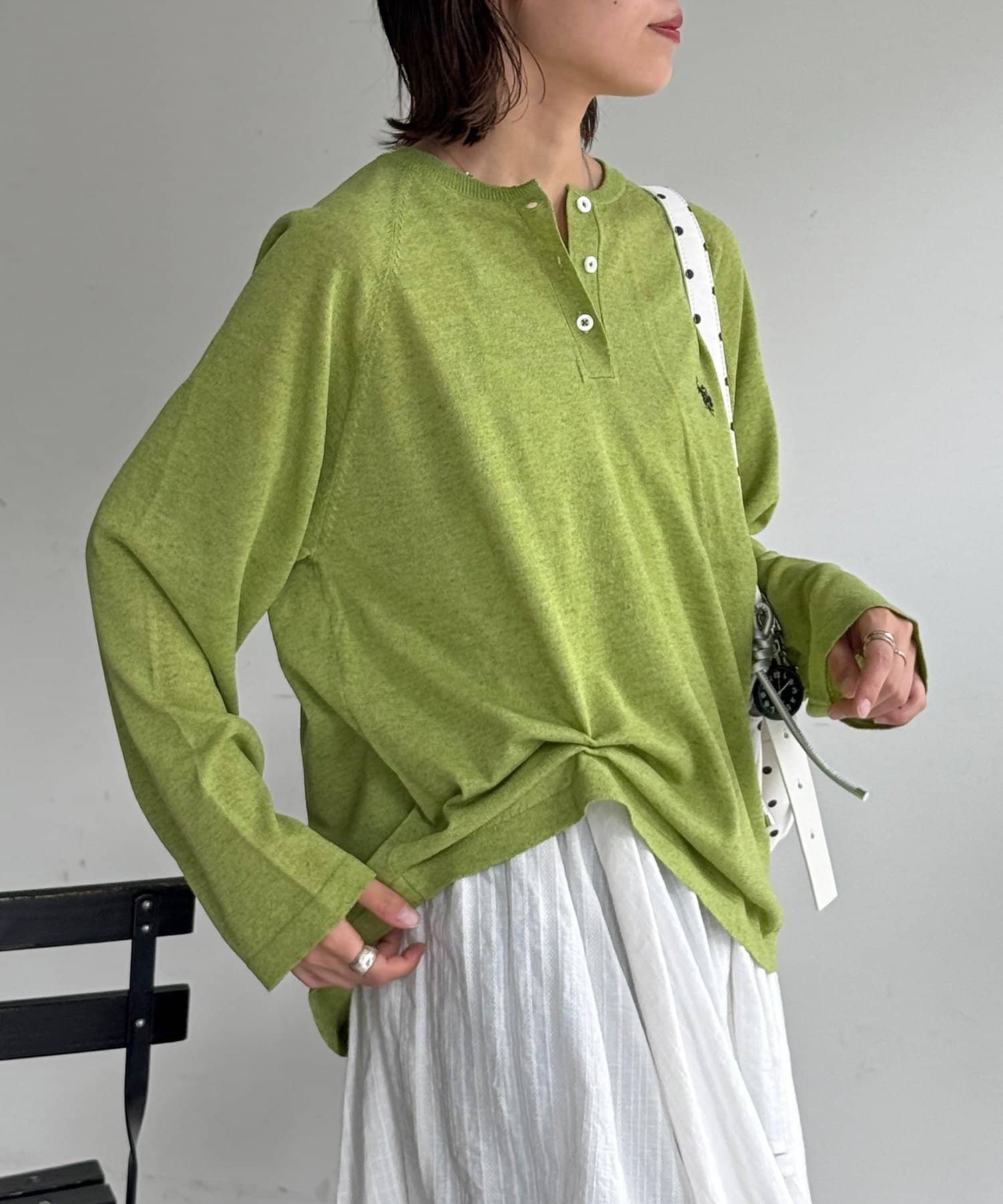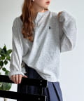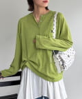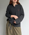 ・胸元のワンポイント刺繍とヘンリーネックが顔周りをすっきりと見せてくれます。