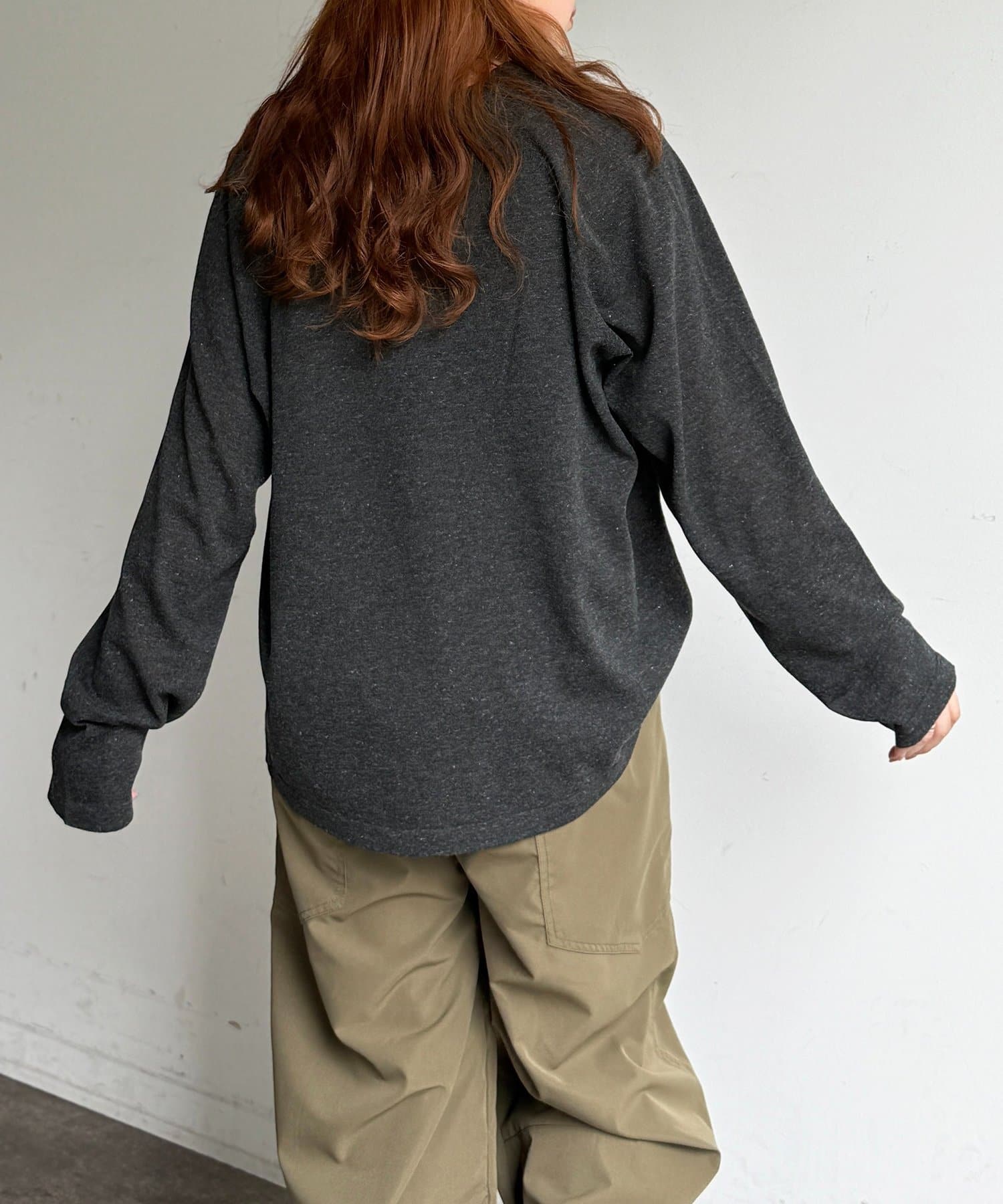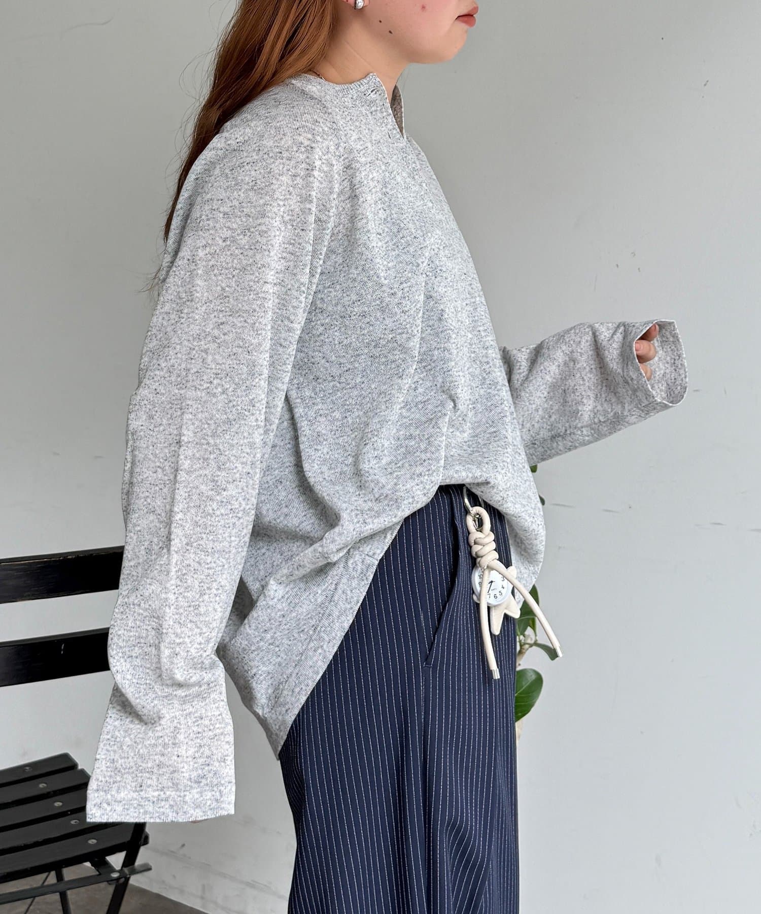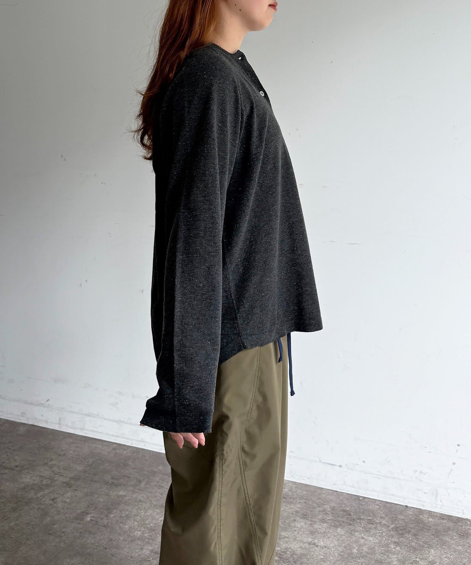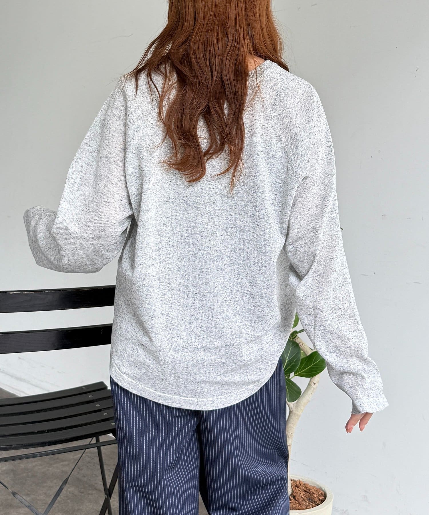 ゆったりとしたシルエットとラグランスリーブが、身体のラインを拾わず華奢見えを叶えます。