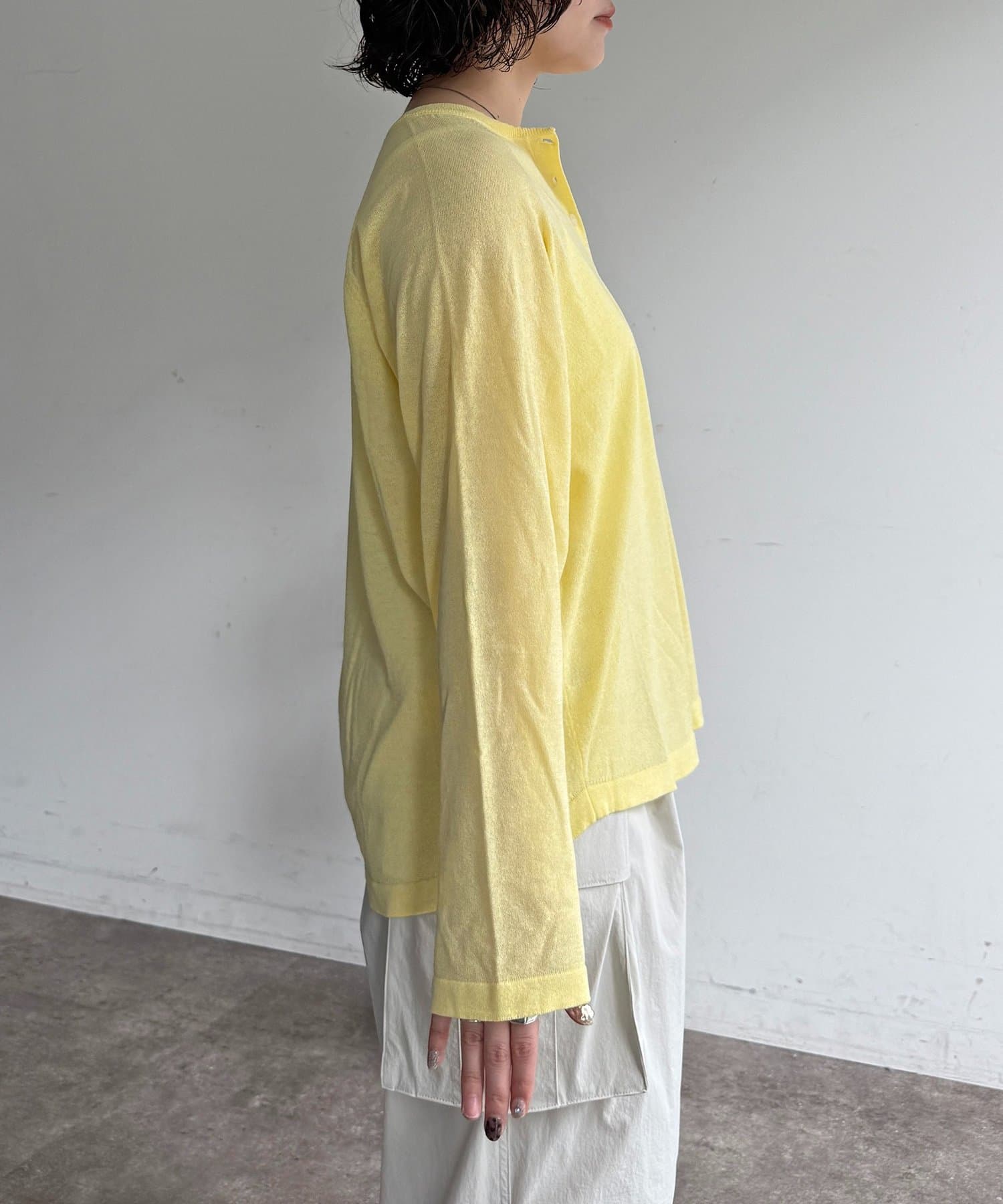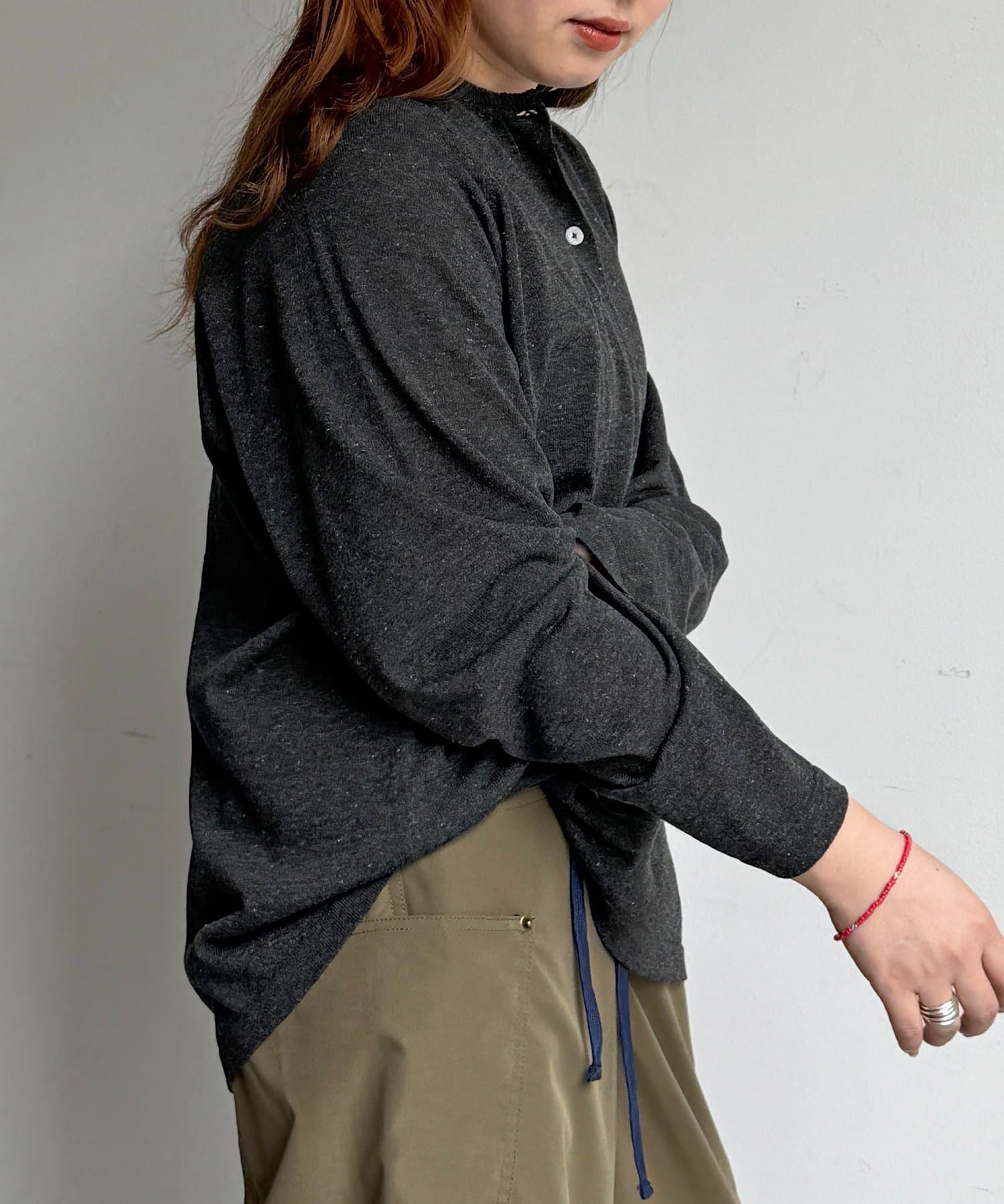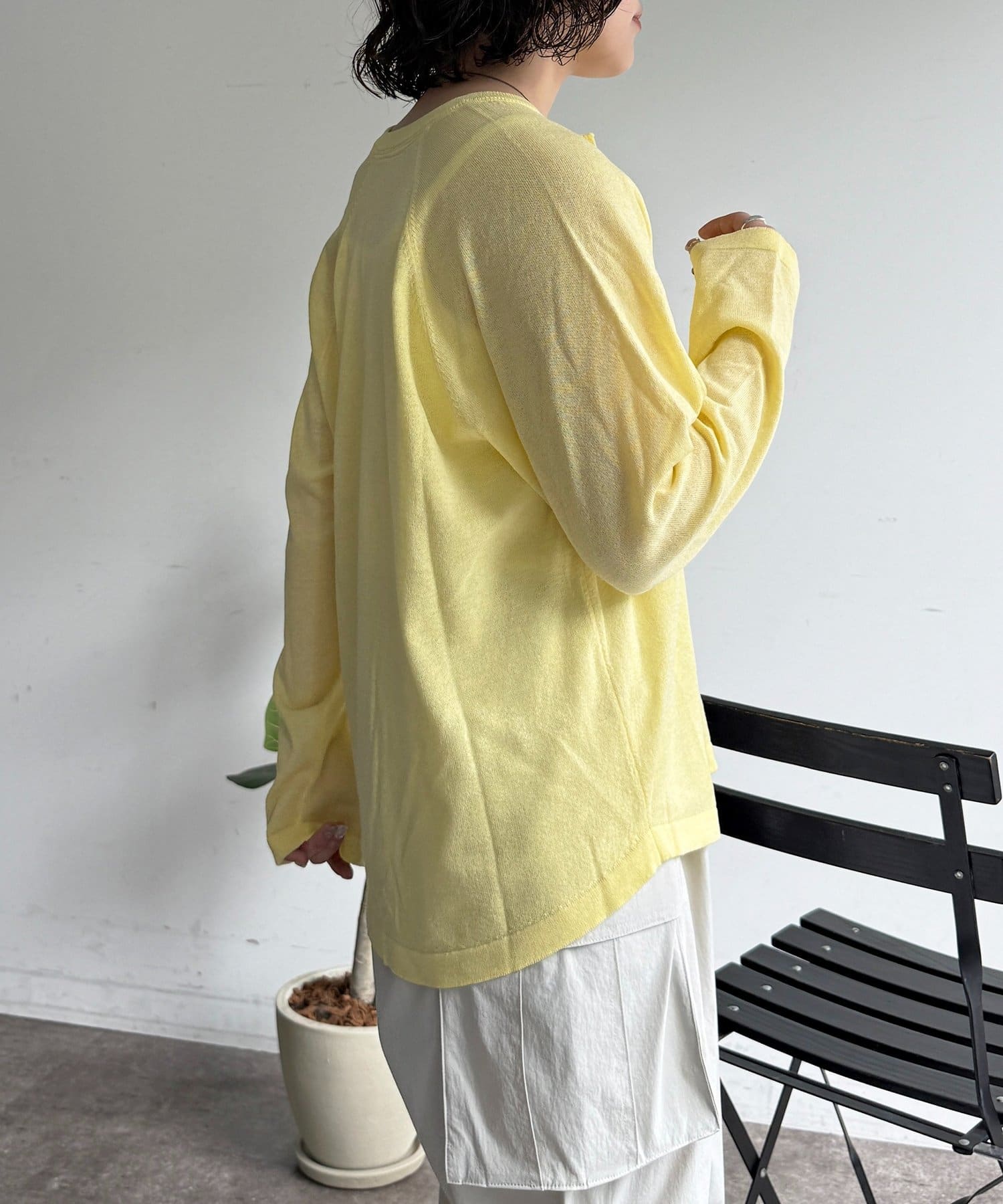 ・麻混のナチュラルな風合いと、柔らかなニットの着心地の良さが魅力です。