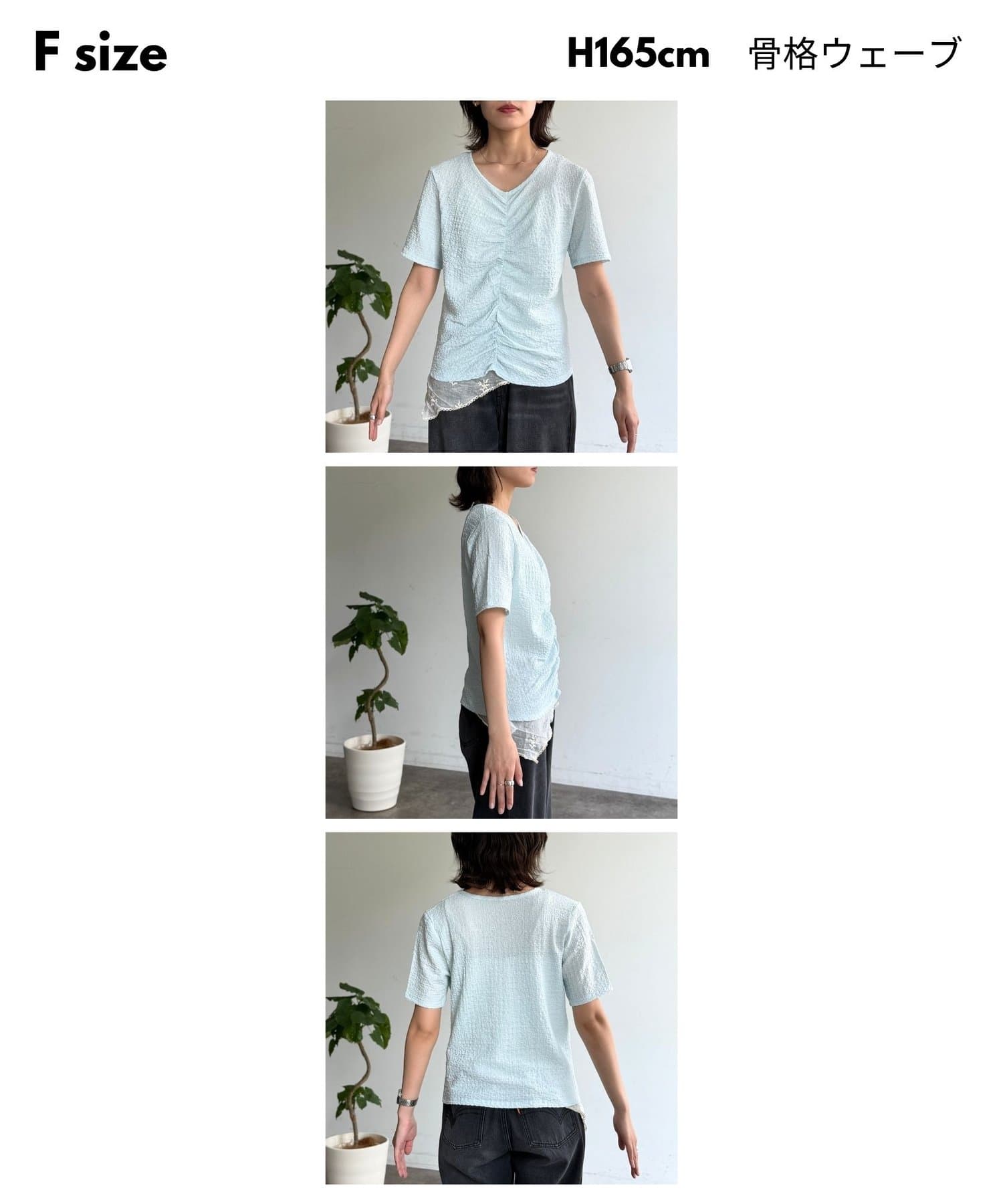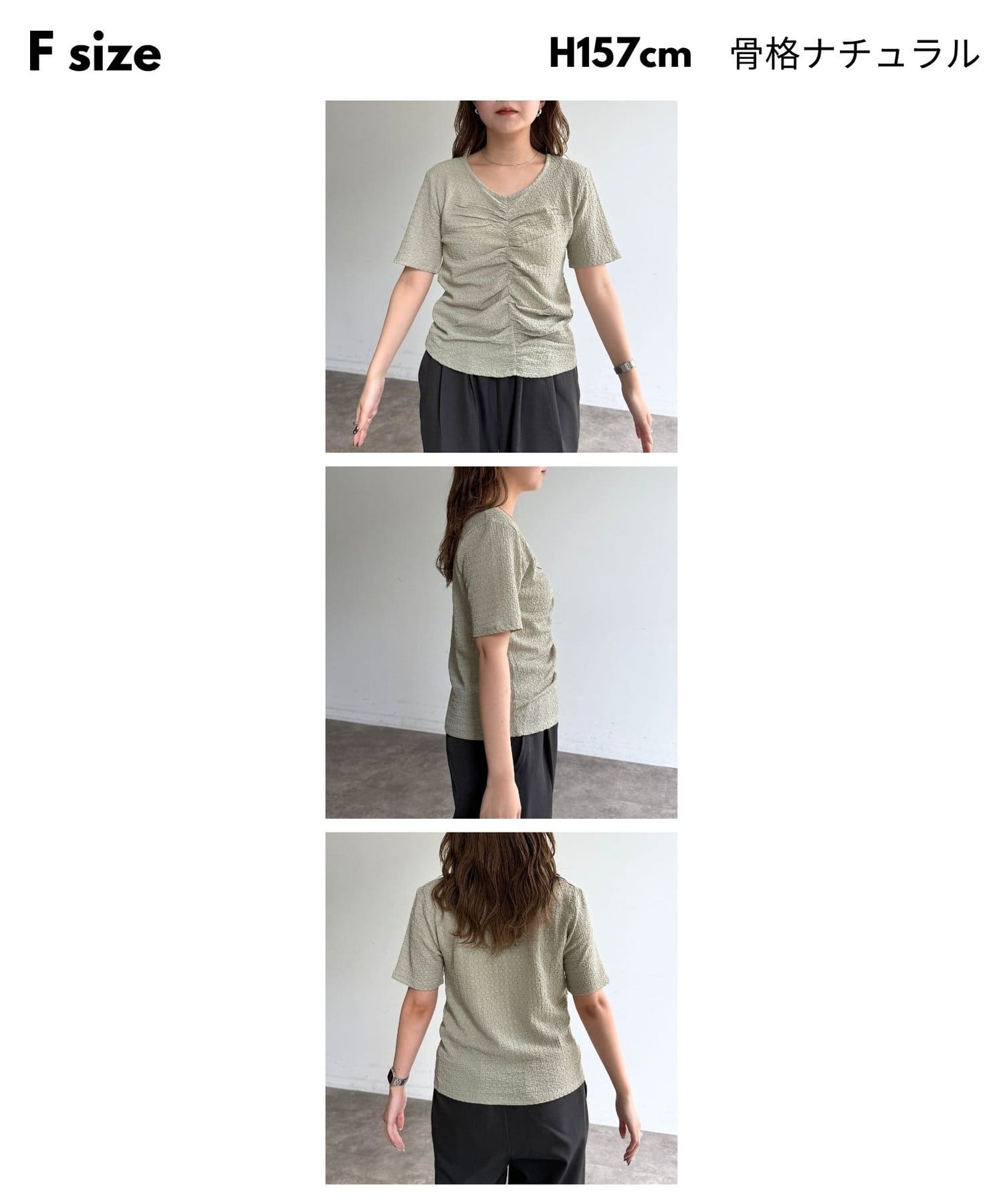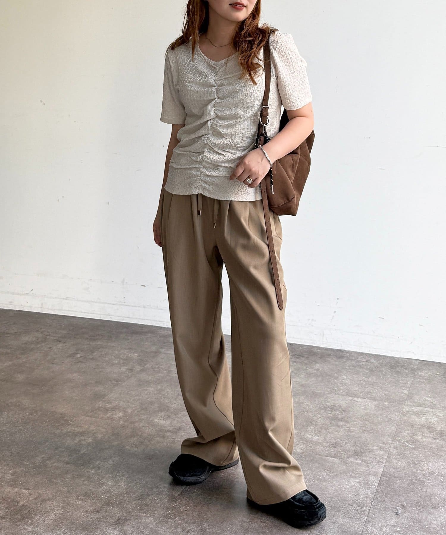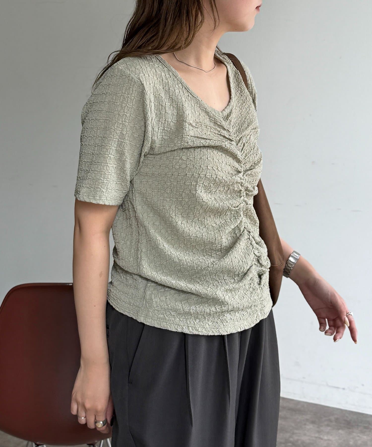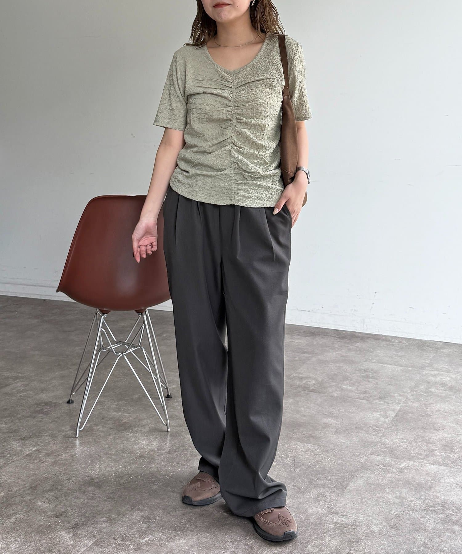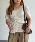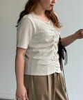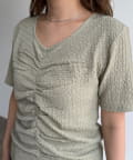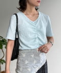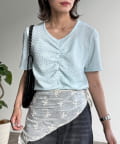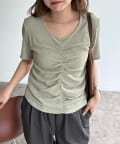 ・フロントのシャーリングデザインで、一枚でサマになる着映えトップス