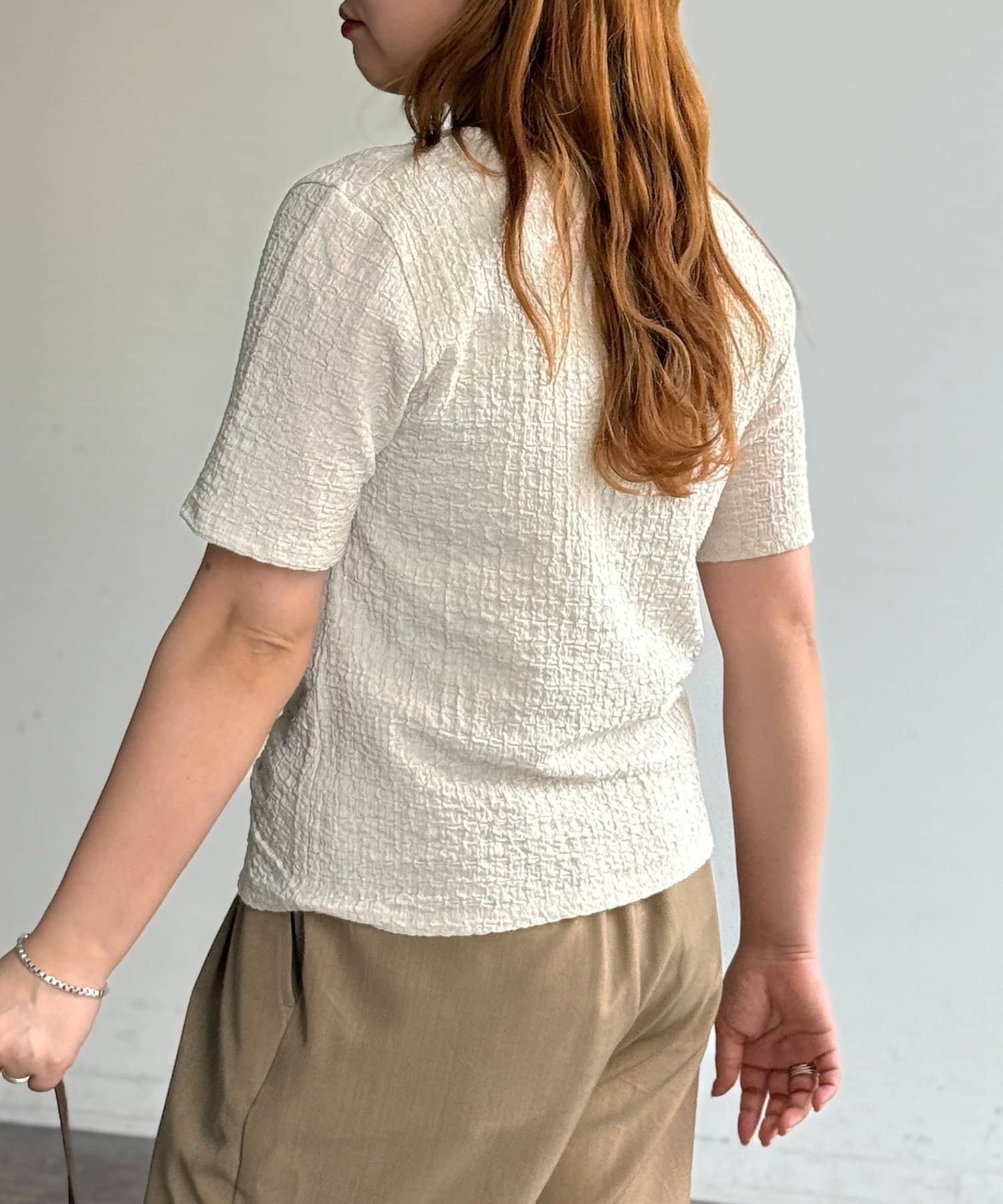 ポコポコとした立体感のある生地が、コーディネートにニュアンスをプラスしてくれる主役級トップス!