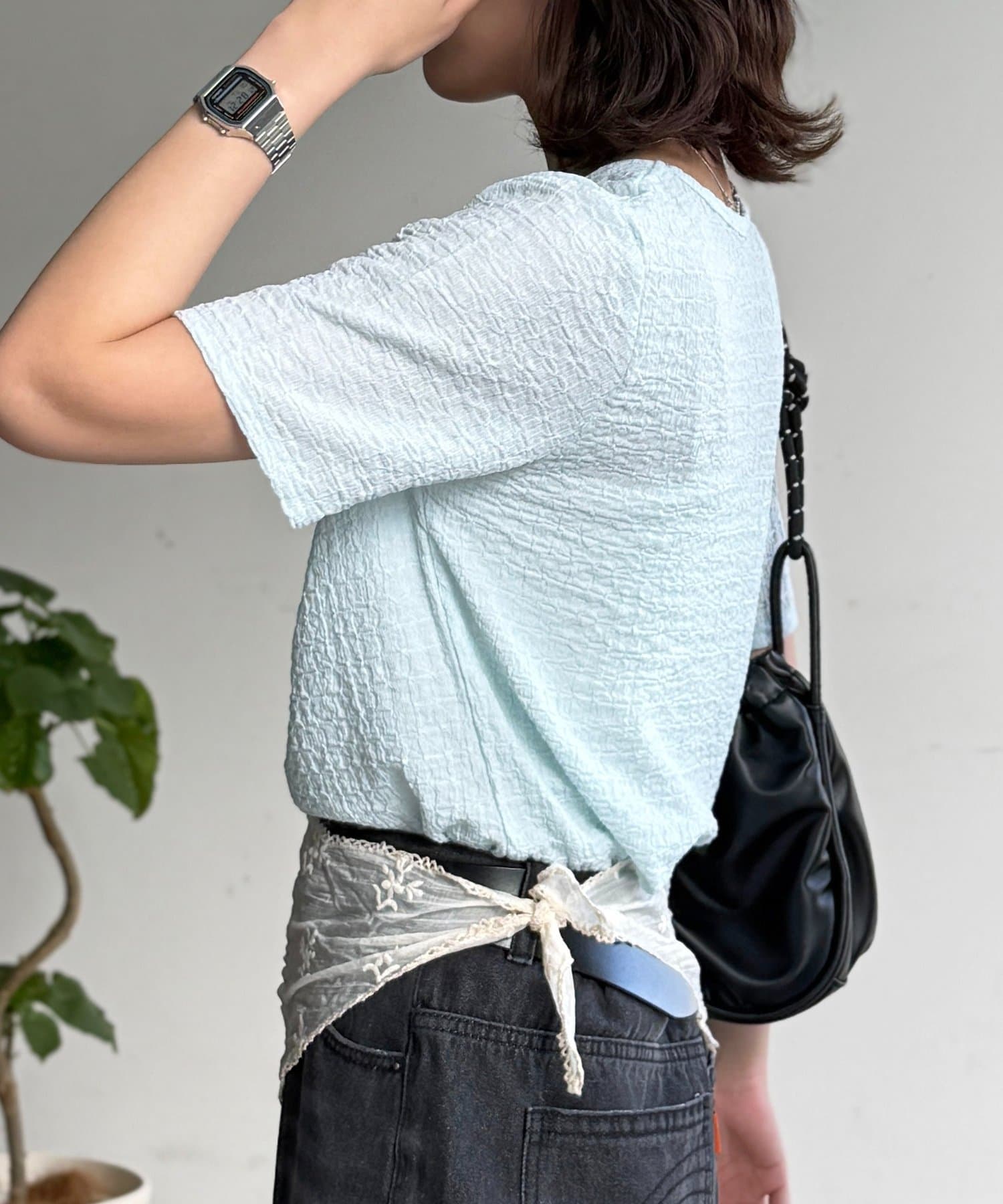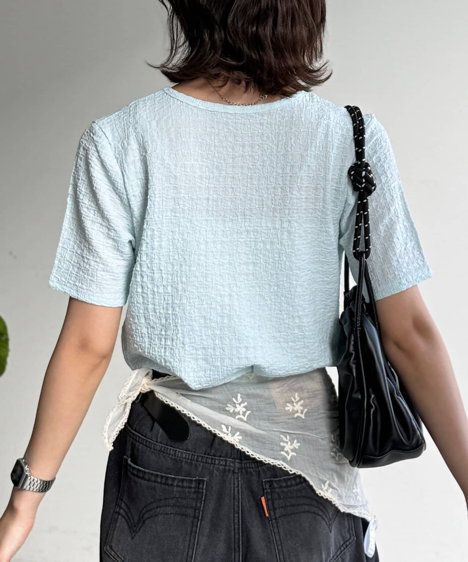 ・立体感のあるポコポコとした生地が、こなれた雰囲気を演出