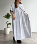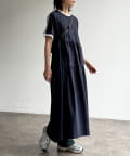 ・首元と袖口の配色がアクセントになるパイピングデザイン