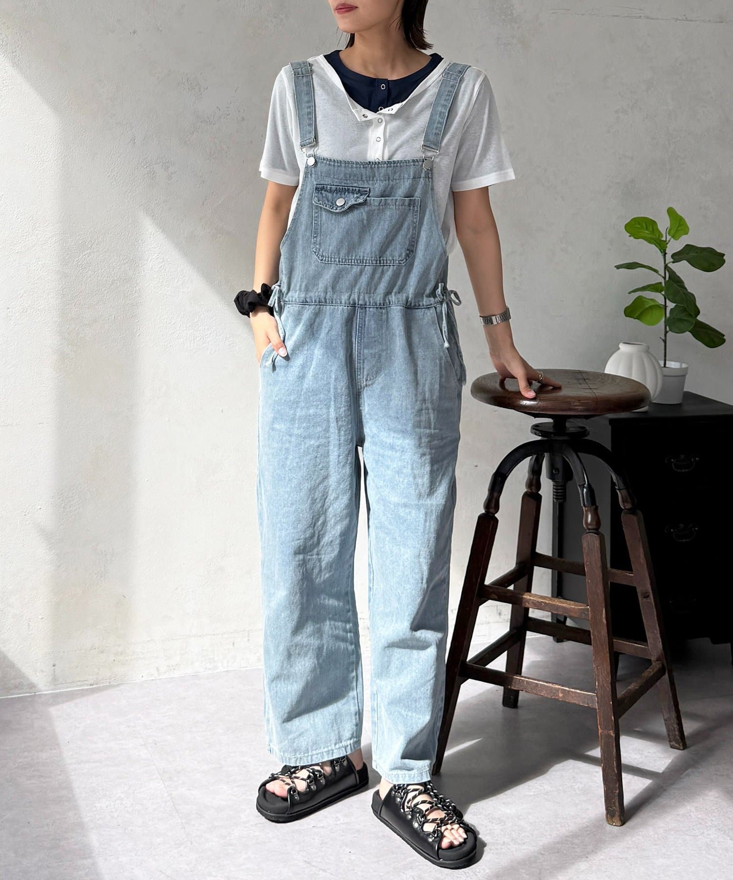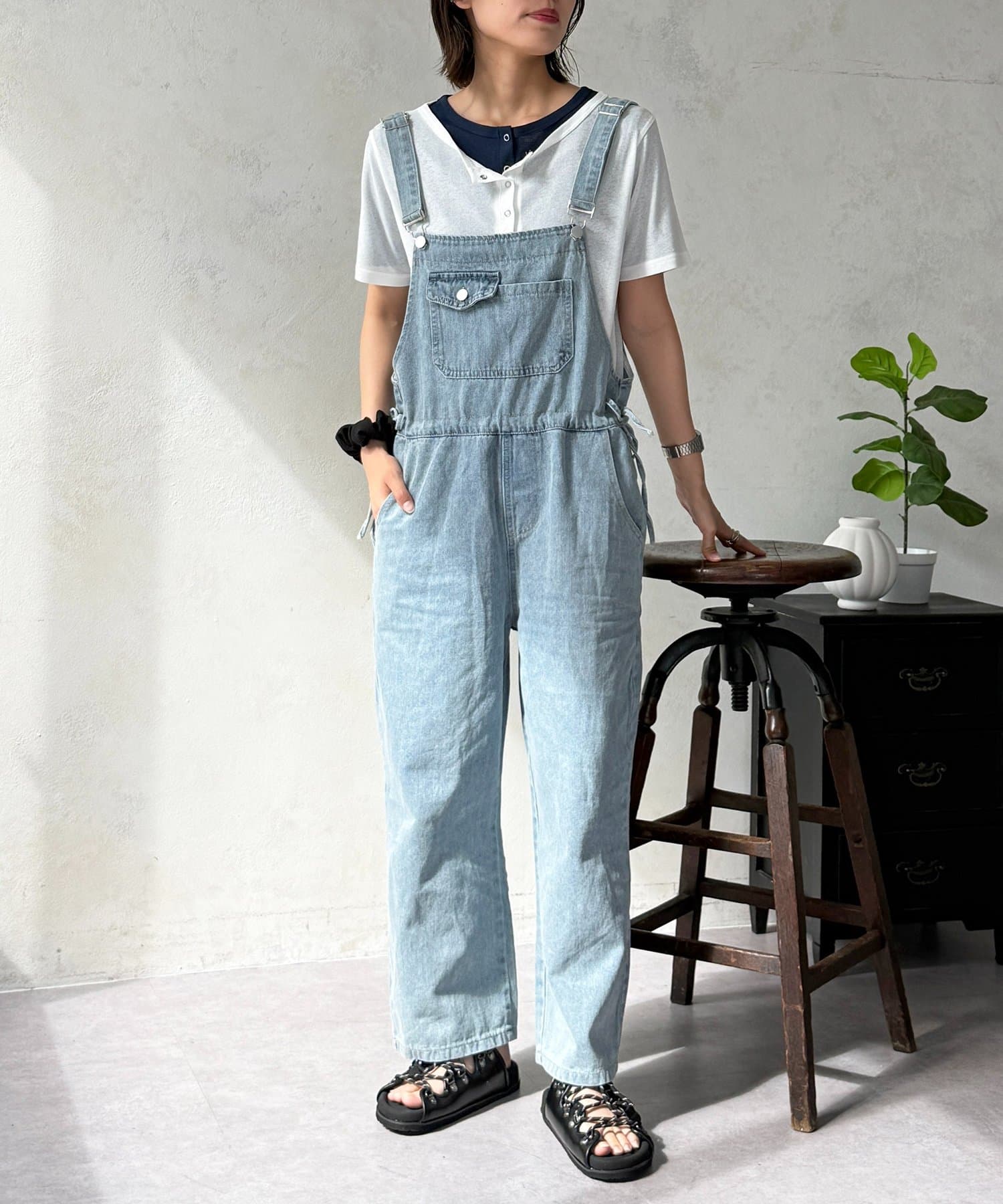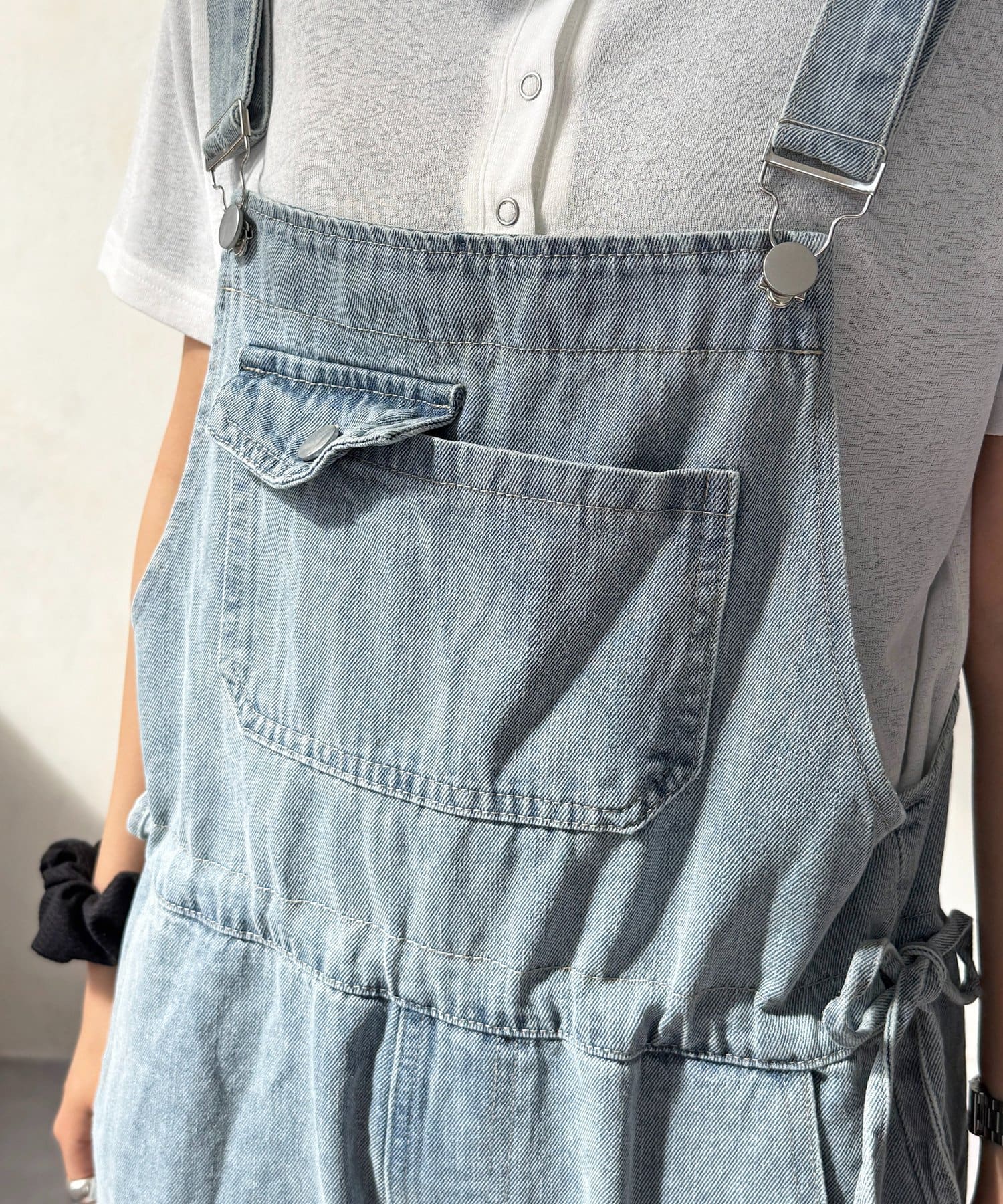 ウエストリボンデニムサロペット