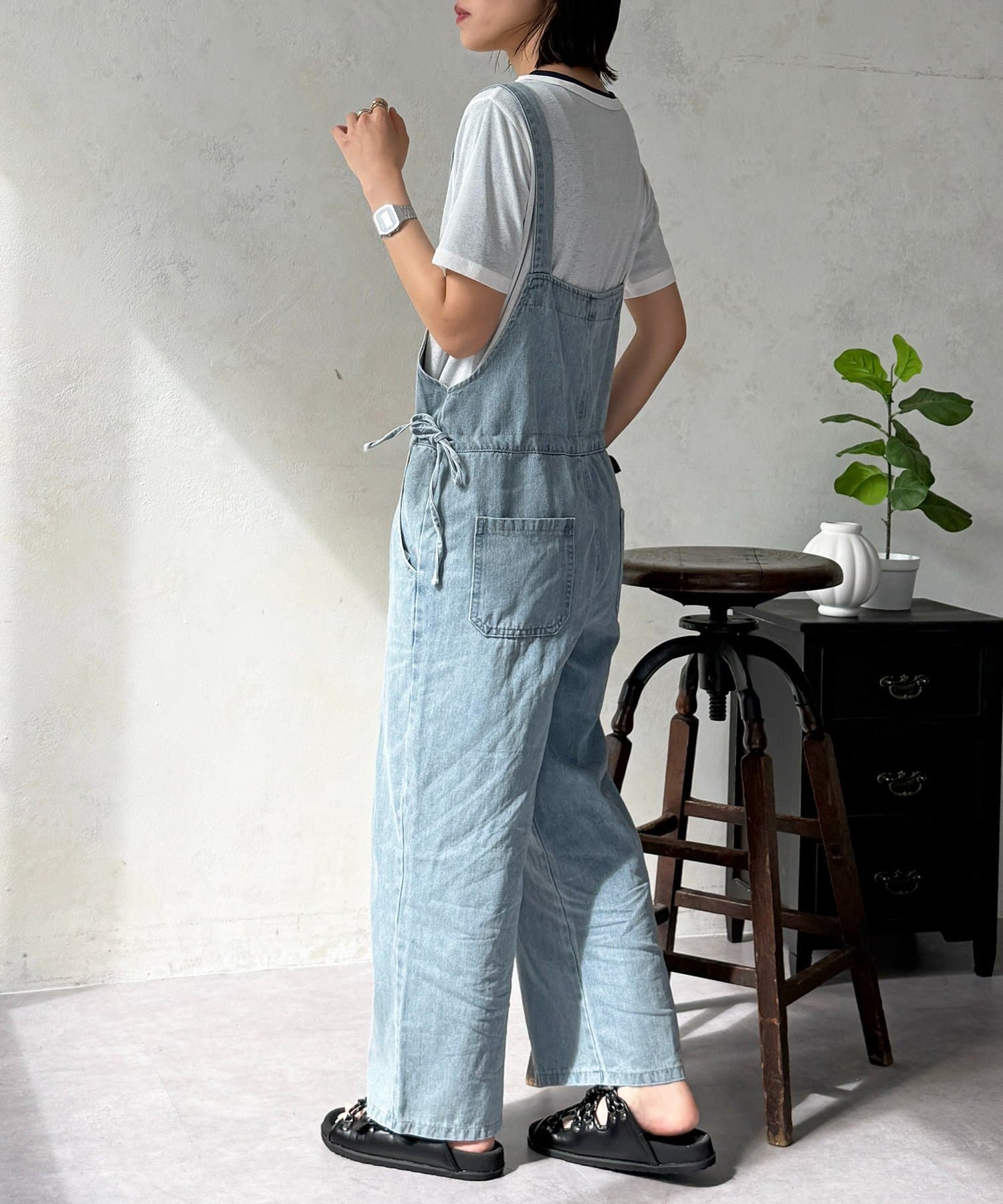 ウエストリボンでスタイルアップ!大人のためのデニムサロペット