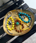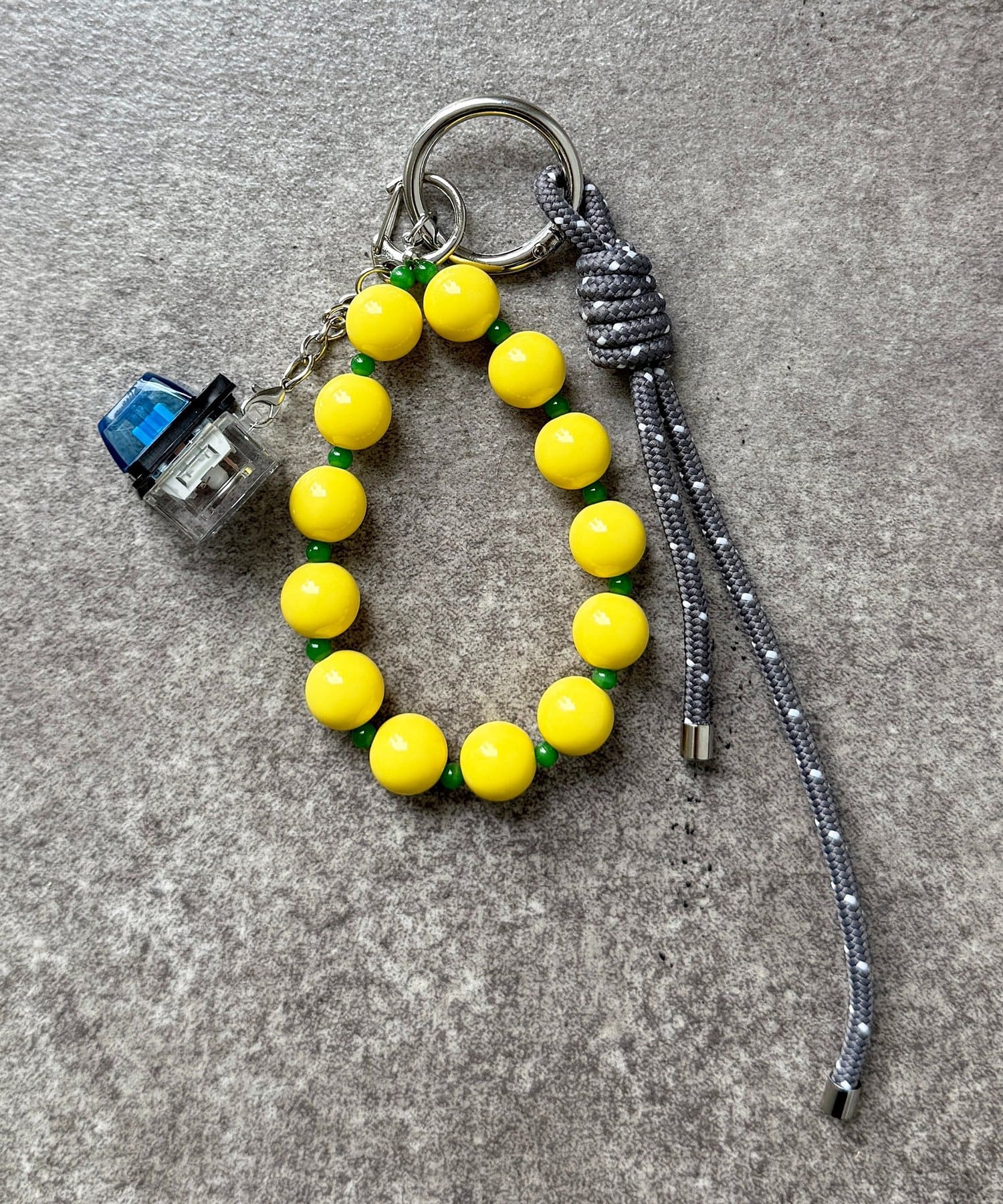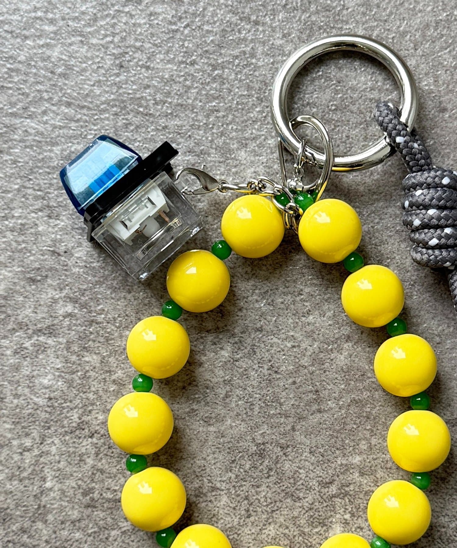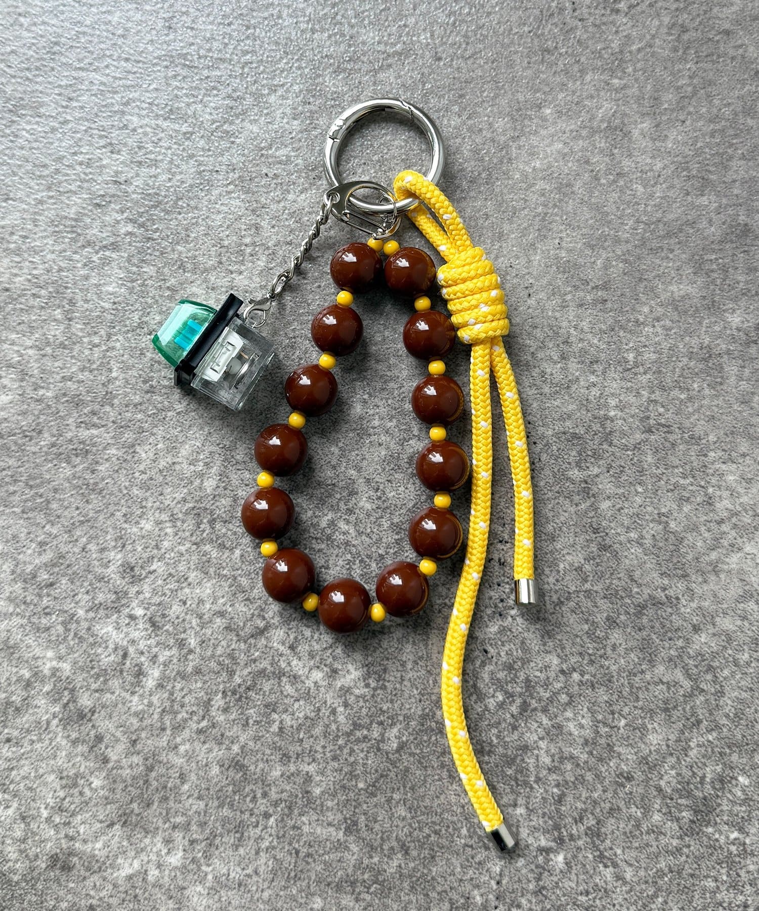 ・キーキャップやビーズ、ロープなど異素材の組み合わせが楽しいデザイン。