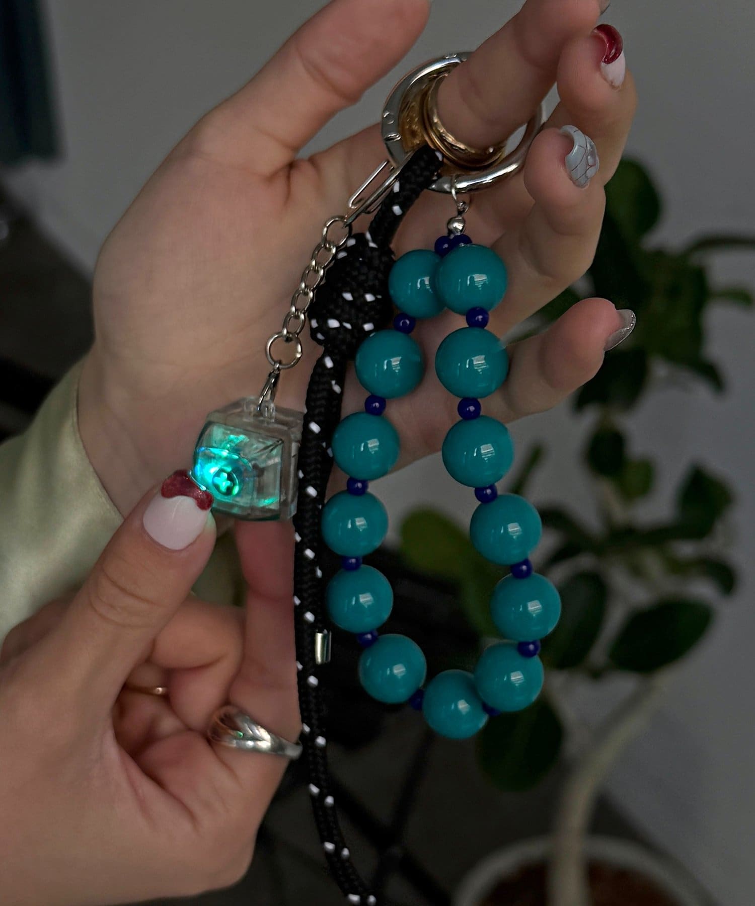 ぷっくりとしたビーズとカラフルなロープの組み合わせが、Y2Kムードを盛り上げます。