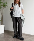 ・ワイドデニムやカーゴパンツと合わせたメンズライクなカジュアルコーデ。足元はスニーカーでラフにまとめるのがおすすめです。