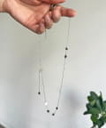 約50.5cmと少し長めのチェーンは、そのまま垂らしたりY字のシルエットを作ったりと、その日の気分や服装に合わせてアレンジを楽しめるのが魅力です。