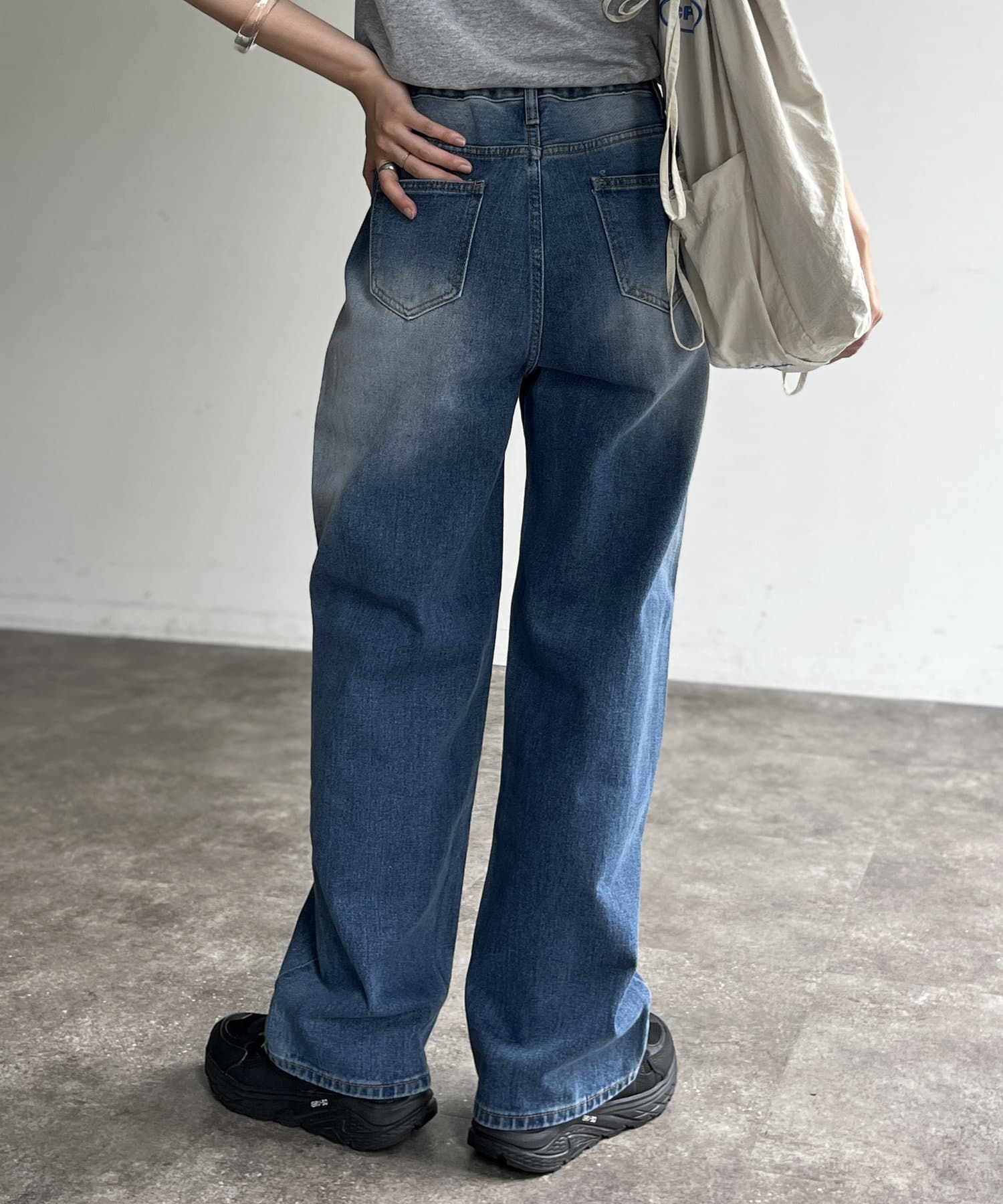 ・斜めに施されたオーバーダイ加工がスタイルアップ効果◎