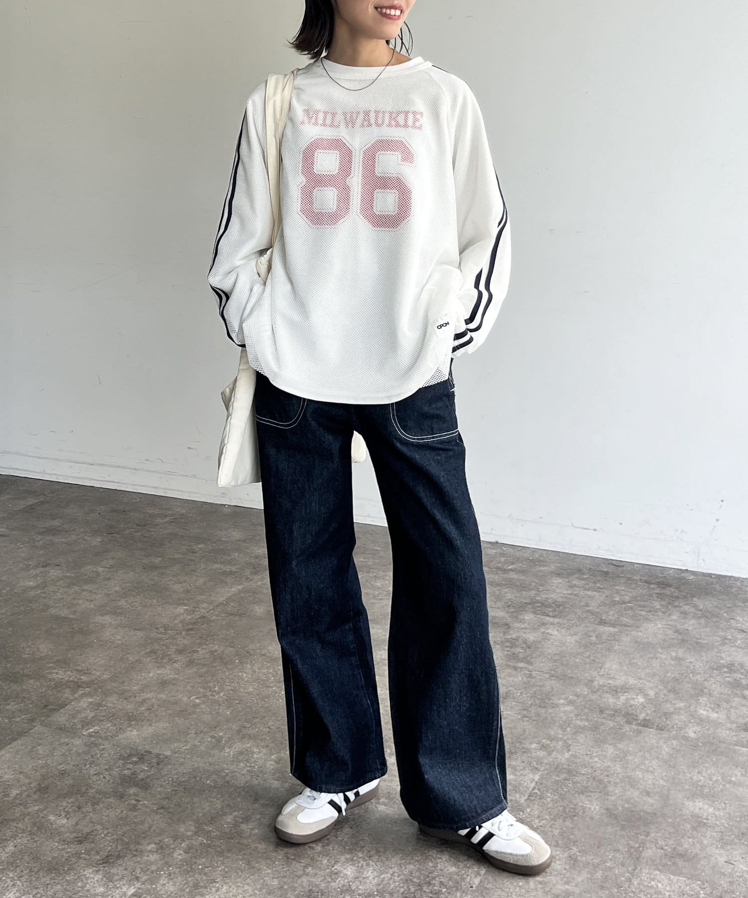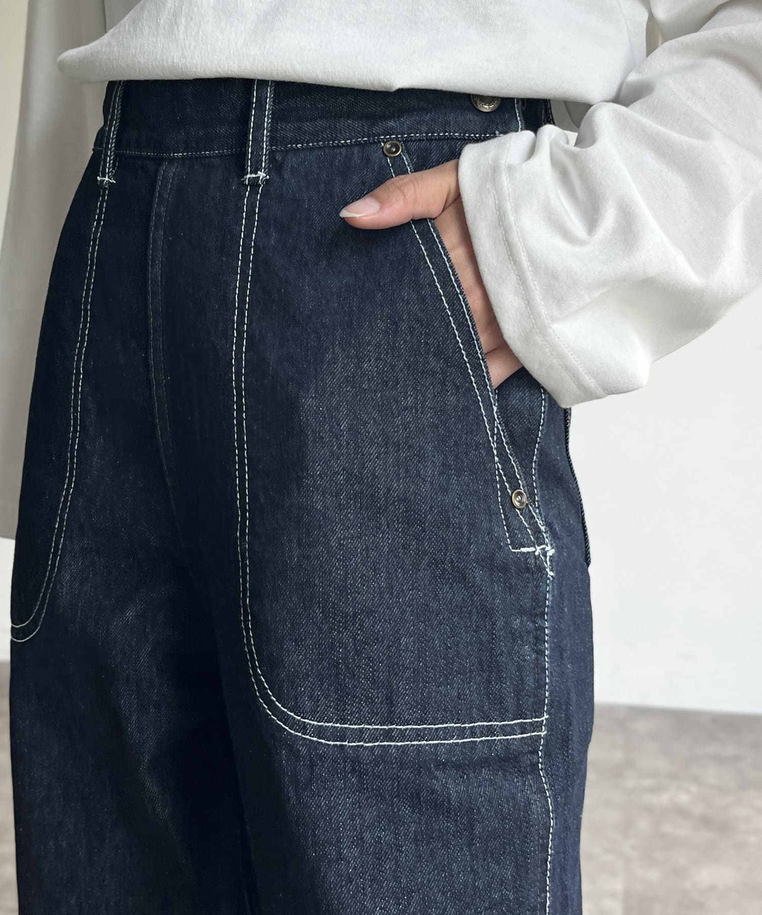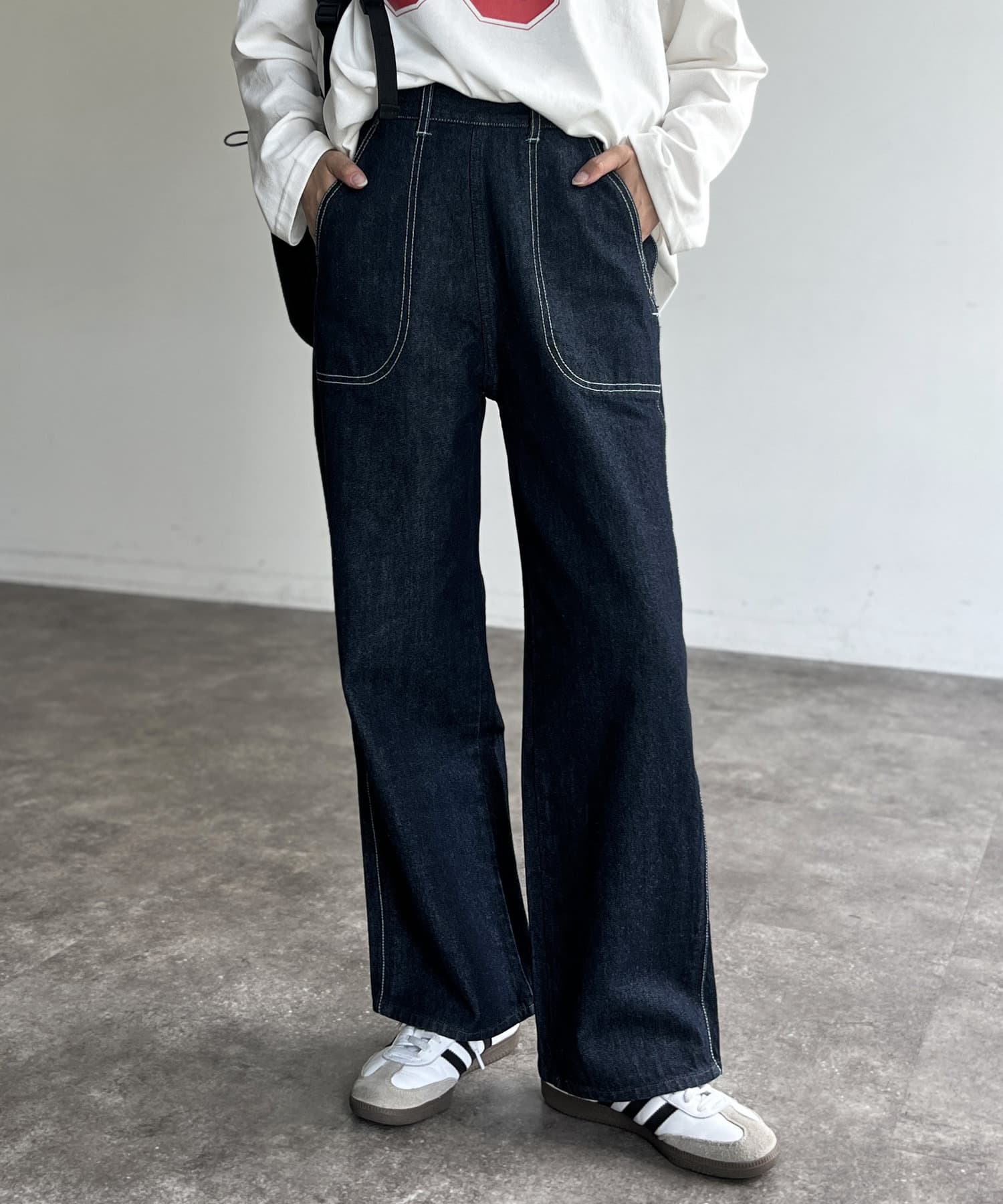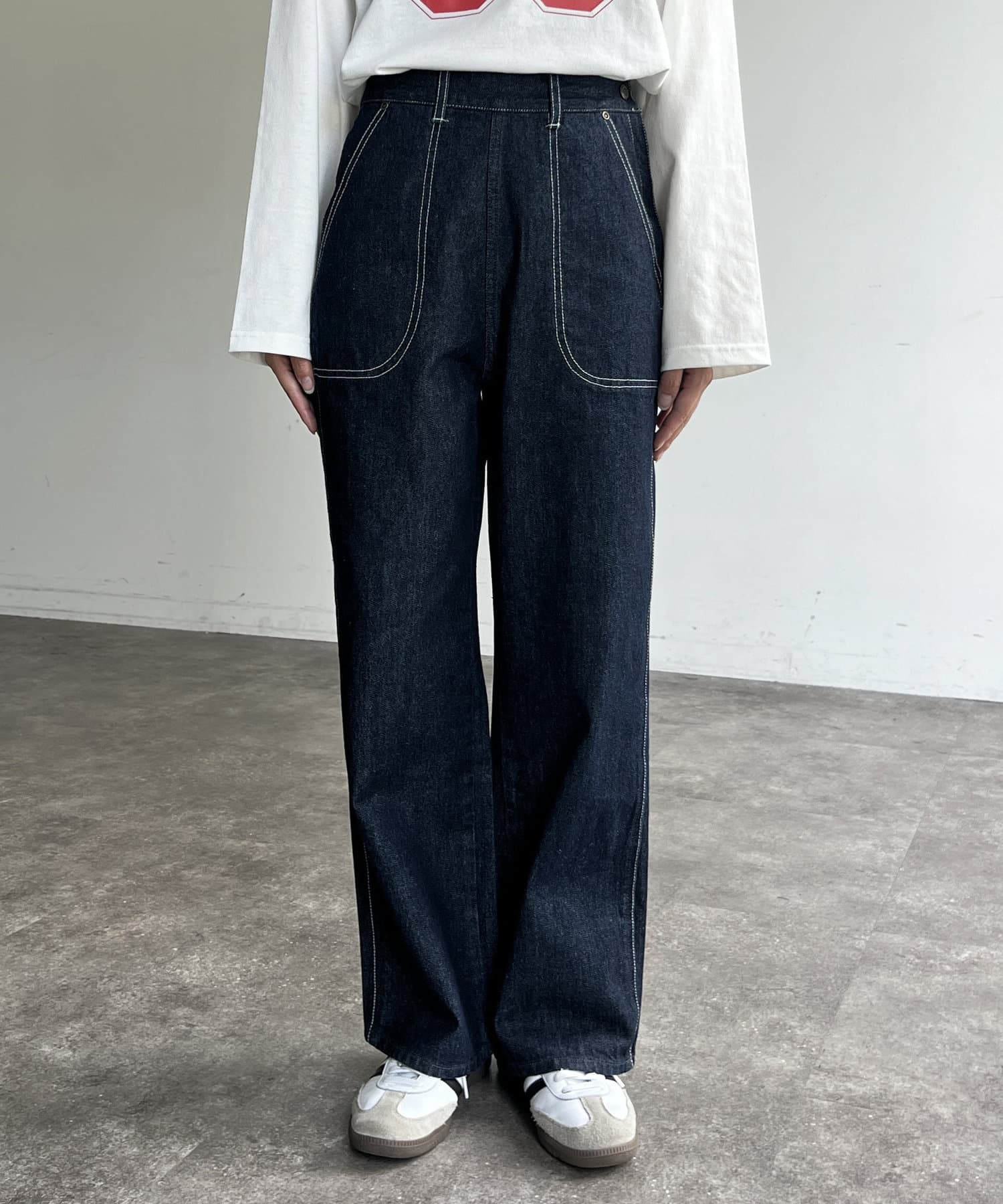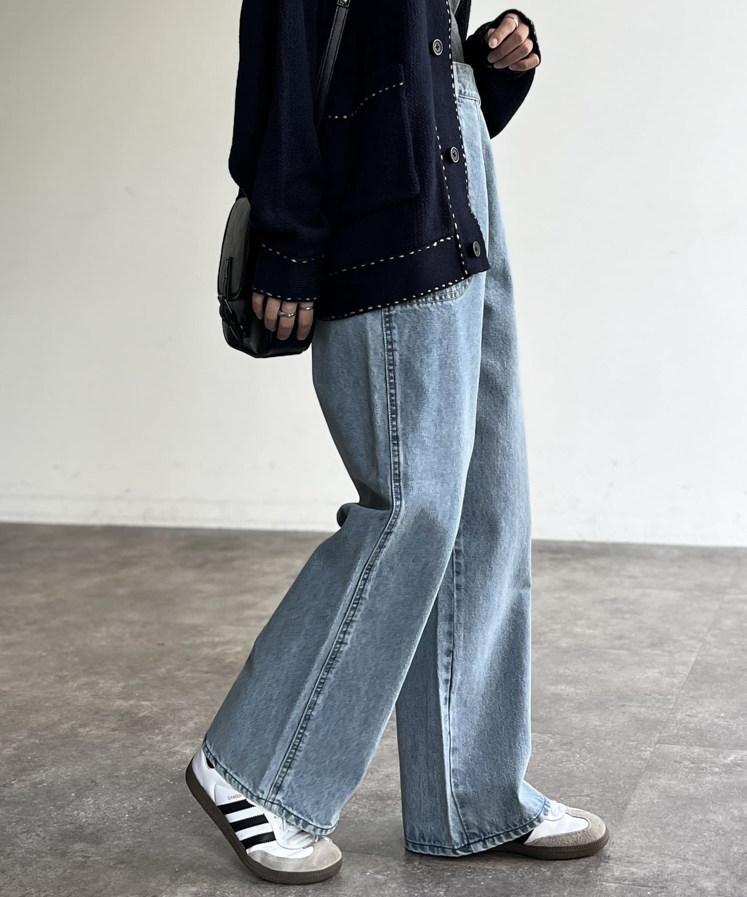 ・ハイウエストで太もも周りには少し余裕がありスタイル良く履きこなせる