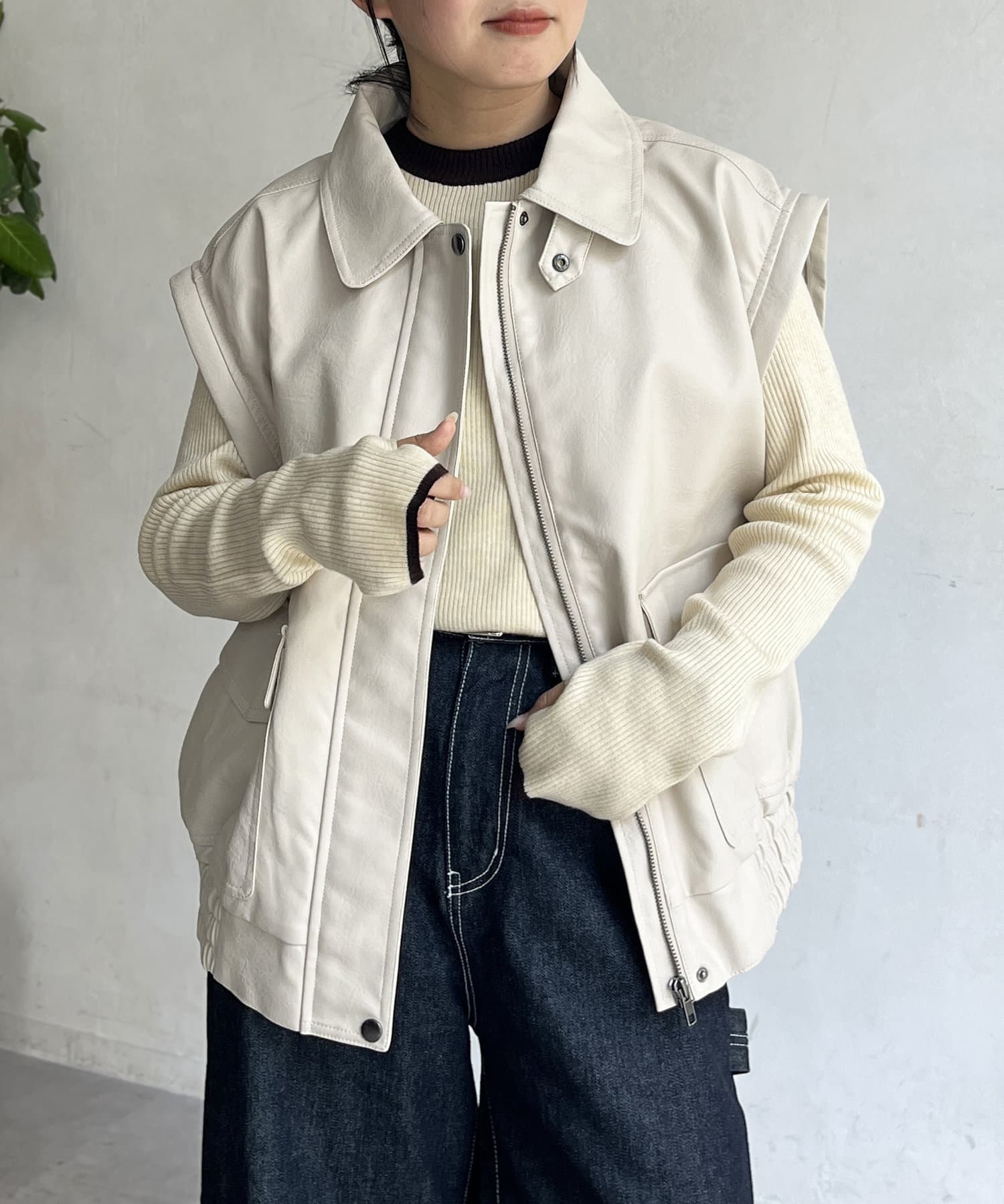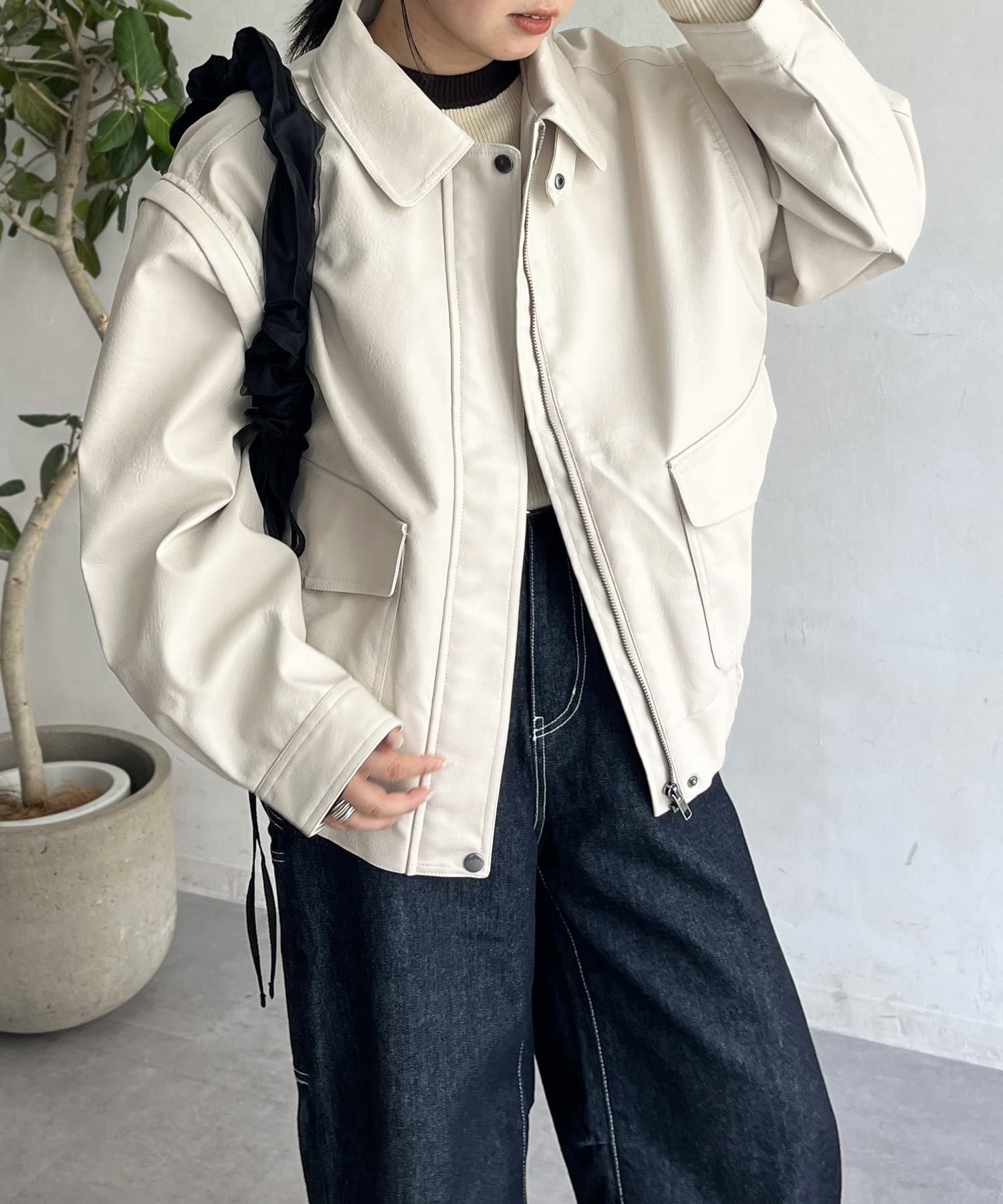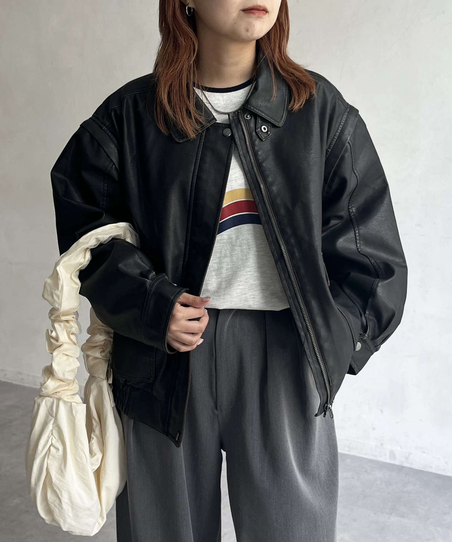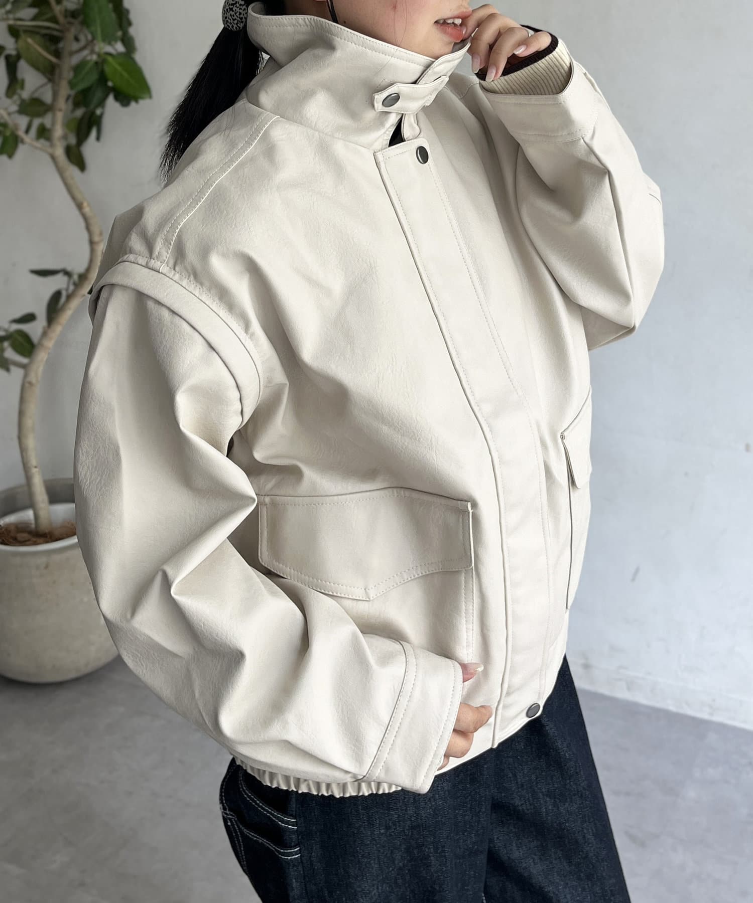 気分に合わせてスタイリングをチェンジ!袖脱着可能なレザージャケット