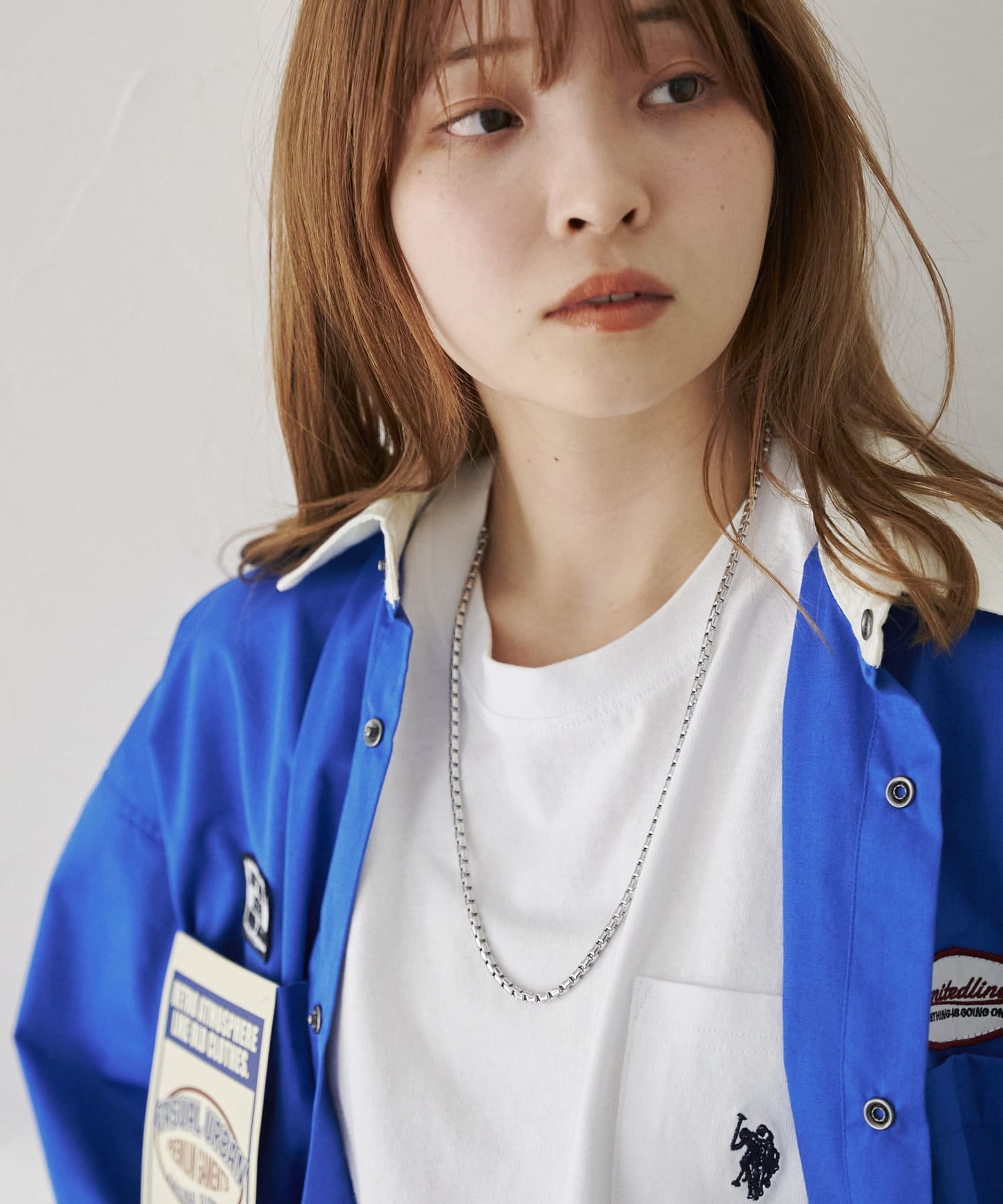 派手すぎないアイテムなので、さみしくなりがちな首元にプラスすることで、