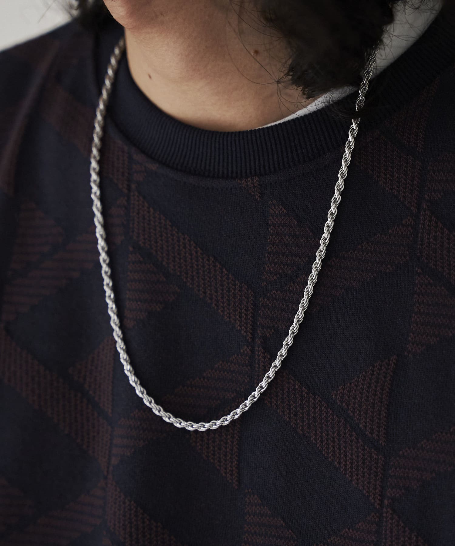 冬にニットの上に存在感あるネックレスがほしくて購入しました。ちょうどいい感じの太めのチェーンで、上品に使えると思います