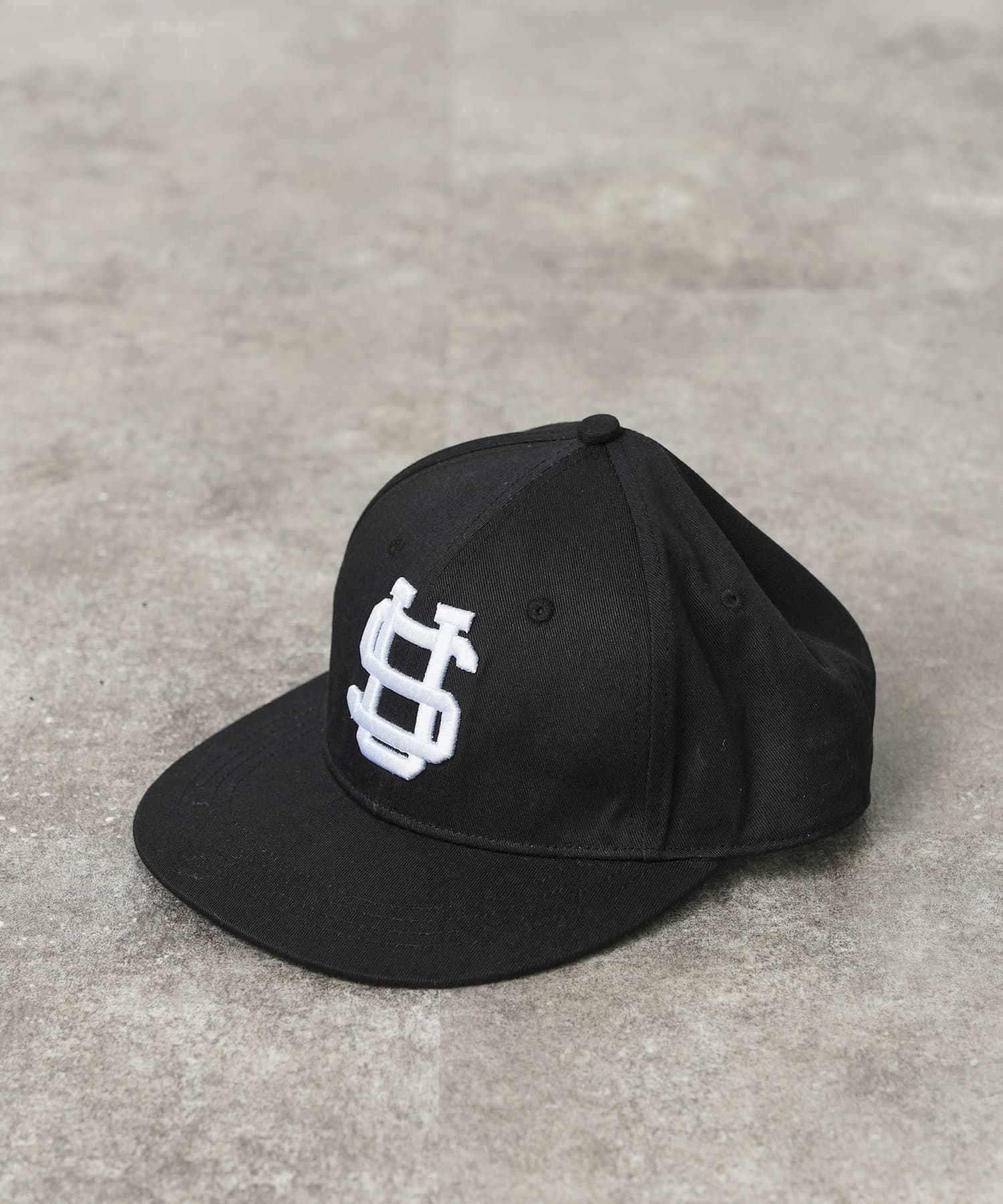 定番ベースボールキャップにUSの刺繍がポイントに。