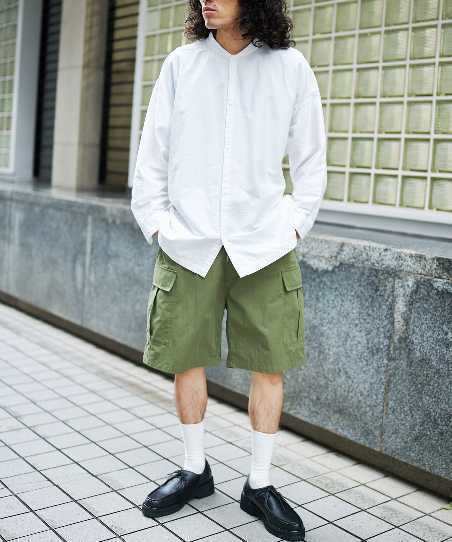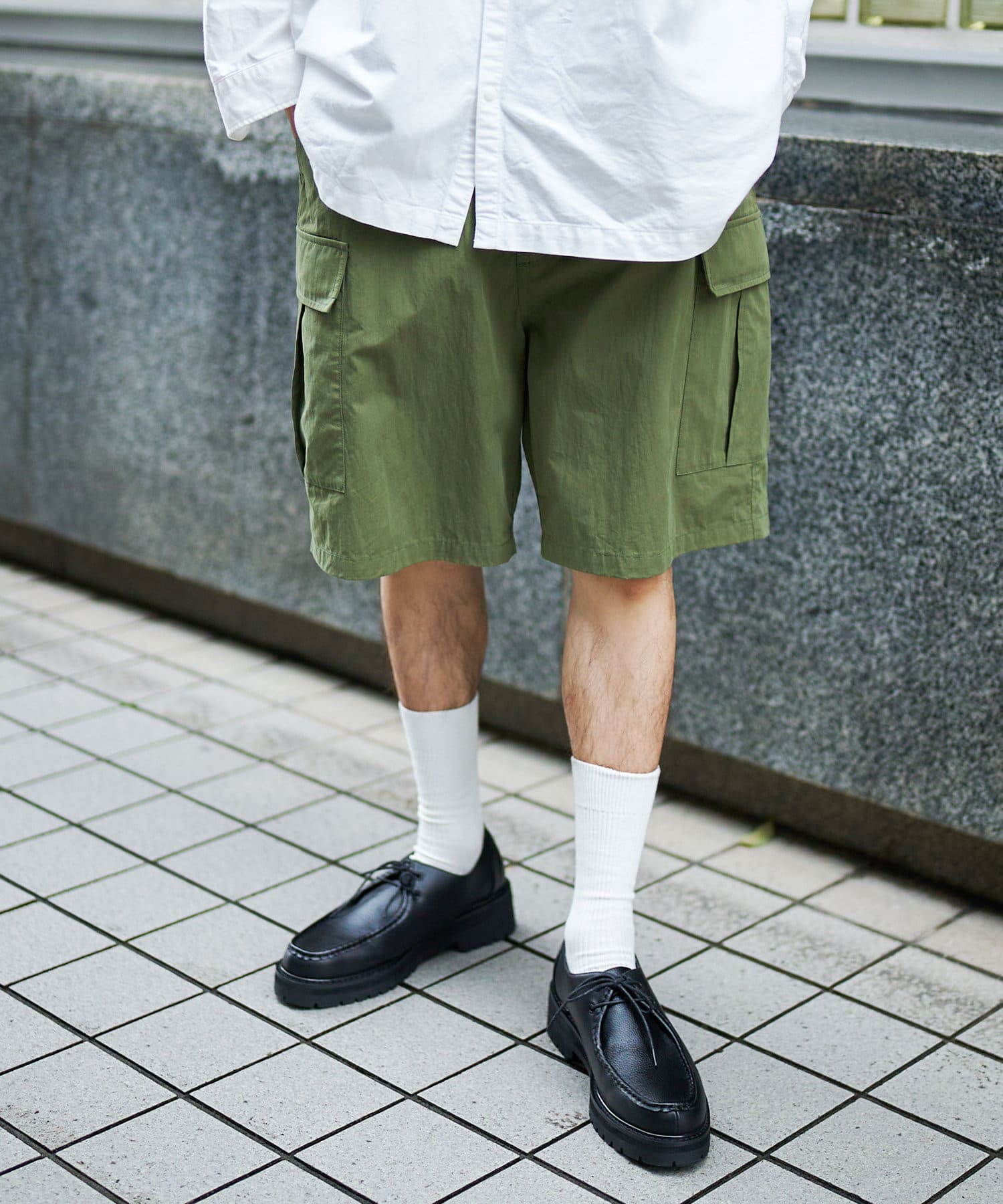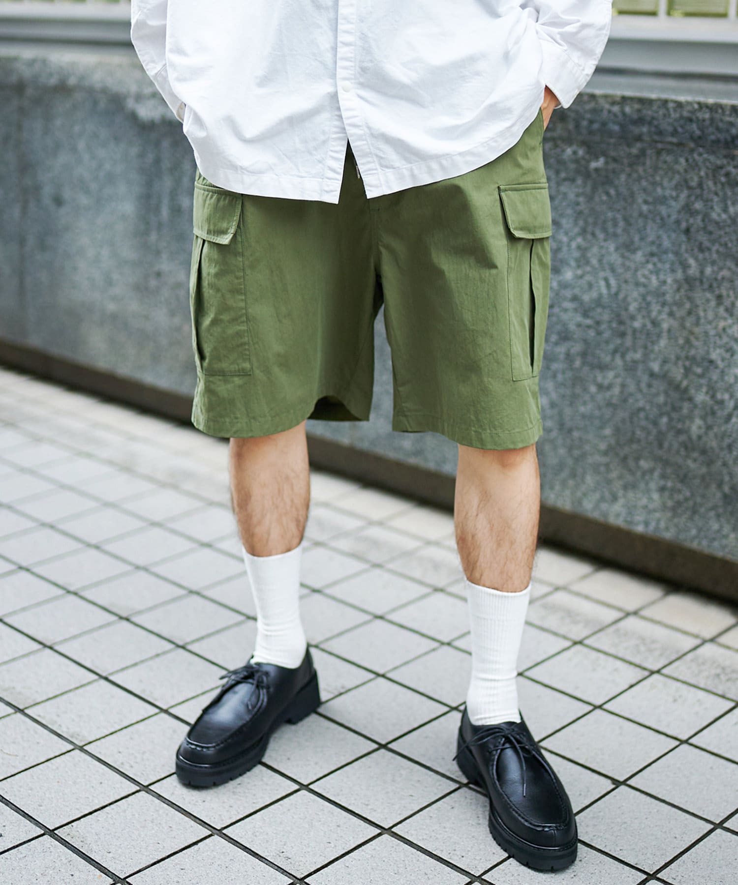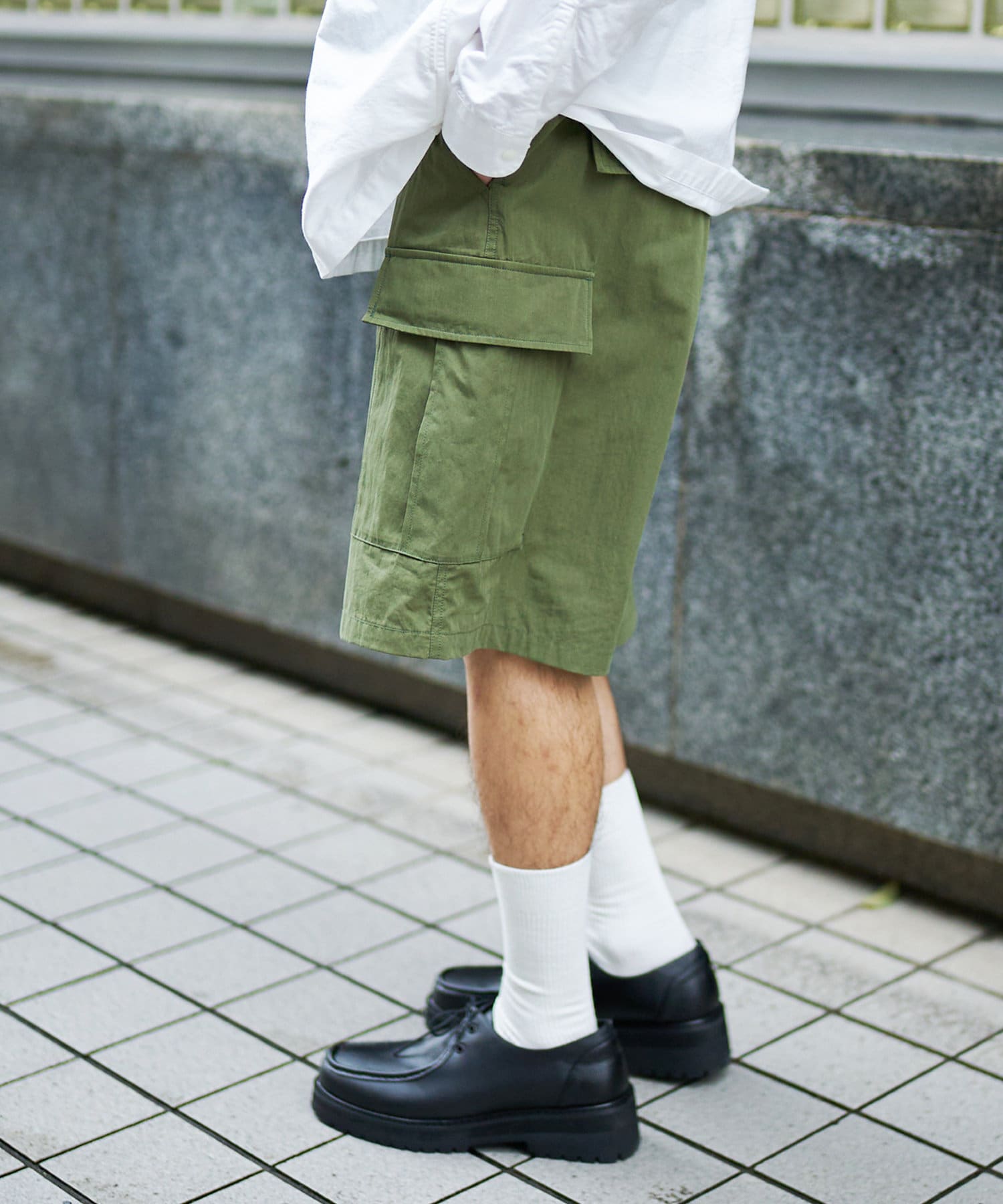スタイリングに取り入れるだけで、存在感が出る、ミリタリー感のあるカーゴショーツです。