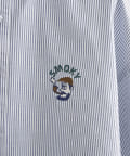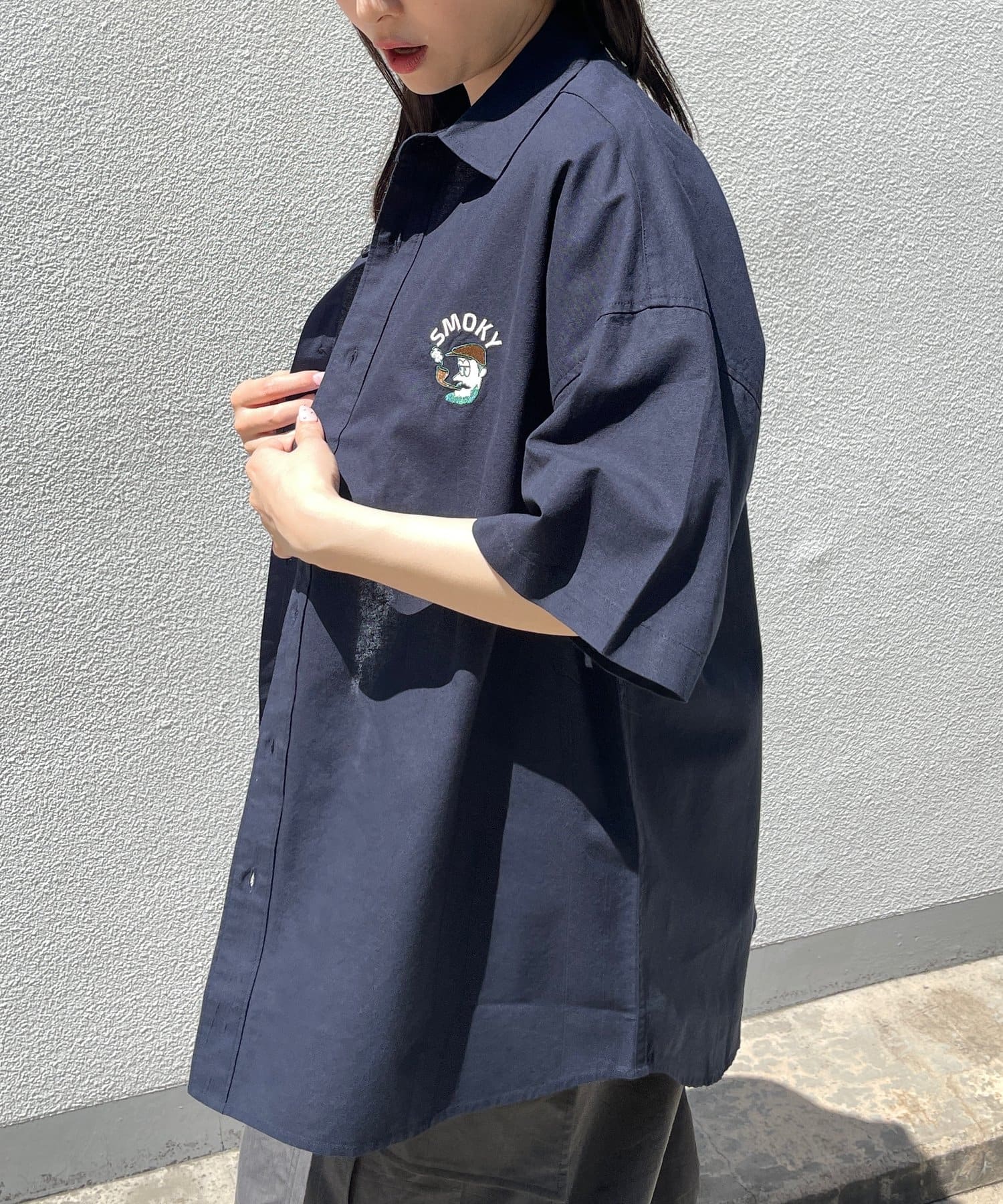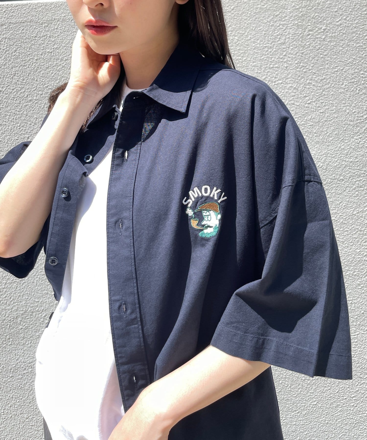 ●フロントにはワンポイント、バックにはどこかレトロでクラシカルなワッペンを大胆に刺繍。