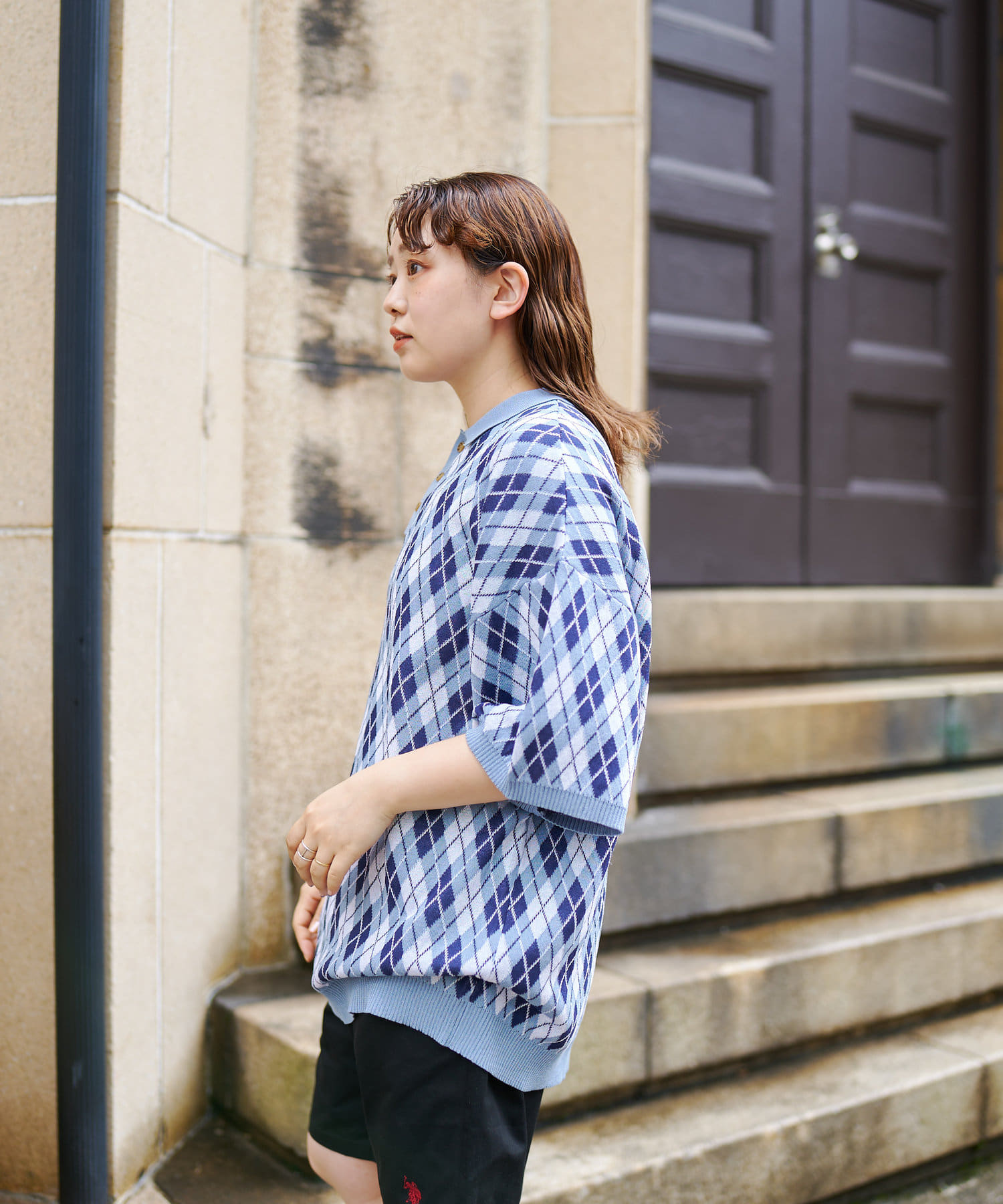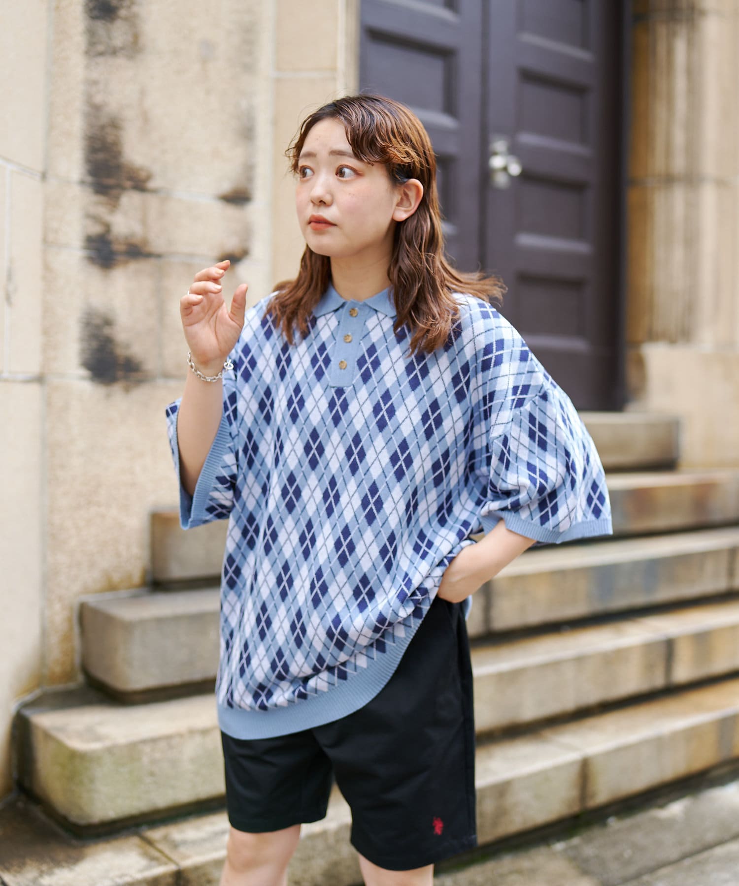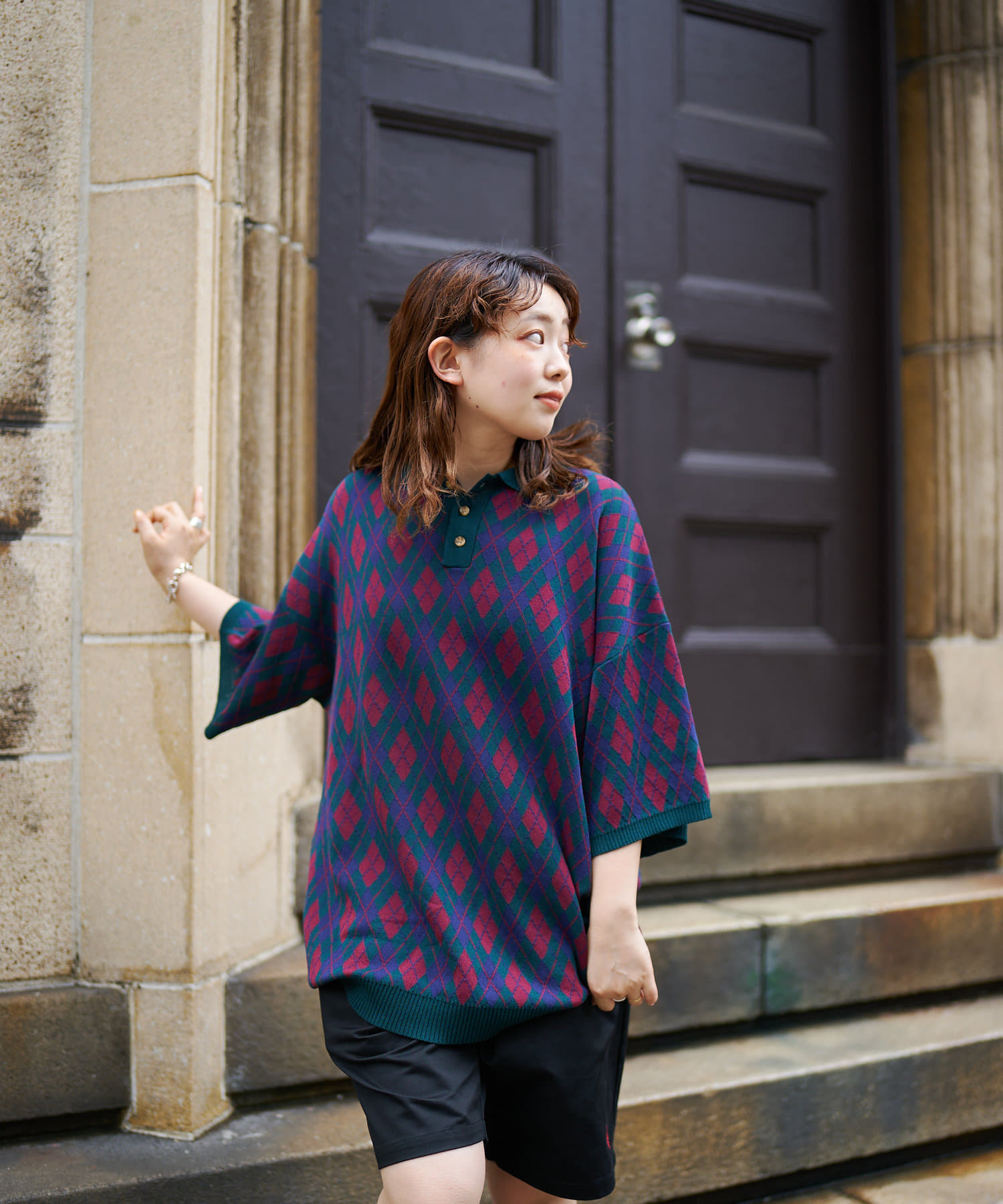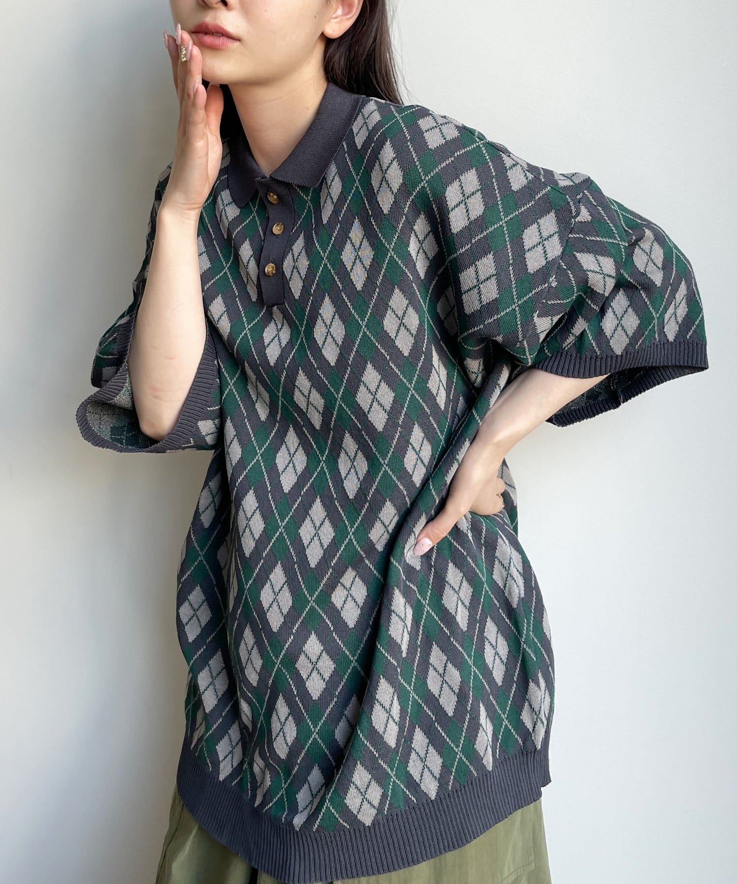 ●人気のアーガイル柄で、1枚でお洒落な仕上がりに。