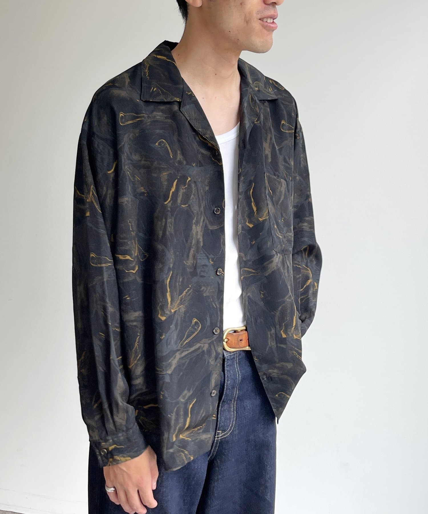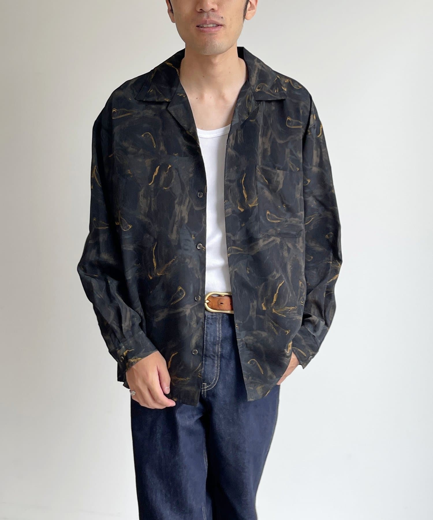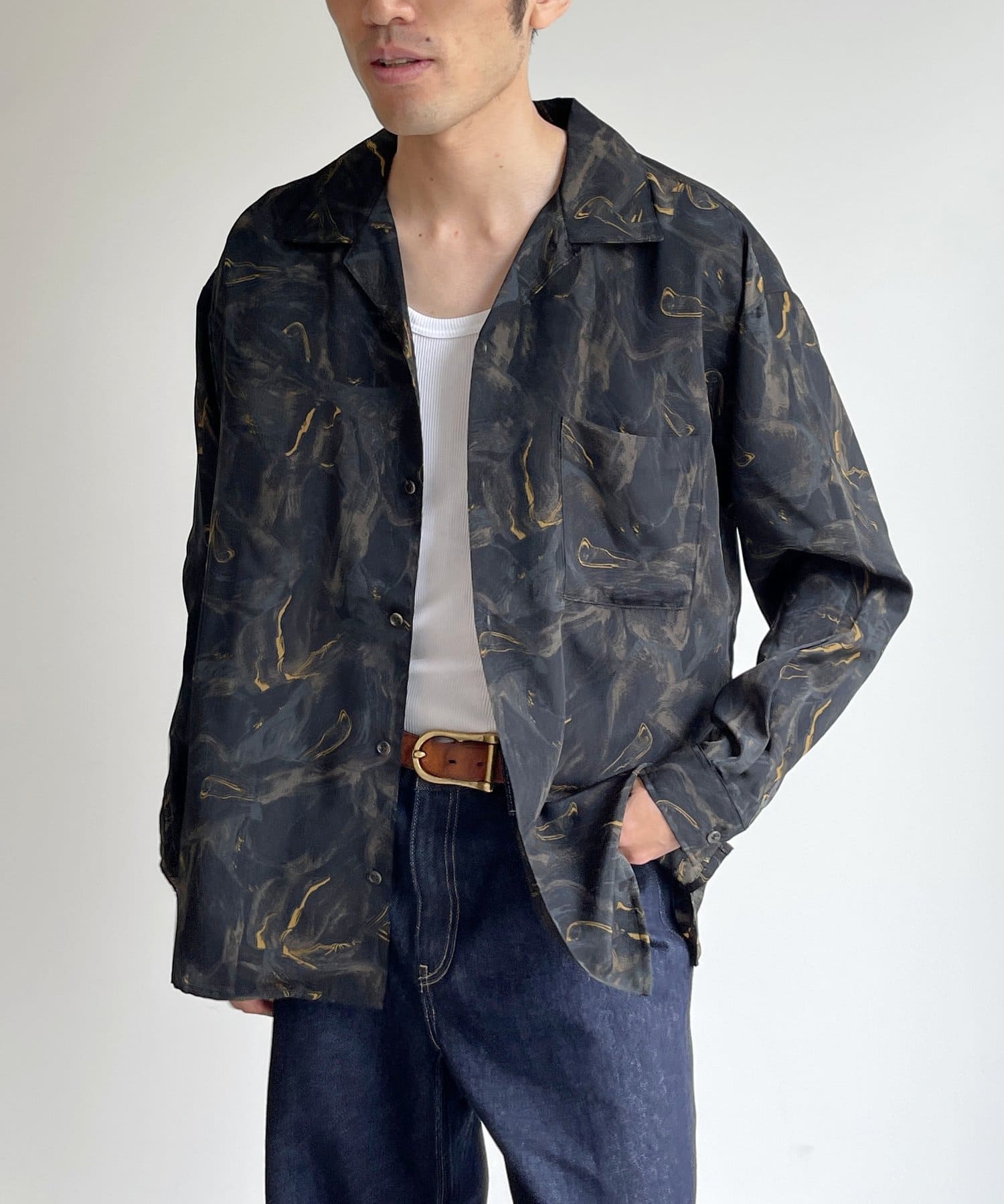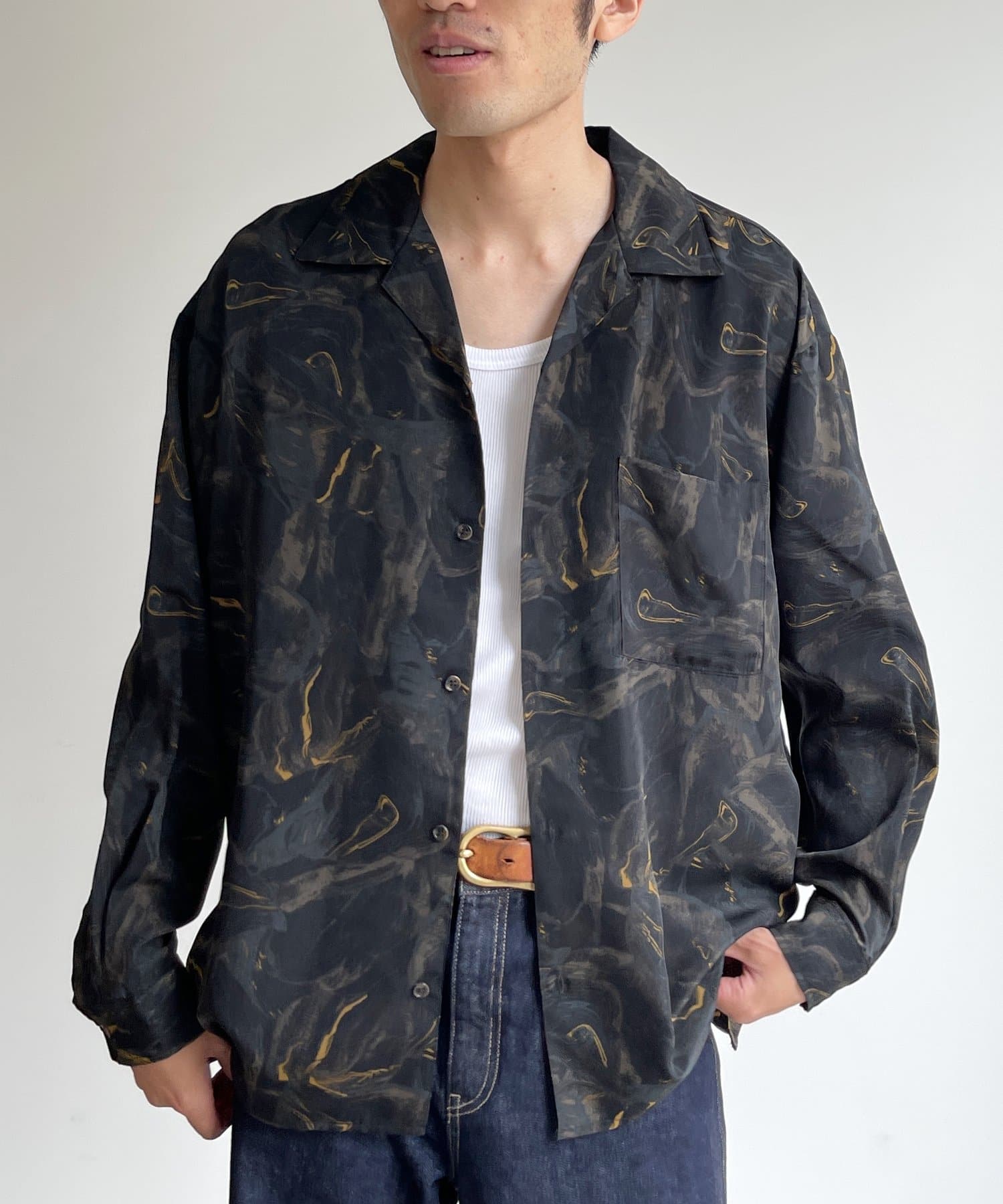 トレンド感のある様々なパターンの総柄デザイン。毎シーズン通してリリースされる総柄のパターンも新鮮さがあります。ストレッチの効いたポリレーヨン素材を採用し、落ち感が魅力的。リラックス感もあり、ストレスフリーな着用感が秋に向けて着れるオープンカラーシャツです。