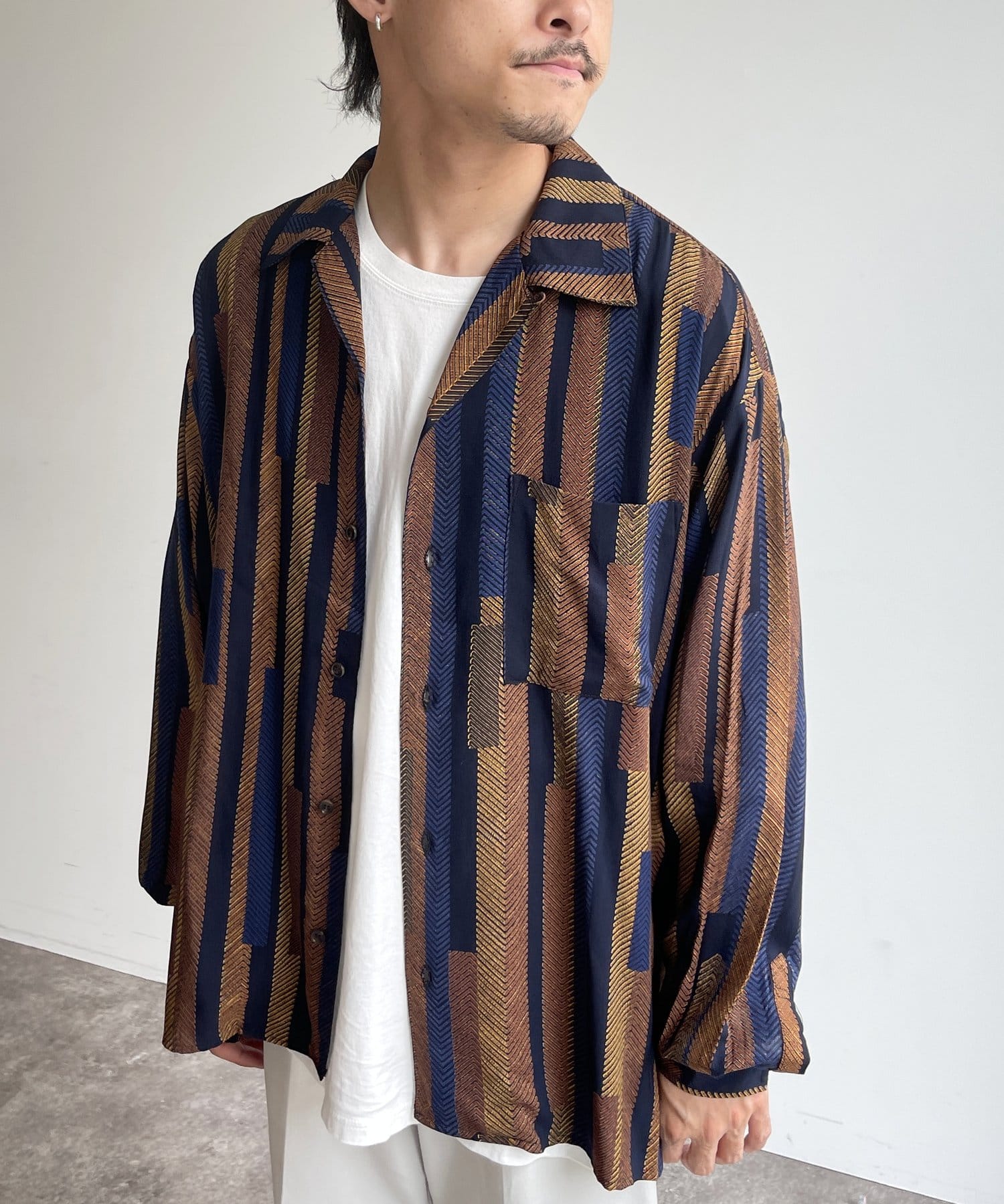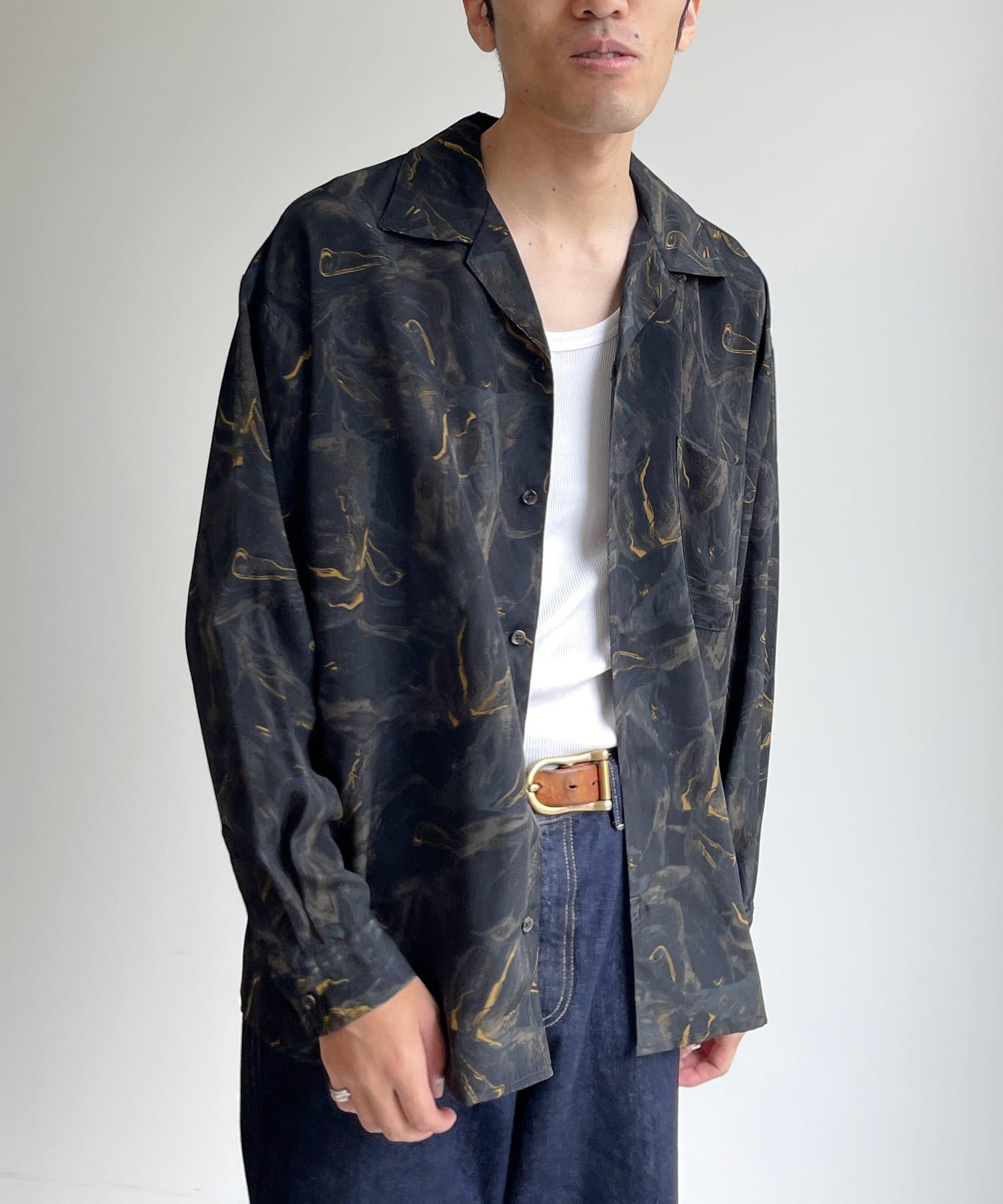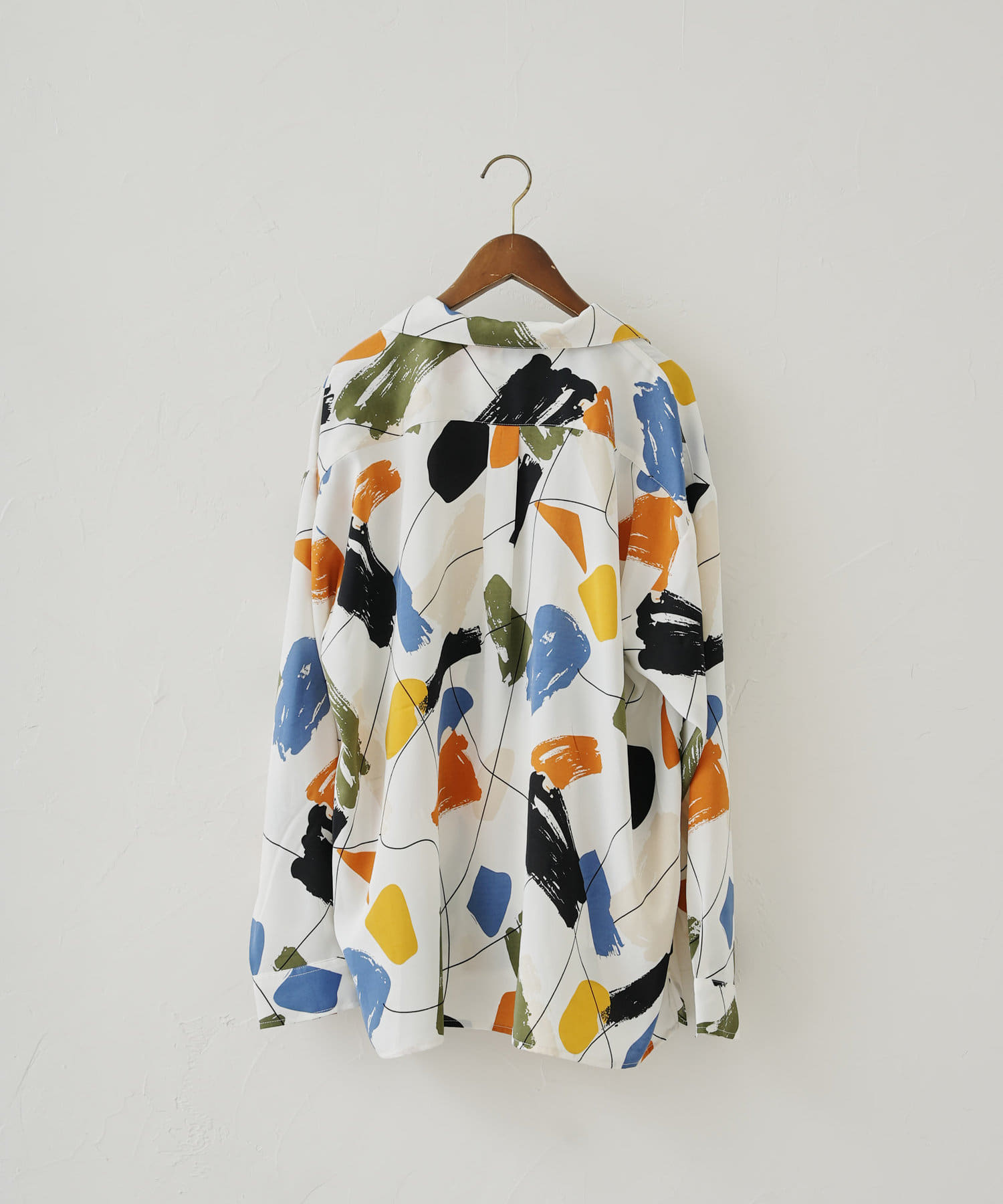 トレンド感のある様々なパターンの総柄デザイン。毎シーズン通してリリースされる総柄のパターンも新鮮さがあります。ストレッチの効いたポリレーヨン素材を採用し、落ち感が魅力的。リラックス感もあり、ストレスフリーな着用感が秋に向けて着れるオープンカラーシャツです。