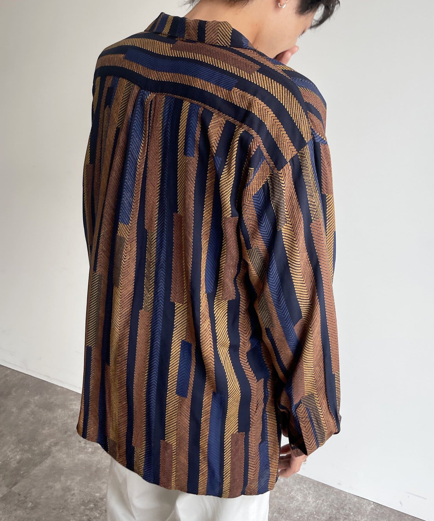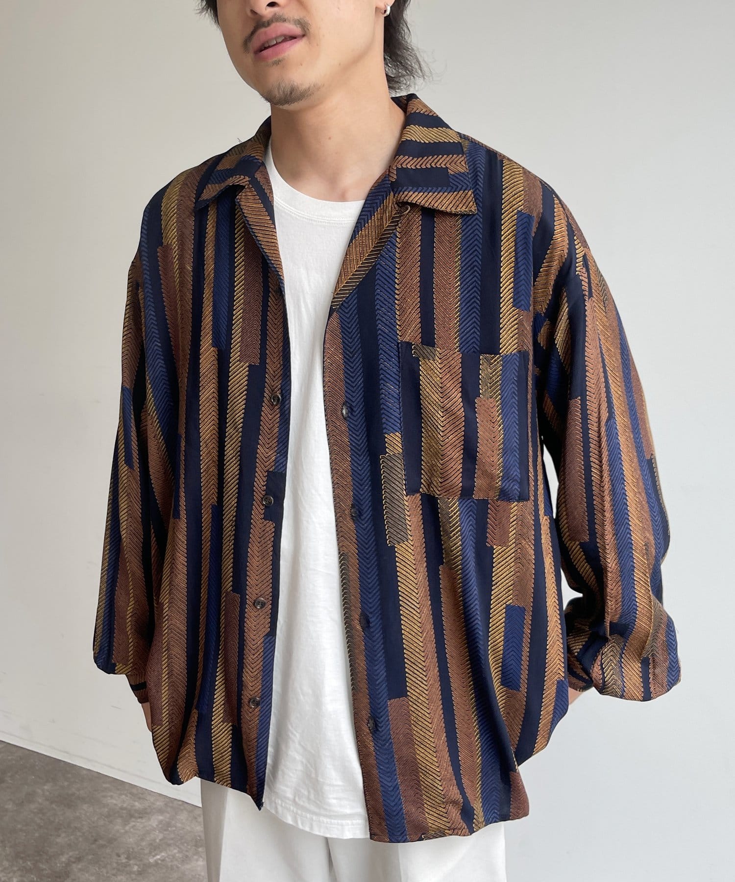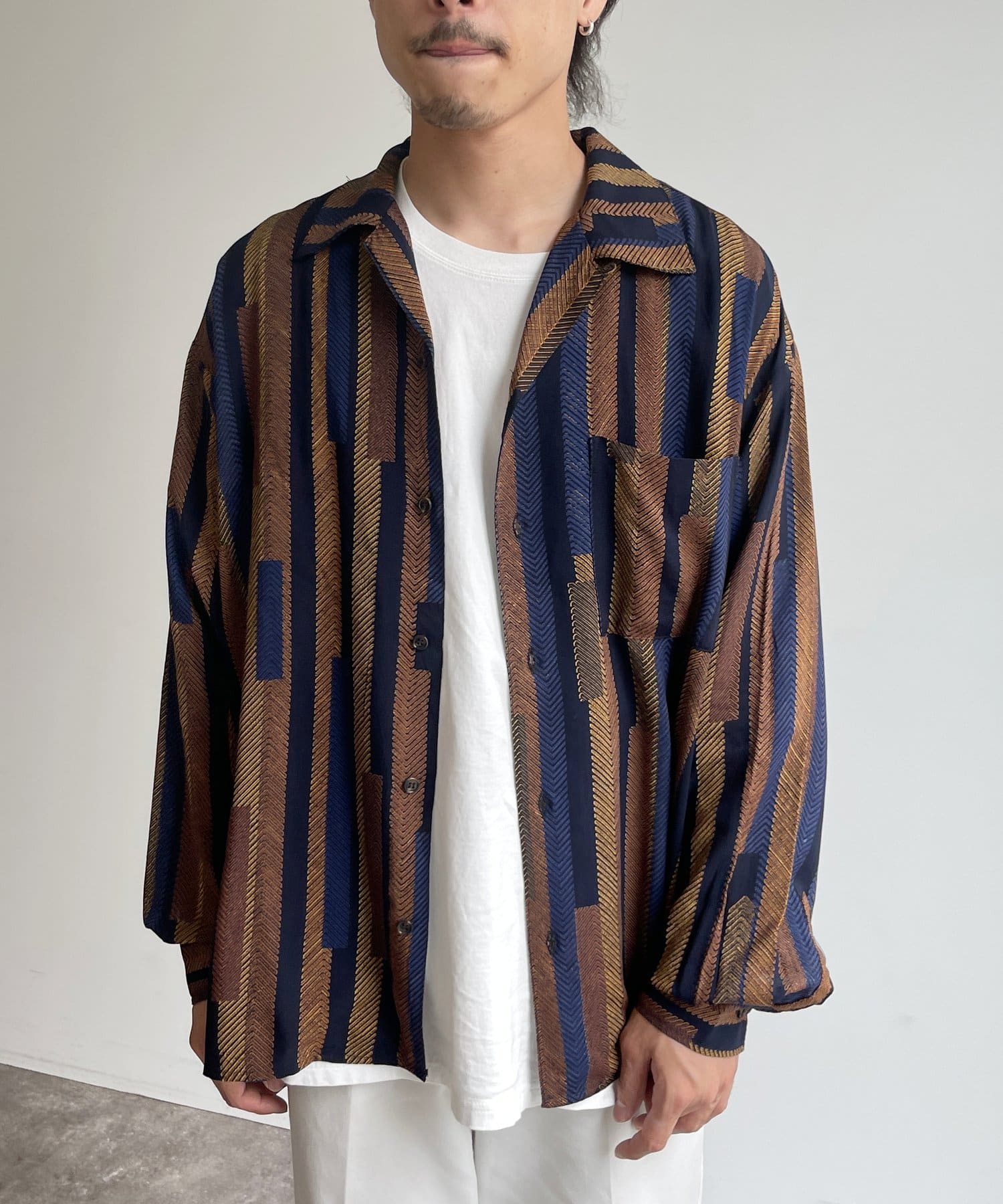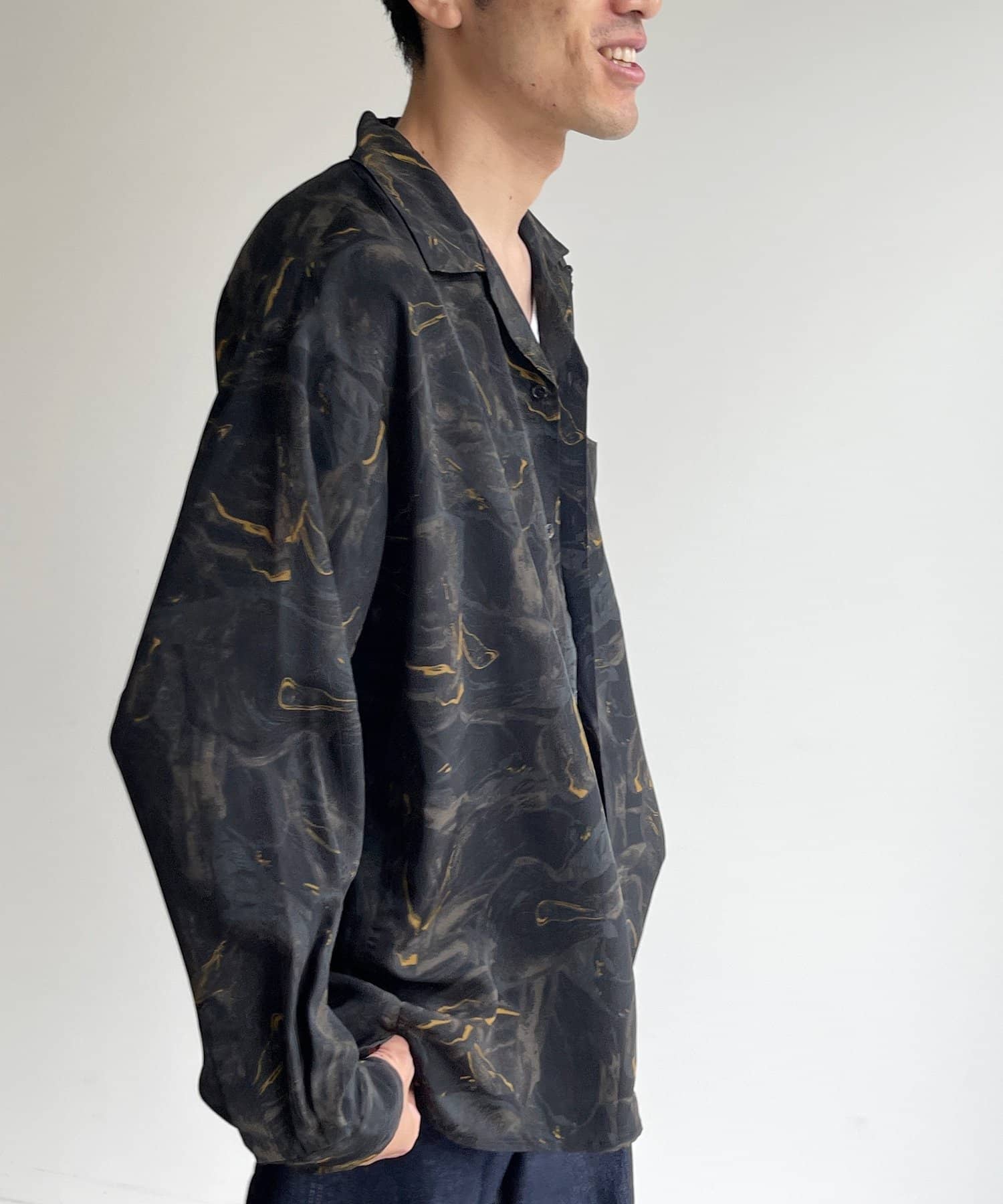 トレンド感のある様々なパターンの総柄デザイン。毎シーズン通してリリースされる総柄のパターンも新鮮さがあります。ストレッチの効いたポリレーヨン素材を採用し、落ち感が魅力的。リラックス感もあり、ストレスフリーな着用感が秋に向けて着れるオープンカラーシャツです。