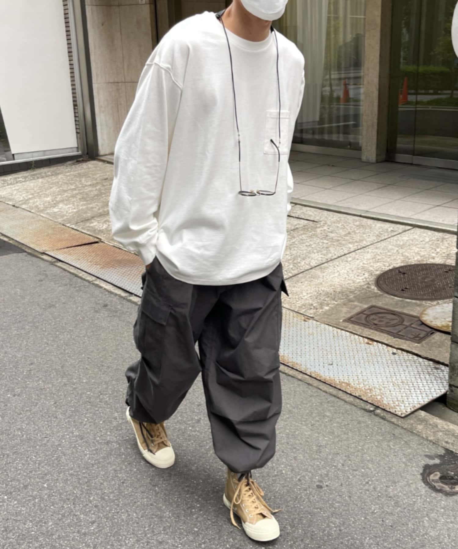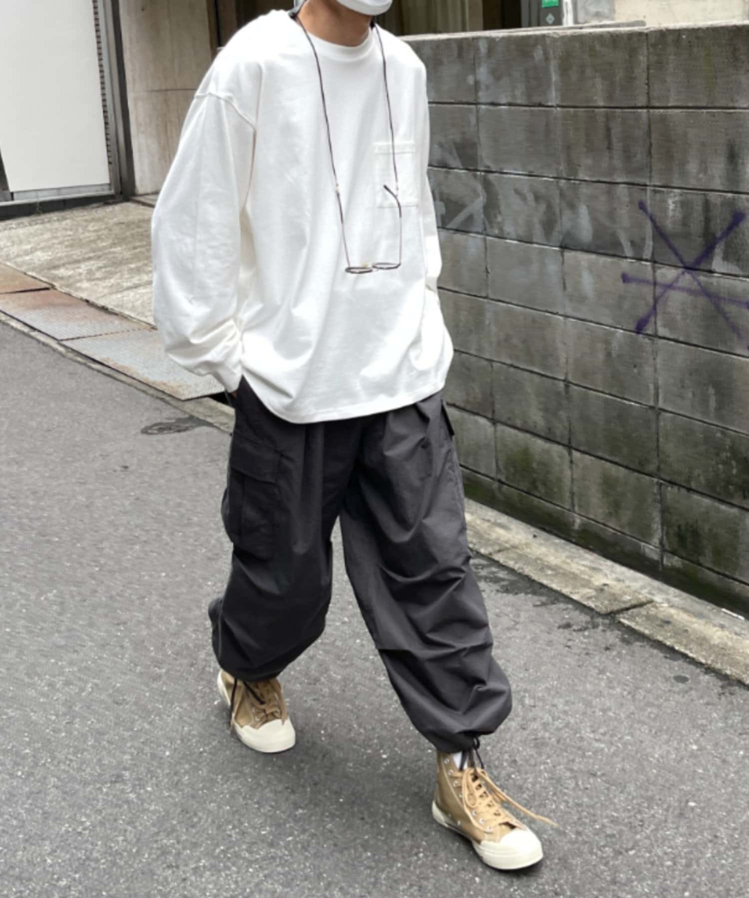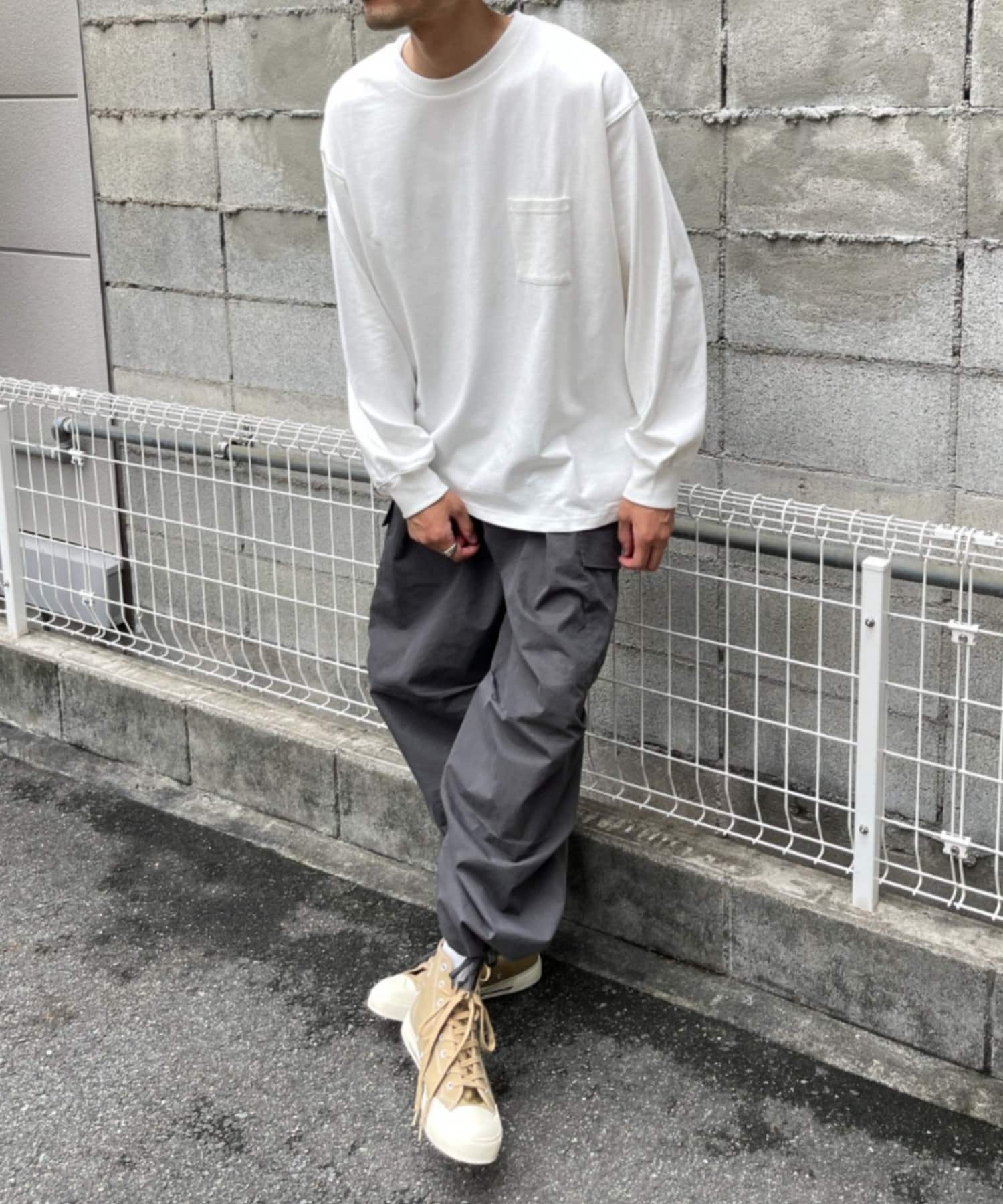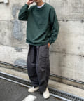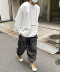 トレンド感溢れるカーゴパンツとのコーディネートがおすすめ。デニムやチノパンとも相性良く、ワイドパンツと合わせたストリートスタイルにも◉女性の方はフレアスカートで甘辛ミックスなスタイリングにも。ゆるっとしたオーバーサイズのトレーナーには、フレアスカート、ワッシャースカートと合わせてフェミニンにまとめても◎シェフパンツ、ワイドパンツ、カーゴパンツでトレンドコーデ。靴はスニーカーはもちろん、ブーツ、ローファー、バレエシューズなどにも相性抜群です。メンズ、レディース問わず着用できるユニセックスデザインの為、イベントやフェスでのカップルコーデ、友達同士のペアコーデにも♪