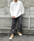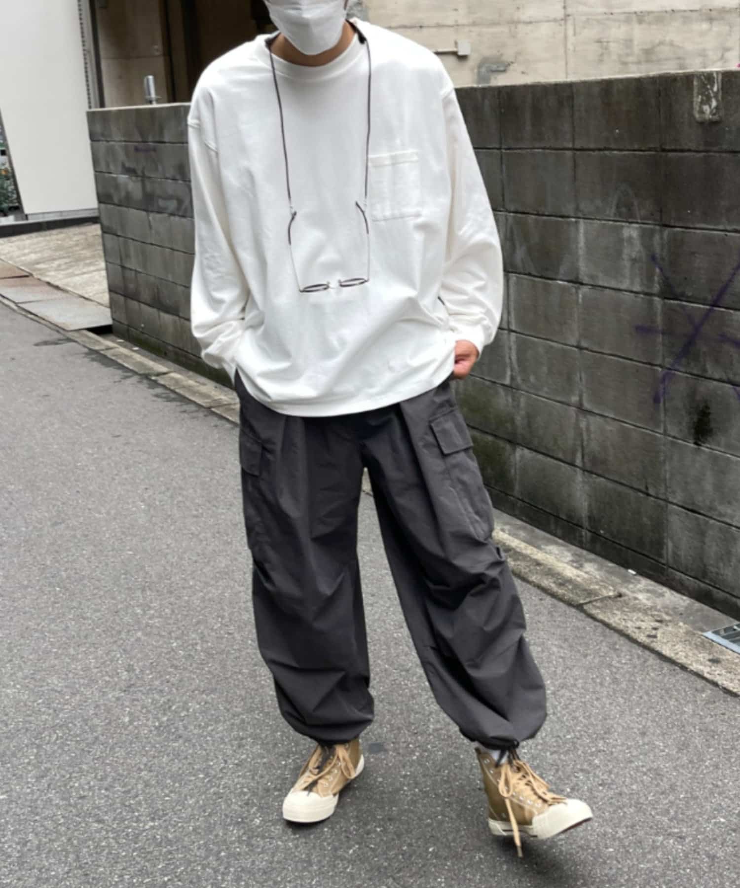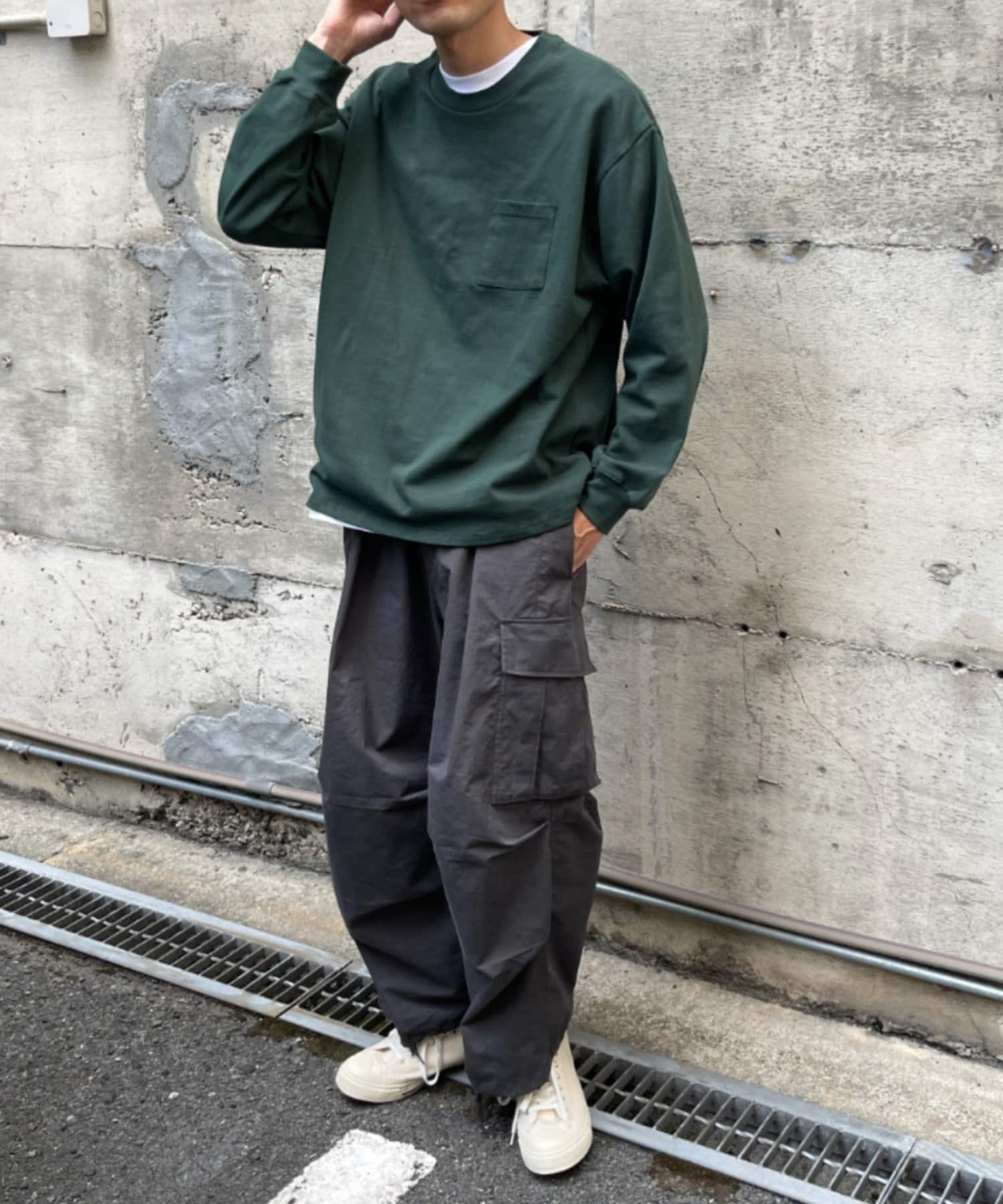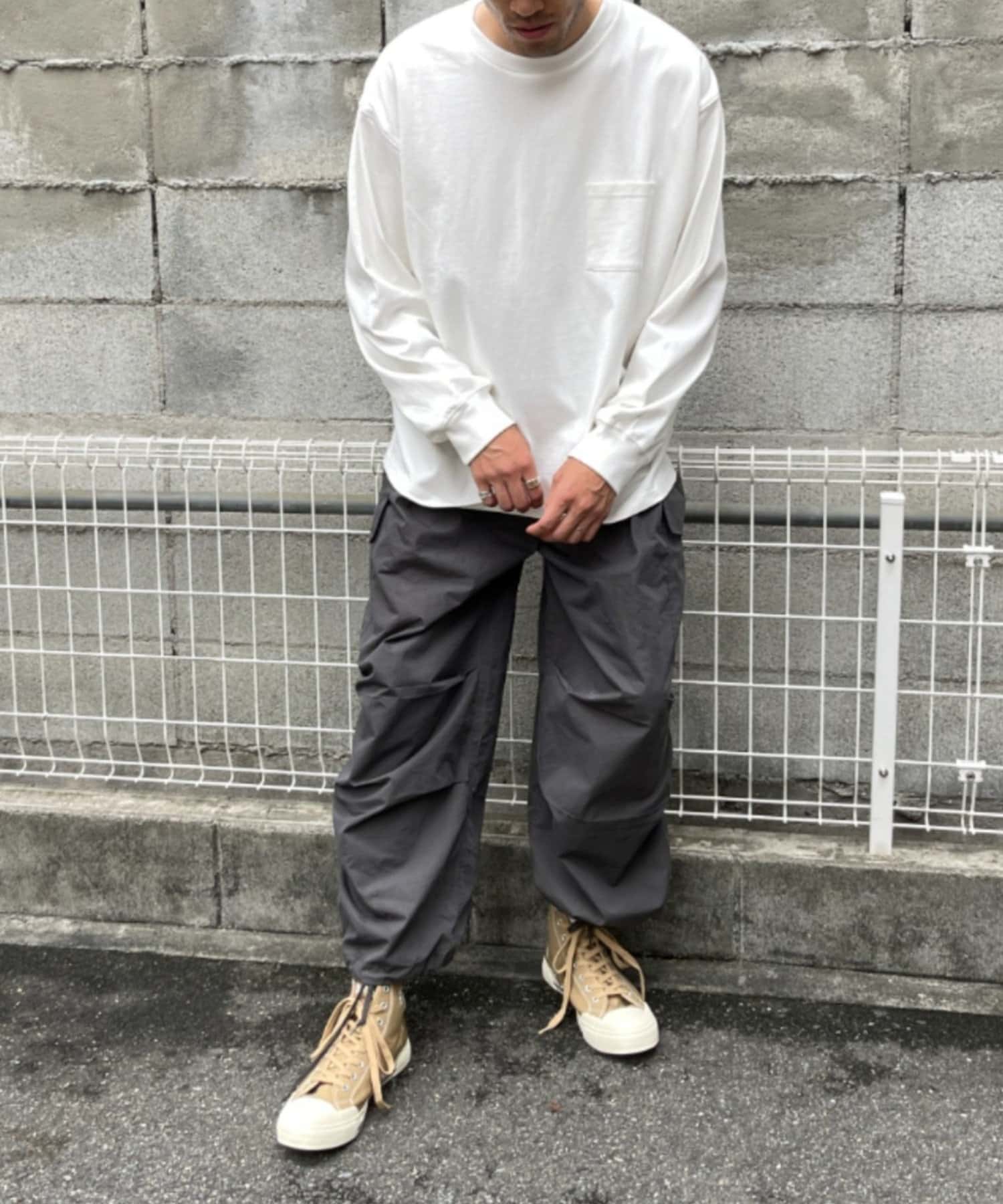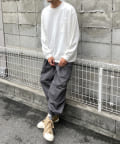 トレンド感溢れるカーゴパンツとのコーディネートがおすすめ。デニムやチノパンとも相性良く、ワイドパンツと合わせたストリートスタイルにも◉女性の方はフレアスカートで甘辛ミックスなスタイリングにも。ゆるっとしたオーバーサイズのトレーナーには、フレアスカート、ワッシャースカートと合わせてフェミニンにまとめても◎シェフパンツ、ワイドパンツ、カーゴパンツでトレンドコーデ。靴はスニーカーはもちろん、ブーツ、ローファー、バレエシューズなどにも相性抜群です。メンズ、レディース問わず着用できるユニセックスデザインの為、イベントやフェスでのカップルコーデ、友達同士のペアコーデにも♪