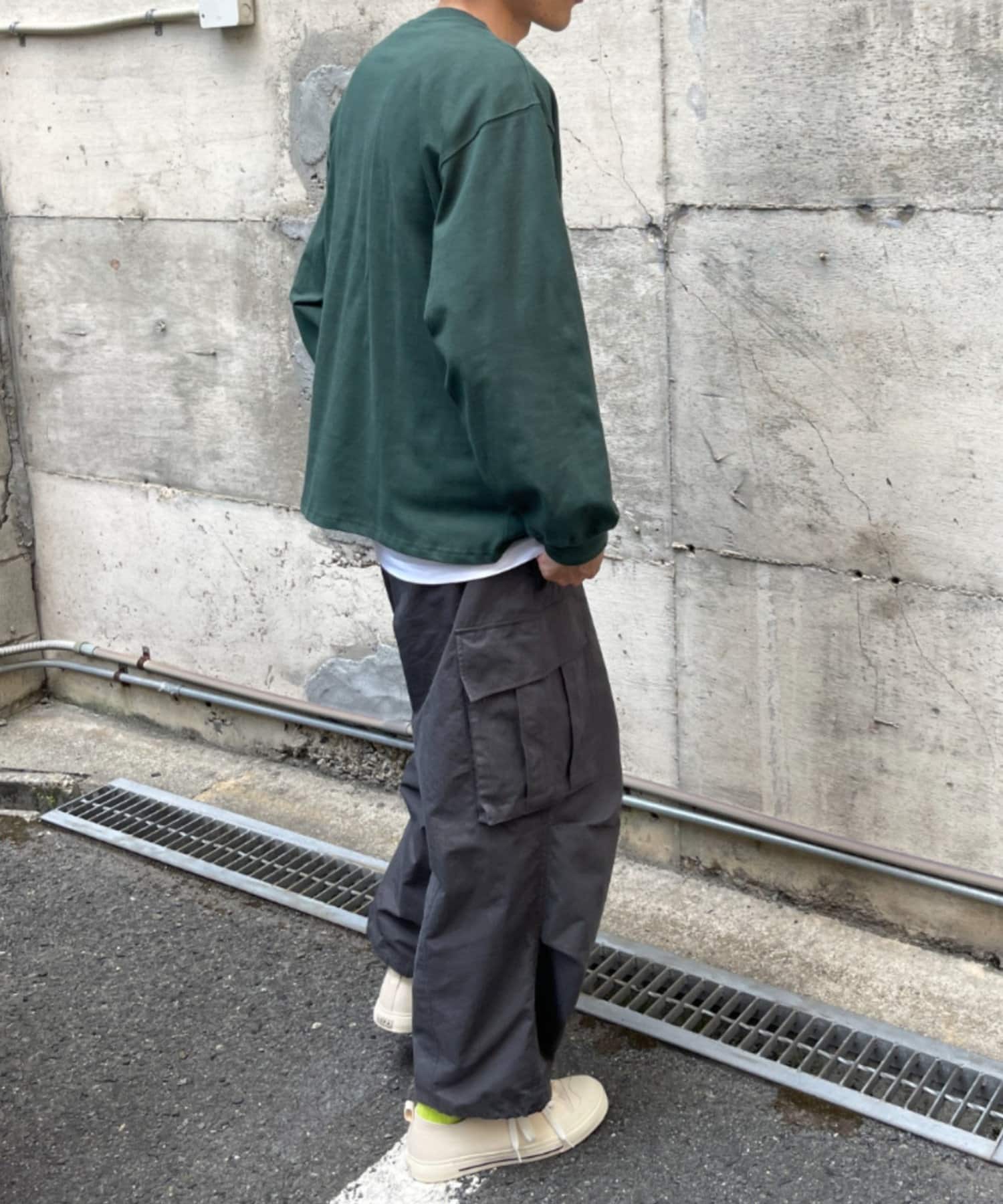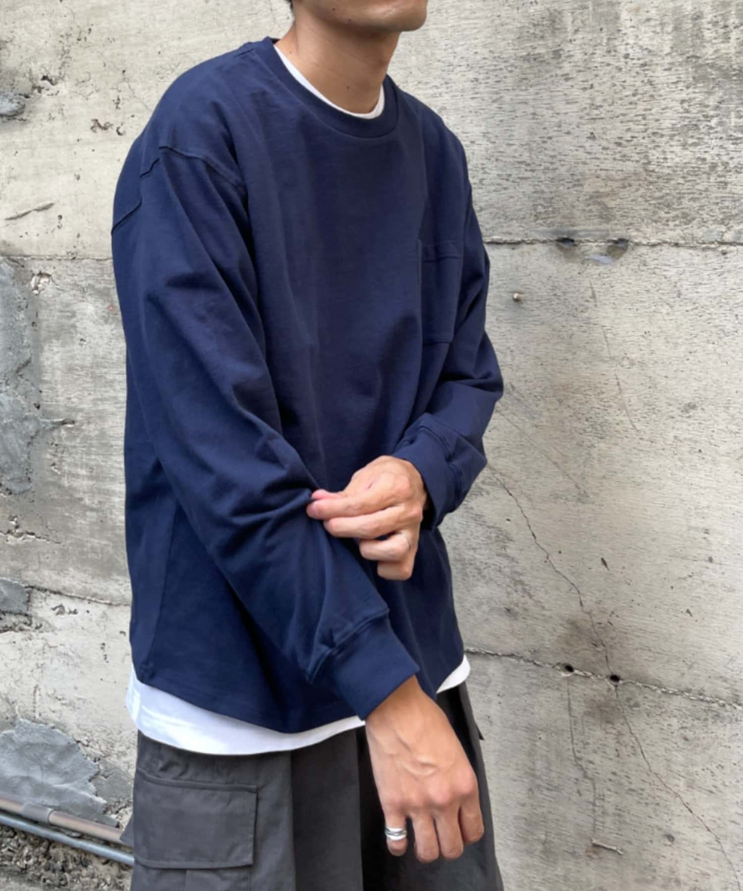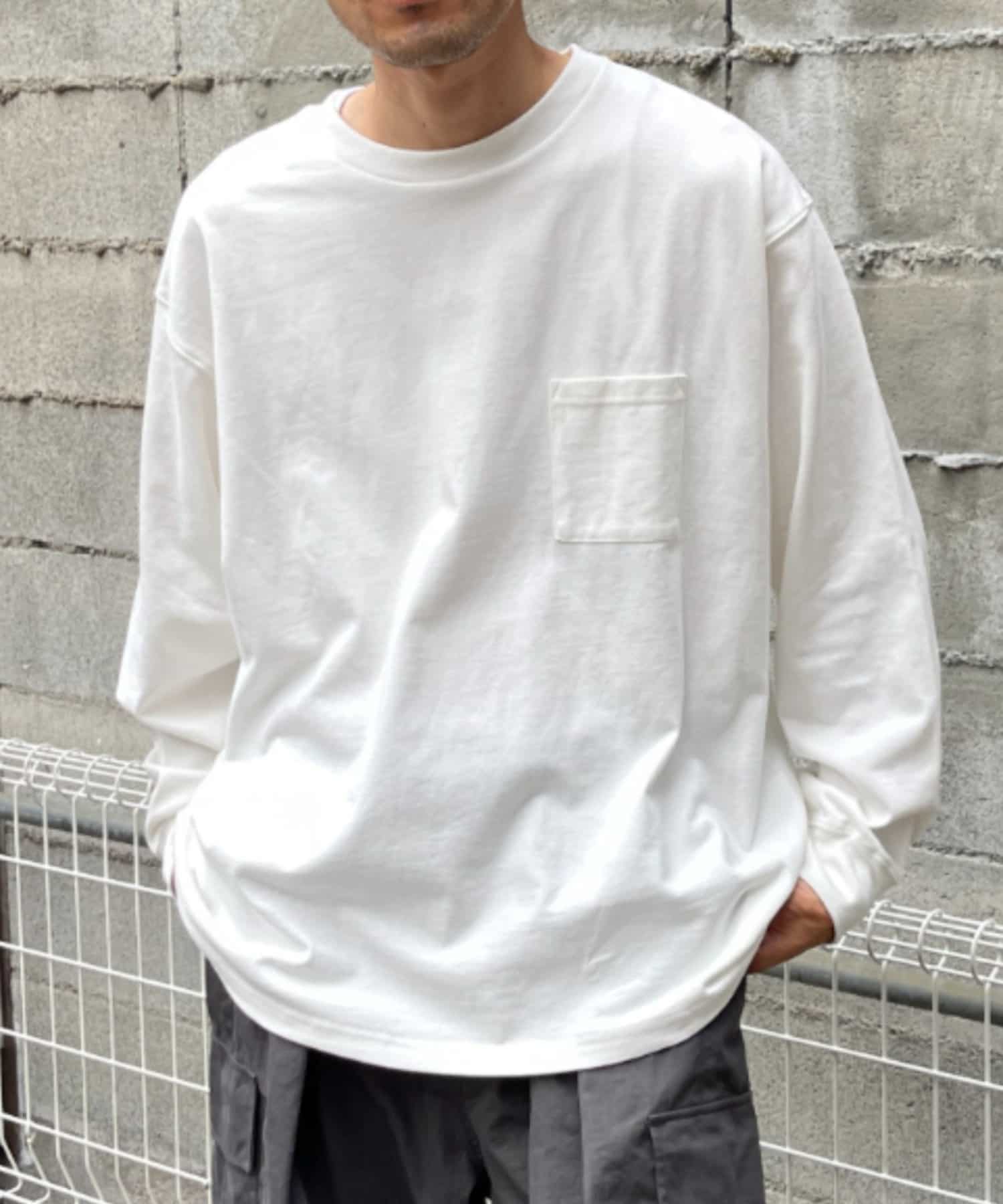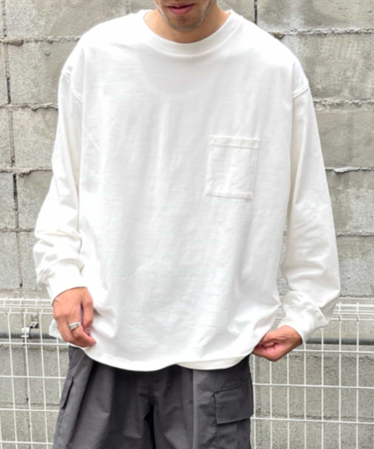 身幅・肩幅にゆとりを持たせて、トレンドのビッグシルエット / オーバーサイズが特徴的なヘビーオンスロンT。袖丈が長く、袖のたまり具合が絶妙なので、一枚で着てもかっこよく決まります。コットン100%なので肌触りがよく、通気性・吸湿性・耐久性に優れているので、長いシーズンで着用していただけます。ベーシックながらもインナー使いや、1枚で着回しのできるアイテムです。