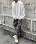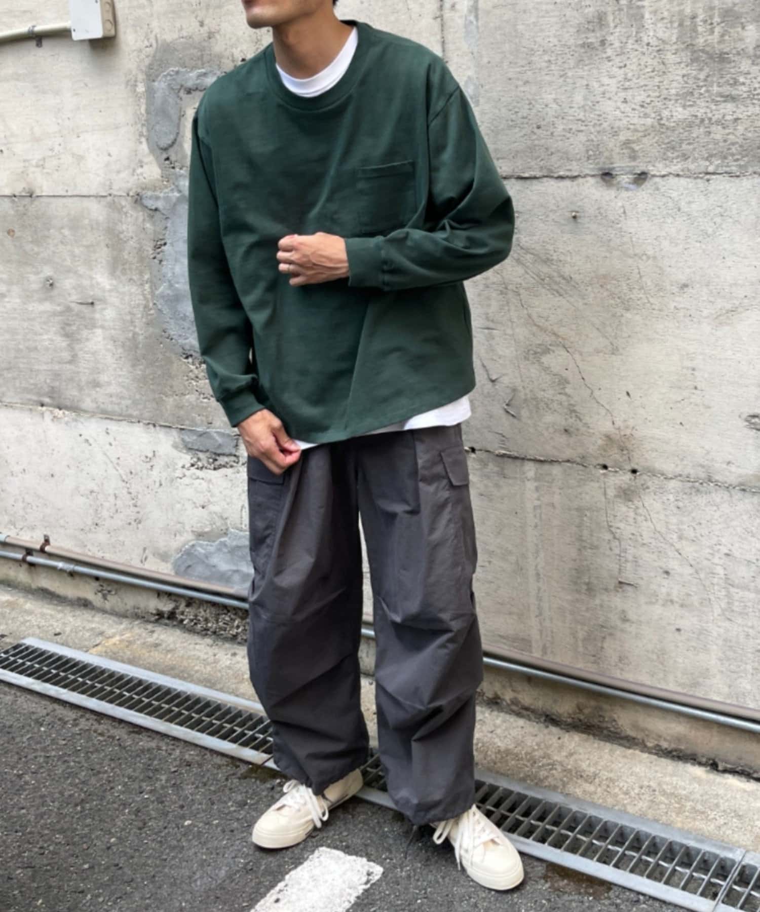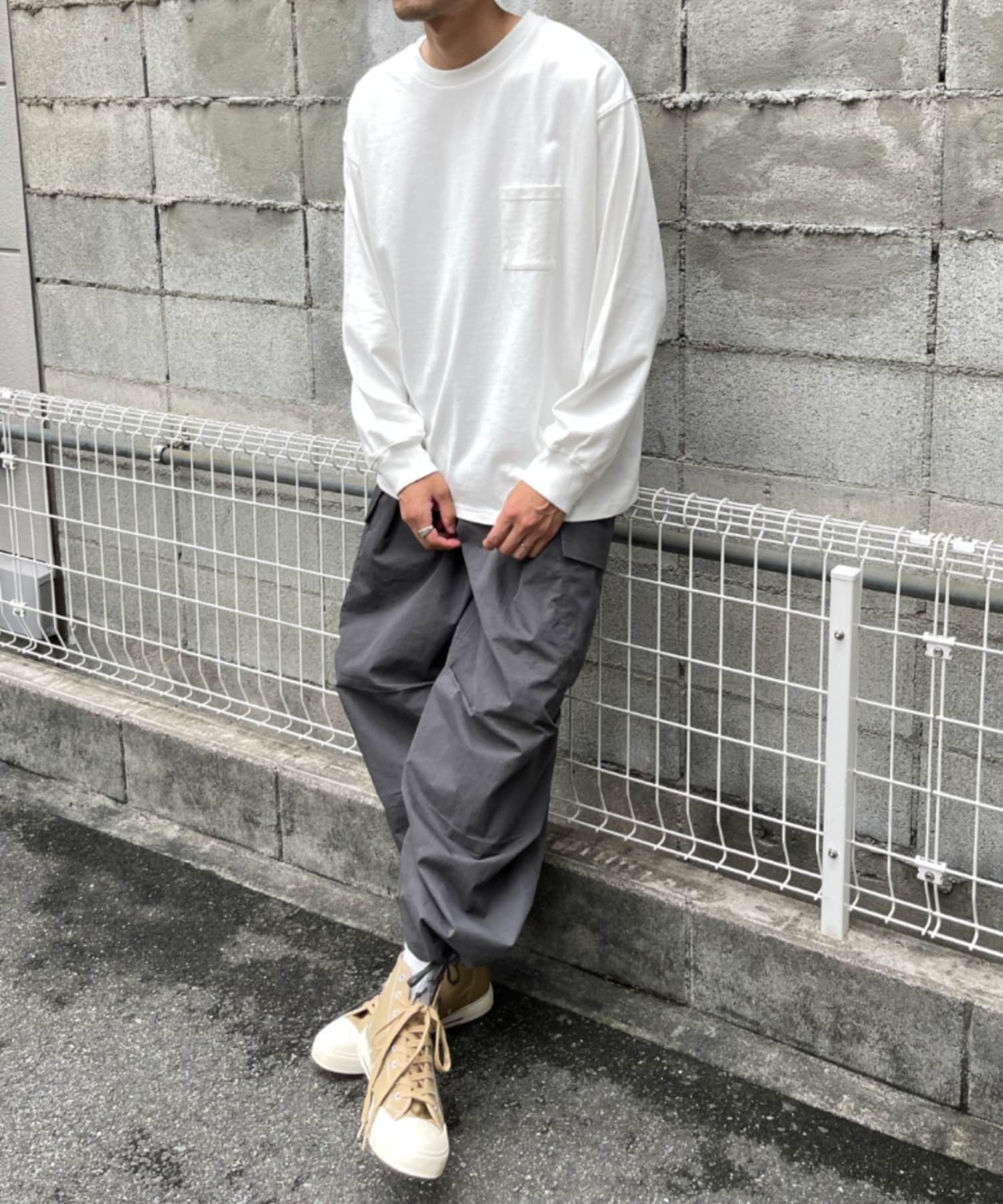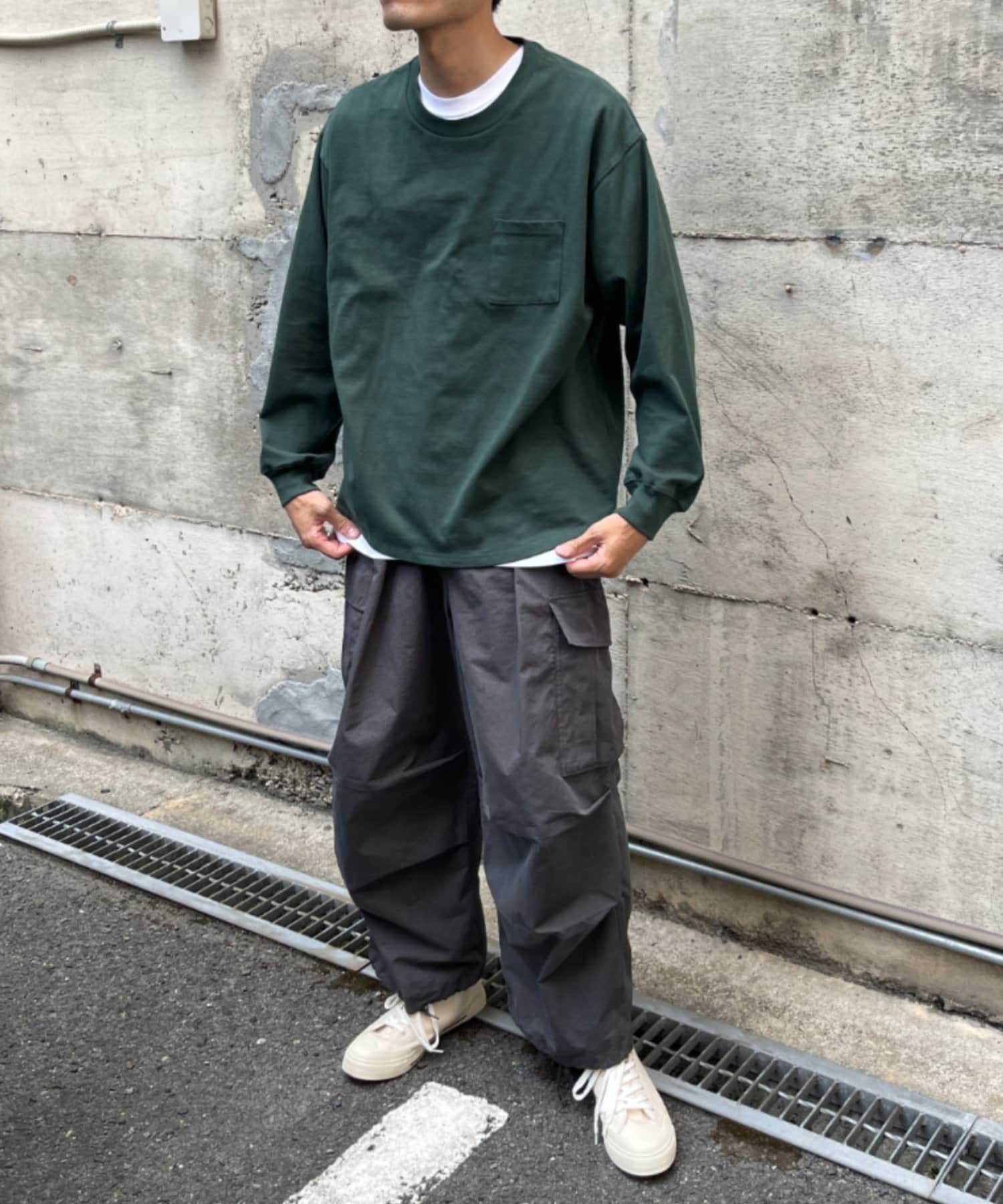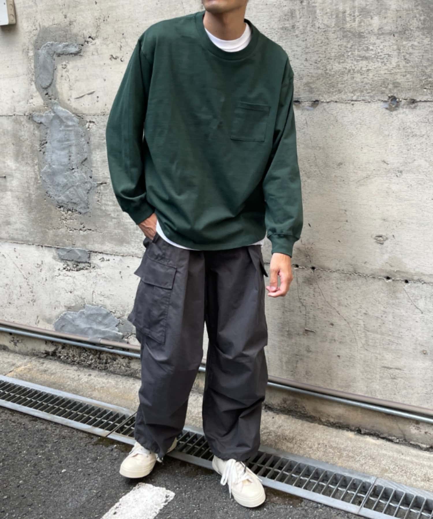 身幅・肩幅にゆとりを持たせて、トレンドのビッグシルエット / オーバーサイズが特徴的なヘビーオンスロンT。袖丈が長く、袖のたまり具合が絶妙なので、一枚で着てもかっこよく決まります。コットン100%なので肌触りがよく、通気性・吸湿性・耐久性に優れているので、長いシーズンで着用していただけます。ベーシックながらもインナー使いや、1枚で着回しのできるアイテムです。