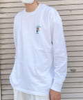 胸の刺繍はユーモアある刺繍が特徴的で、シンプルながらもデザイン、ディテールにまでこだわった1ポイント刺繍です。立体的な刺繍で、プリントには無い雰囲気ある仕上がりとなっており、シンプルながらも目を惹くデザインがユニセックスでおすすめです。