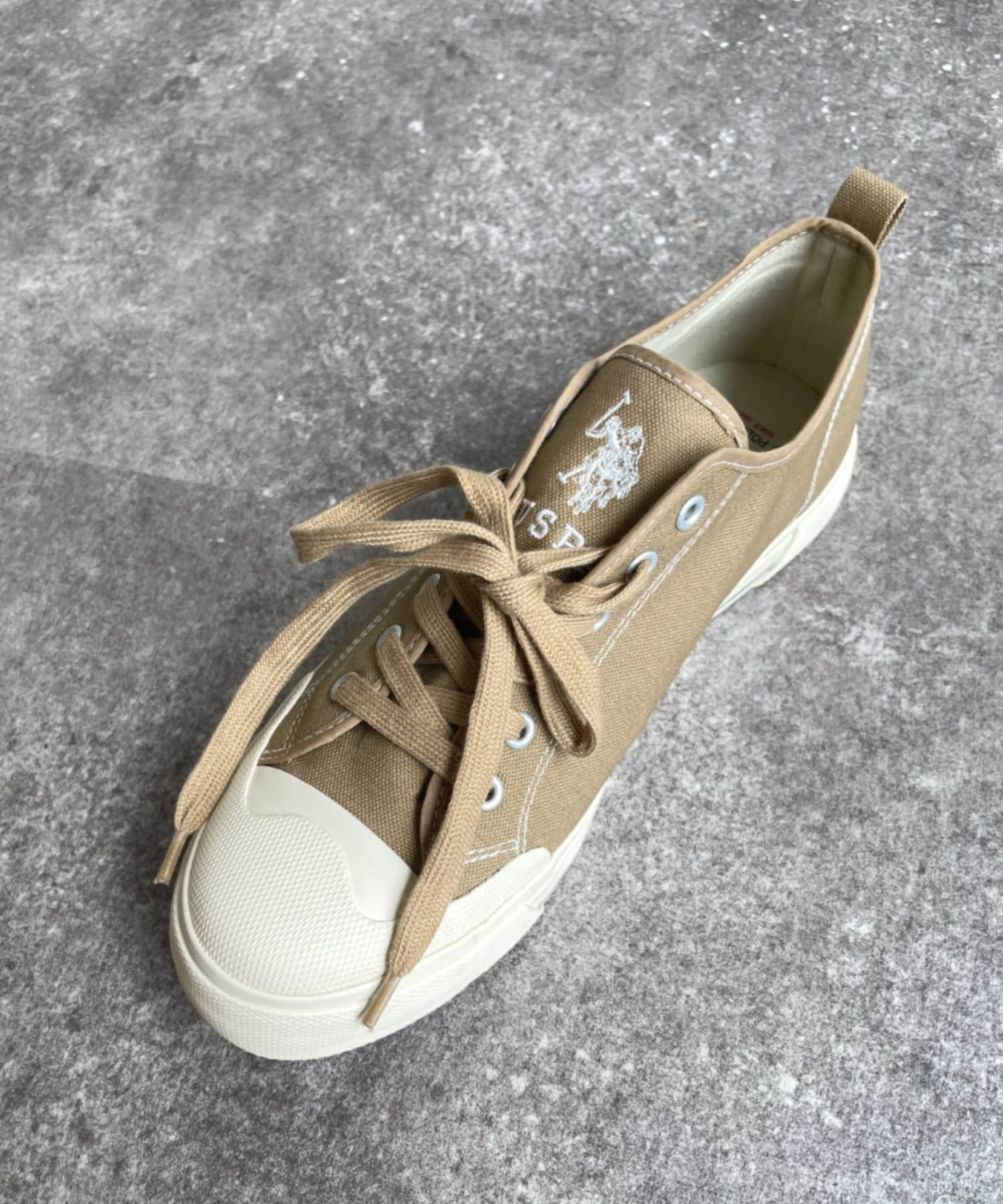 毎シーズン大人気のユーエスポロアッスンから、ベーシックで使い勝手の良い、ロゴ刺繍デザインがさりげなくお洒落に見えるローカットスニーカーがリリースしました!オールシーズンお使い頂けるキャンバス素材で、デイリーユースにもぴったりなデザインです!ベーシックなカラーリングで幅広いスタイルにあわせやすいアイテムで流行り廃りなく定番アイテムとして長く愛用頂けます◎