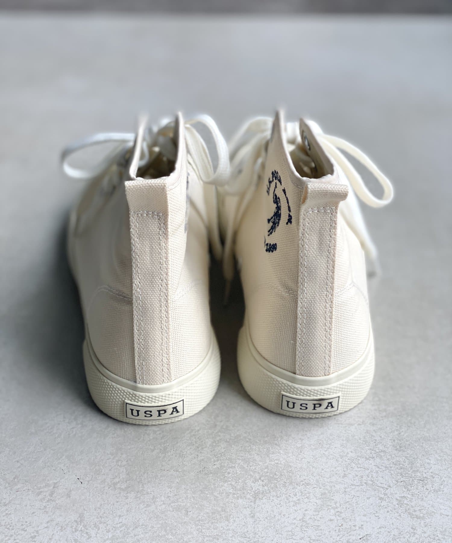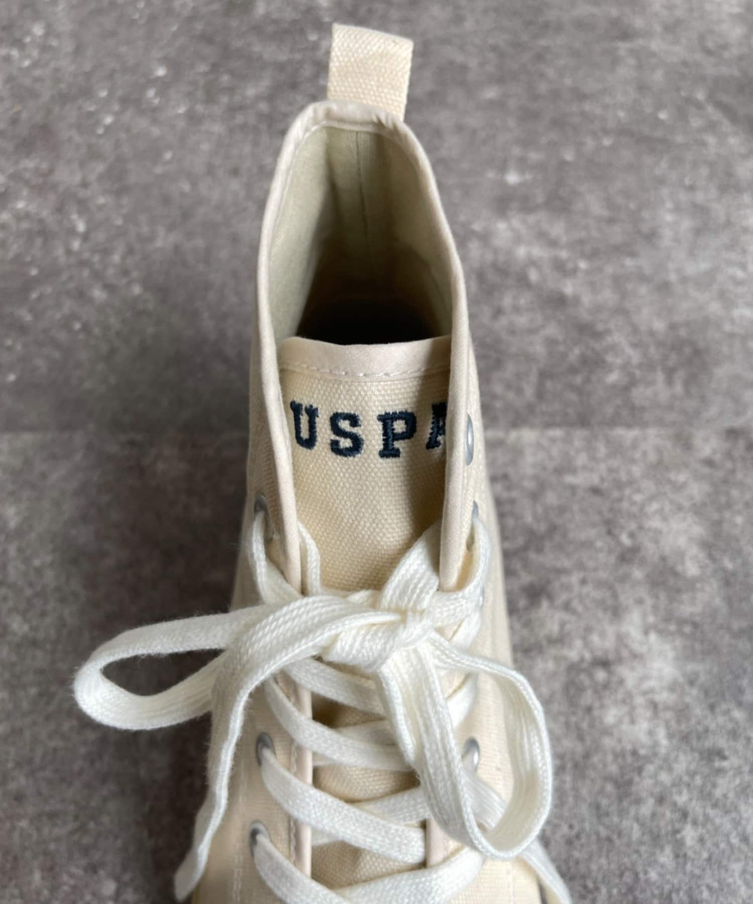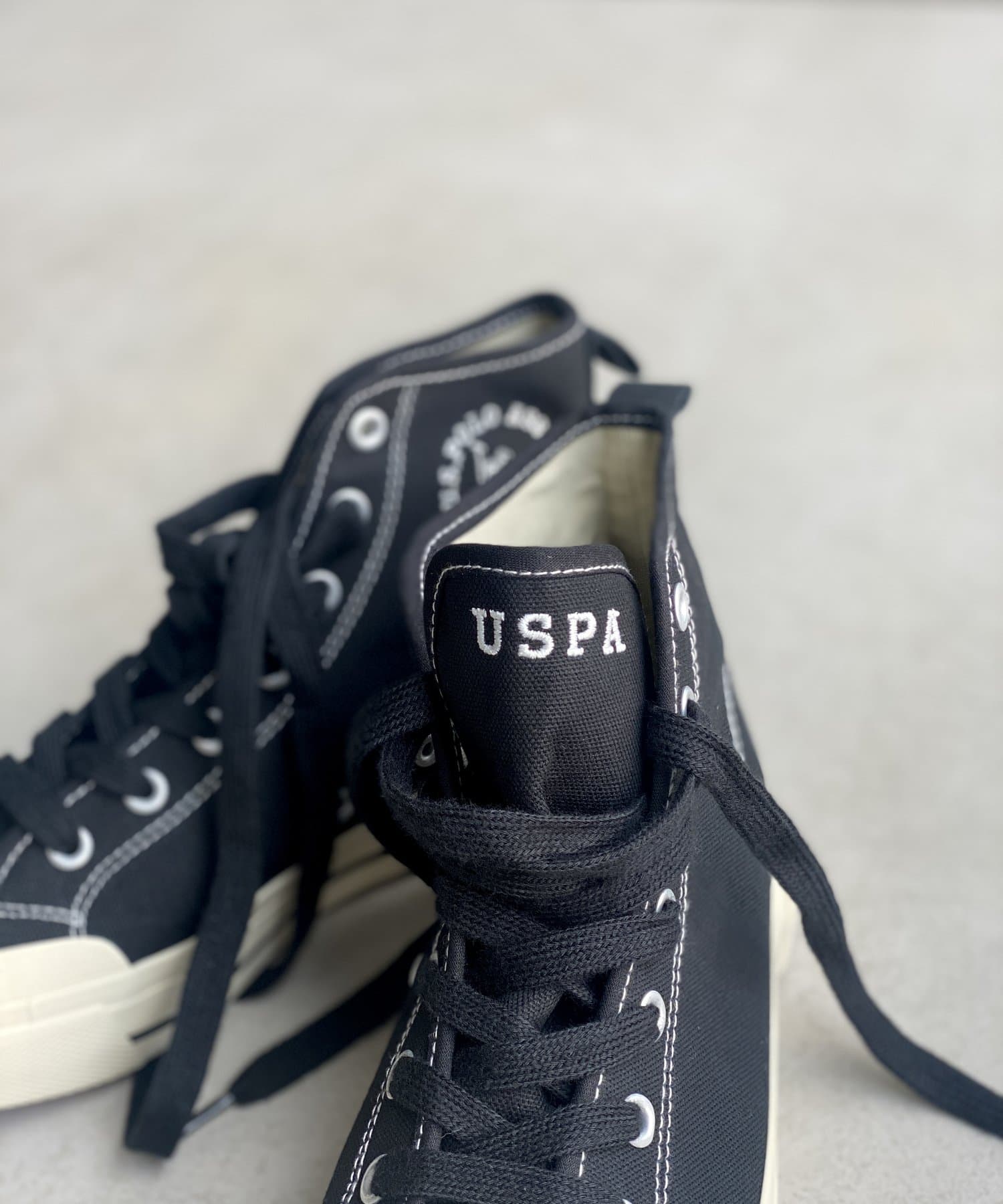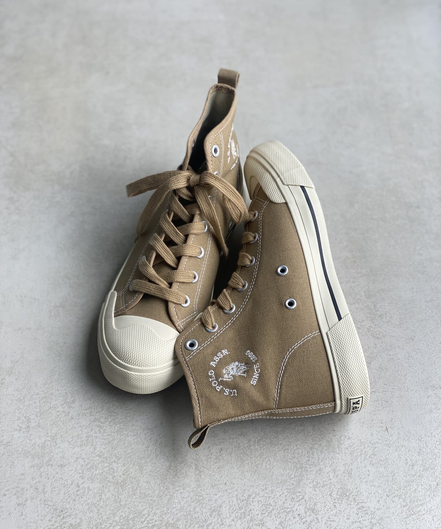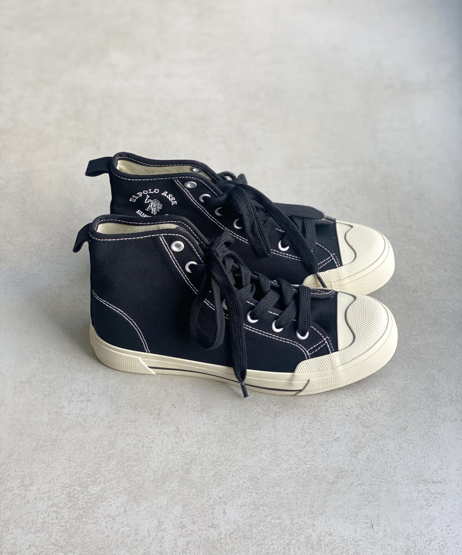毎シーズン大人気のユーエスポロアッスンから、ベーシックで使い勝手の良い、ロゴデザインが目をひくハイカットスニーカーがリリースしました!オールシーズンお使い頂けるキャンバス素材で、デイリーユースにもぴったりなデザインです!ベーシックなカラーリングで幅広いスタイルにあわせやすいアイテムで流行り廃りなく定番アイテムとして長く愛用頂けます◎