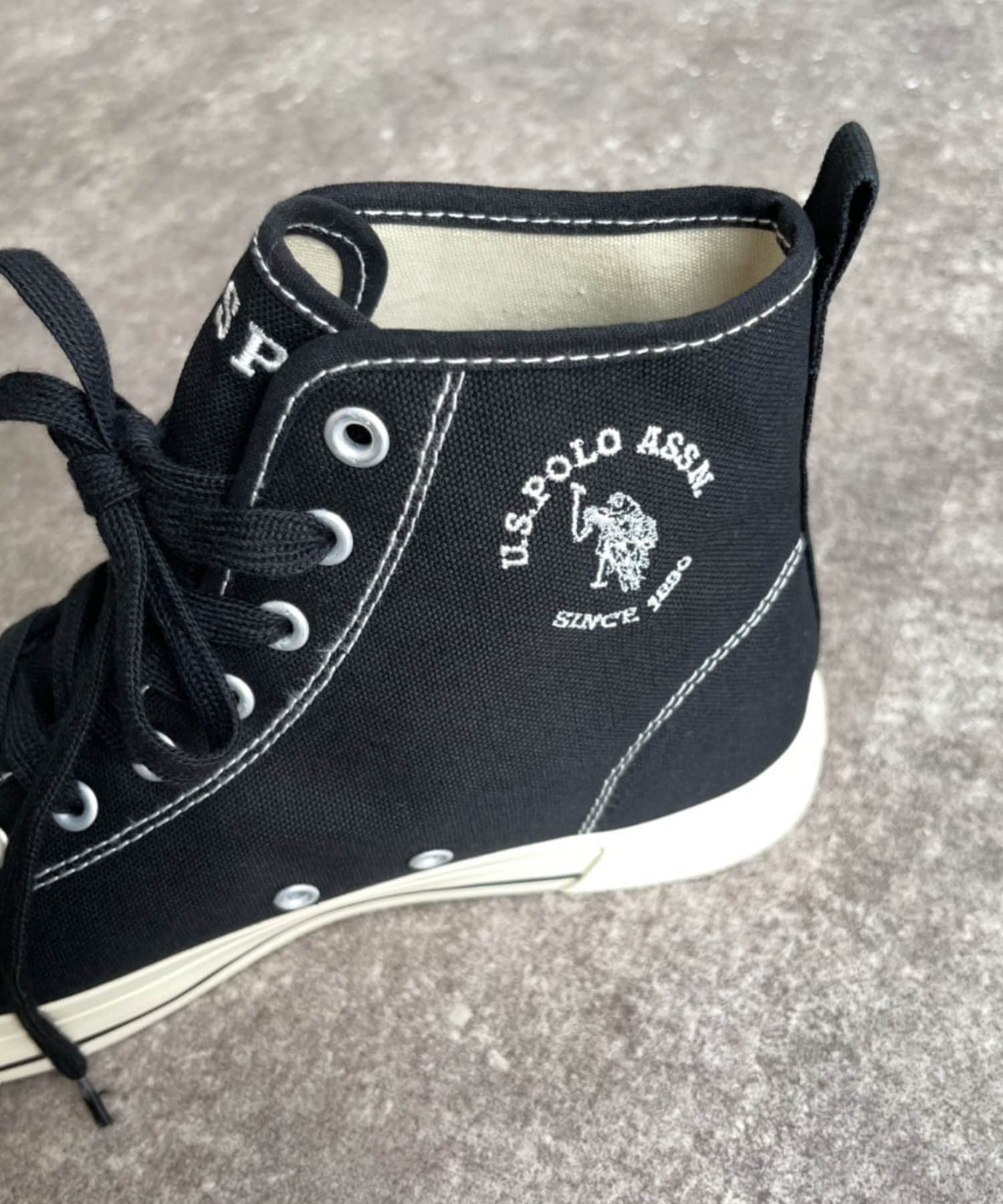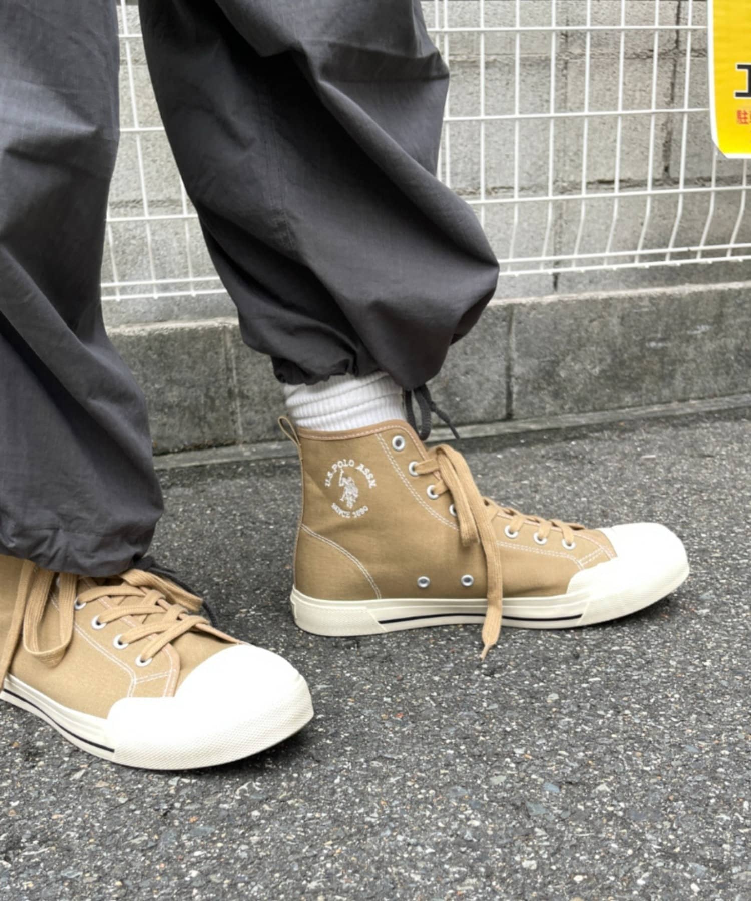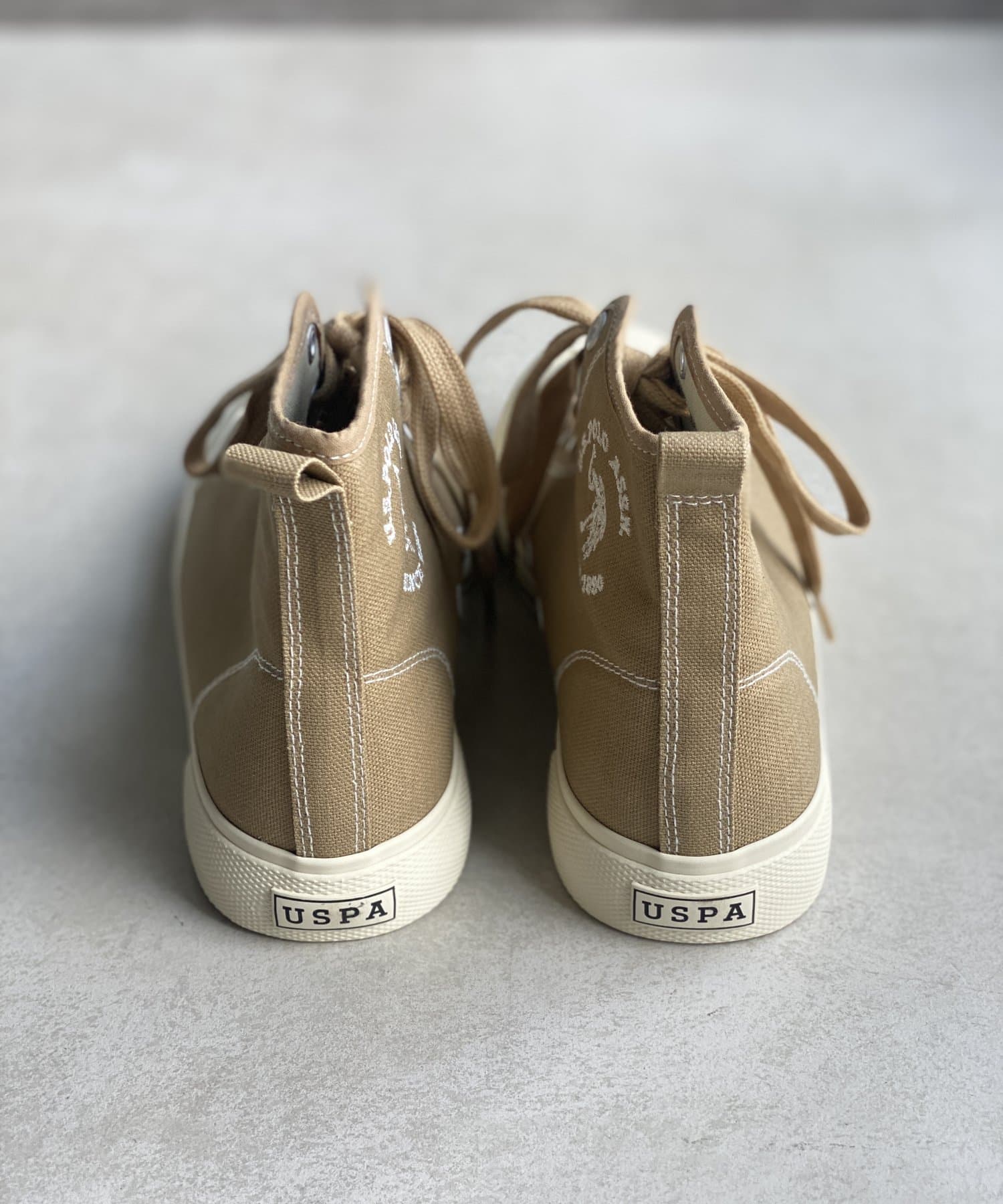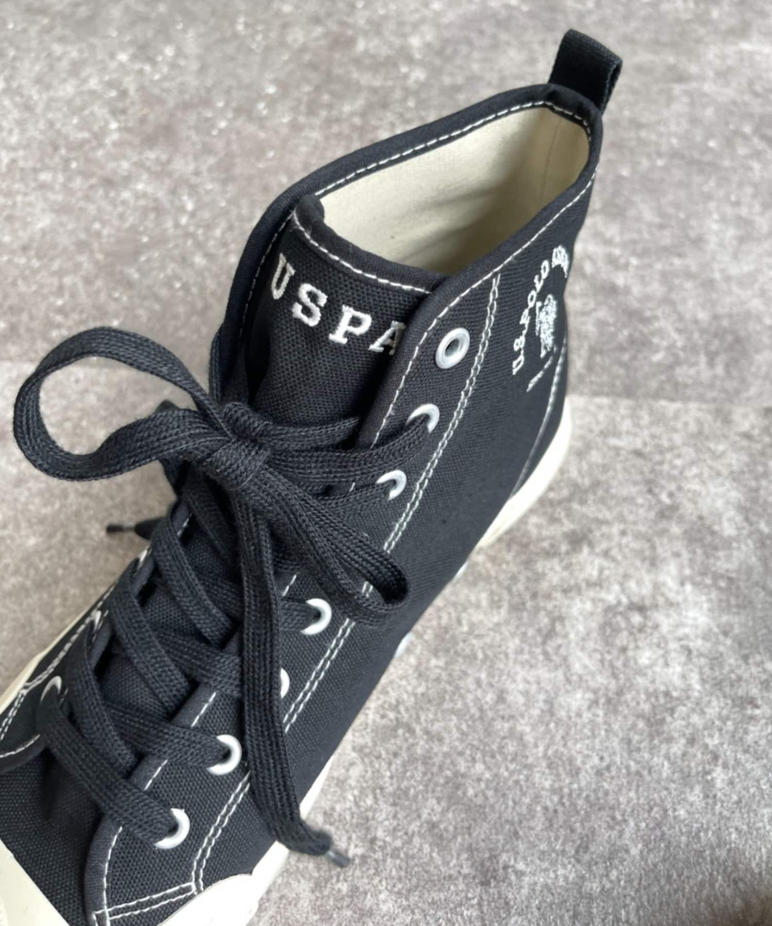 毎シーズン大人気のユーエスポロアッスンから、ベーシックで使い勝手の良い、ロゴデザインが目をひくハイカットスニーカーがリリースしました!オールシーズンお使い頂けるキャンバス素材で、デイリーユースにもぴったりなデザインです!ベーシックなカラーリングで幅広いスタイルにあわせやすいアイテムで流行り廃りなく定番アイテムとして長く愛用頂けます◎