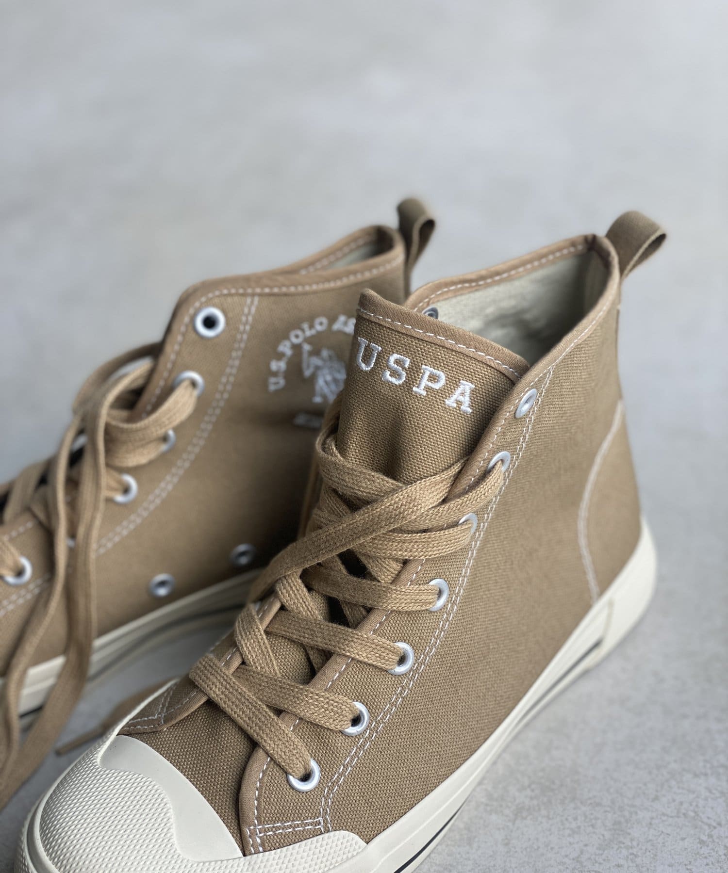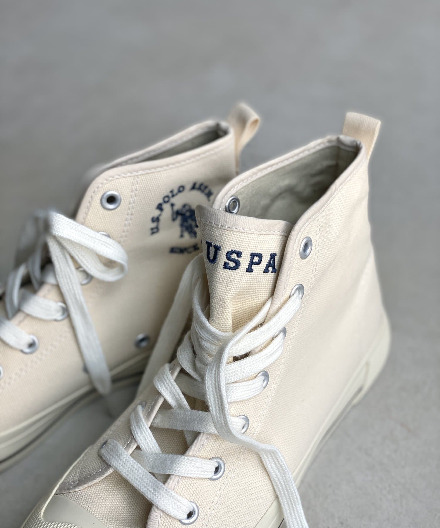 【U.S. POLO ASSN.】1ポイントロゴ刺繍メンズハイカットスニーカー