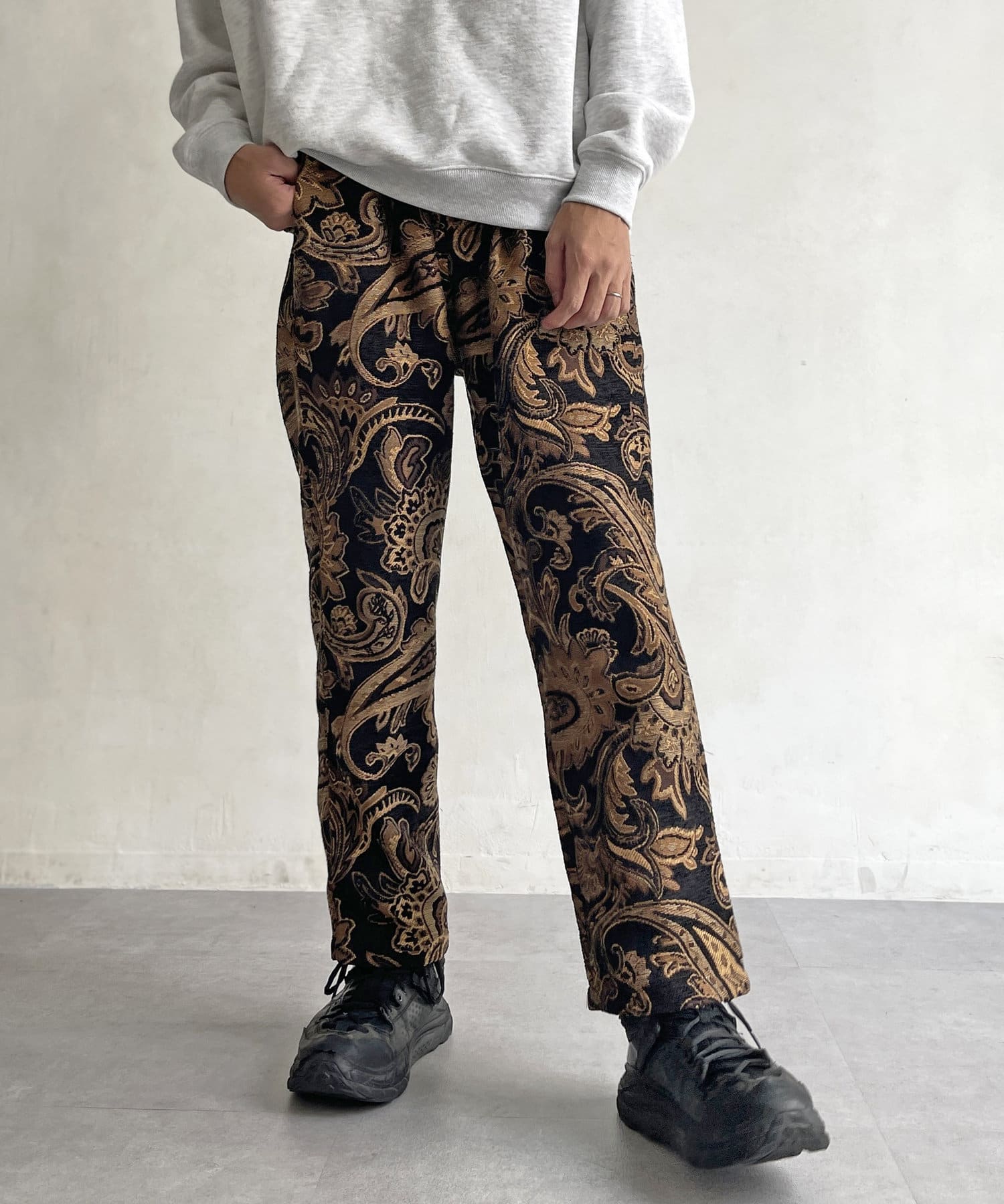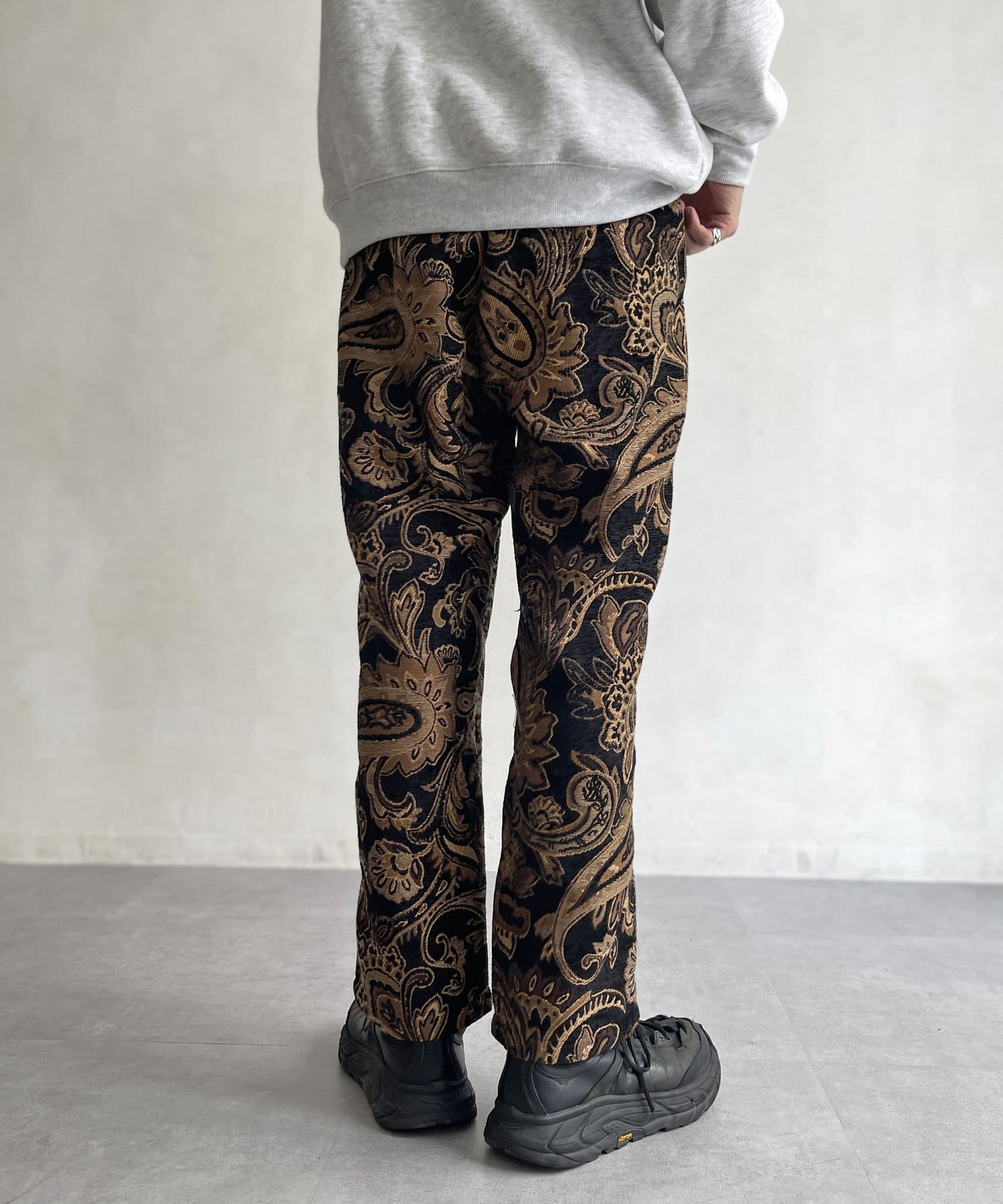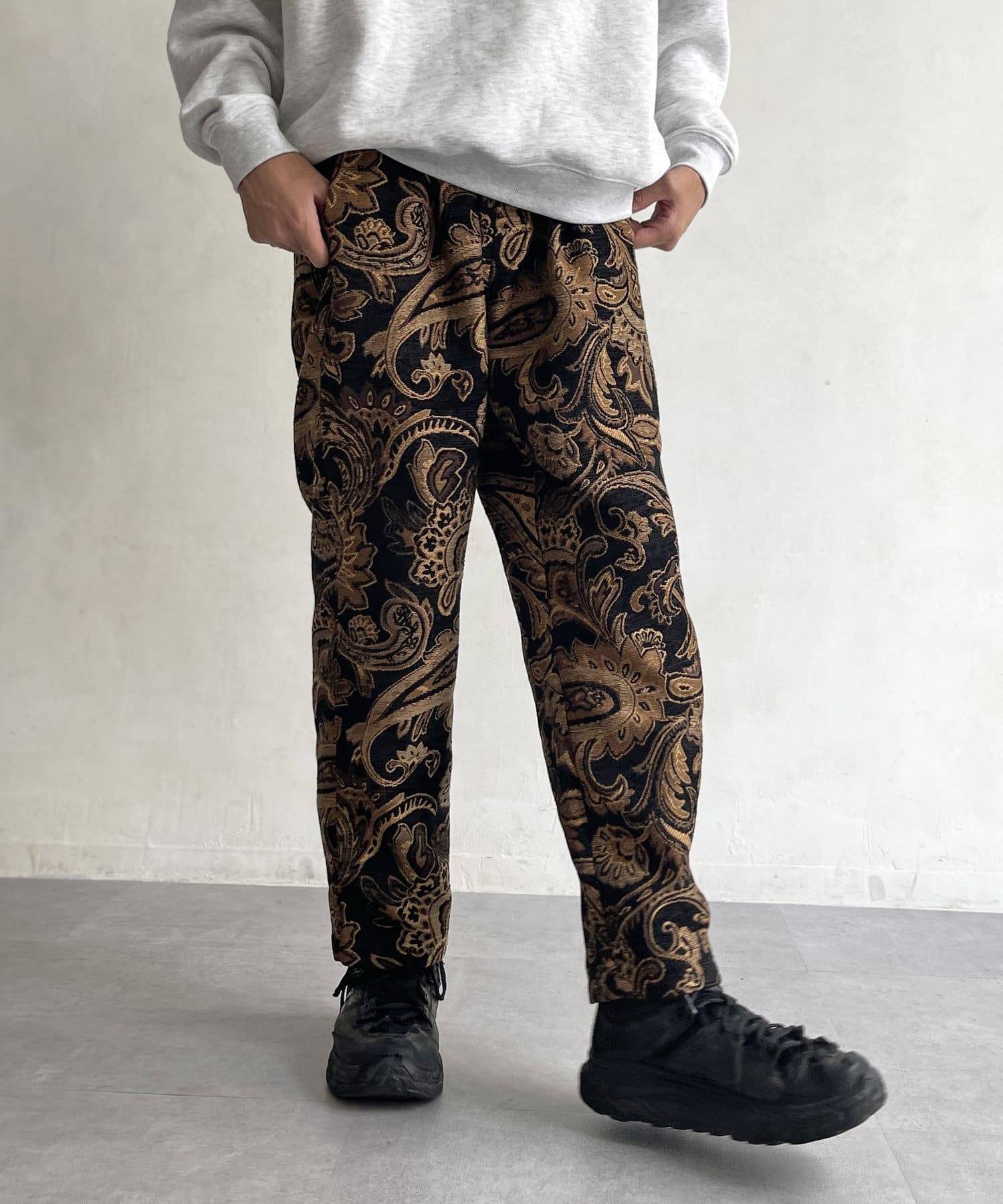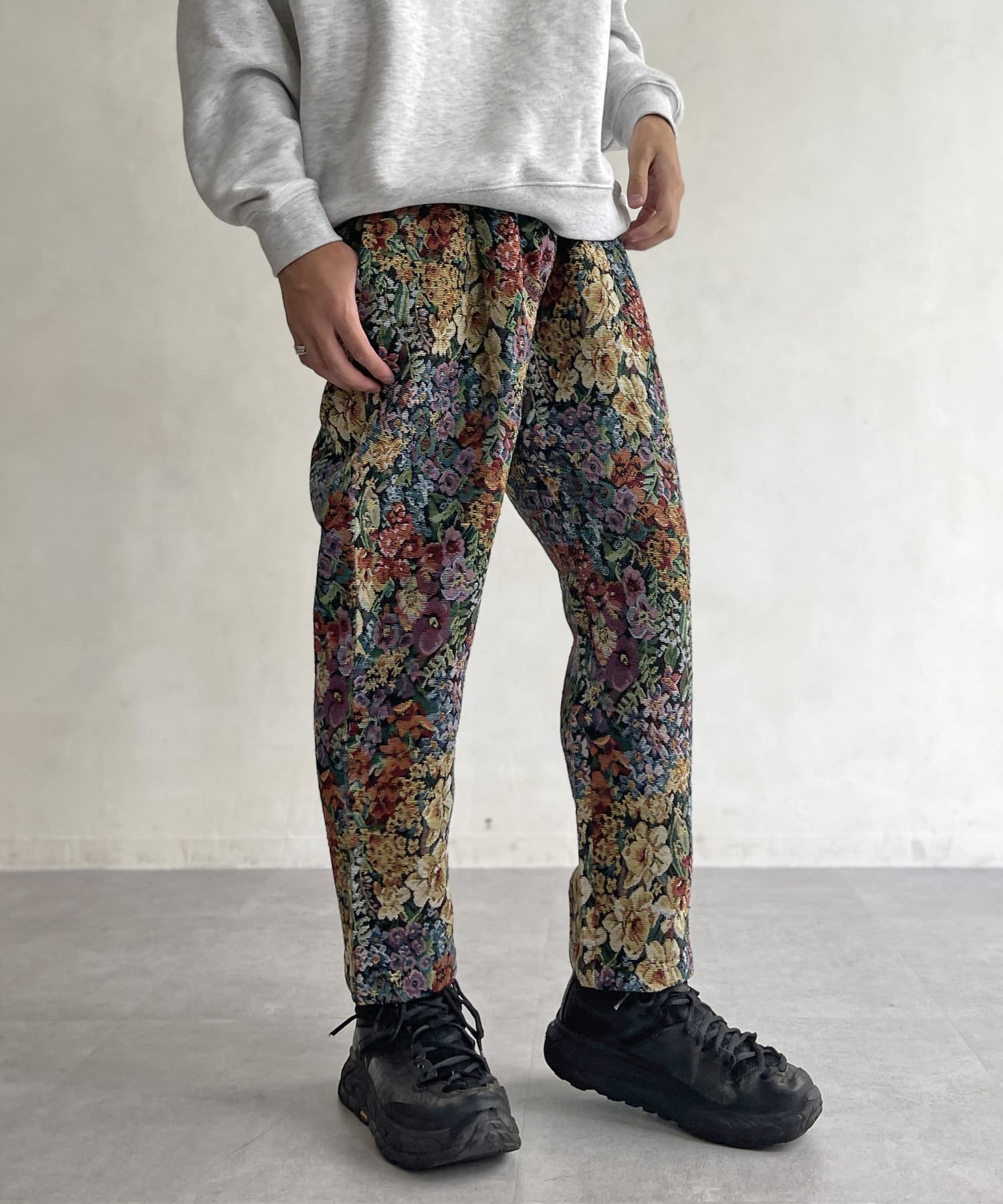 ●耐久性の高いゴブラン織りの生地を使用した総柄パンツ。