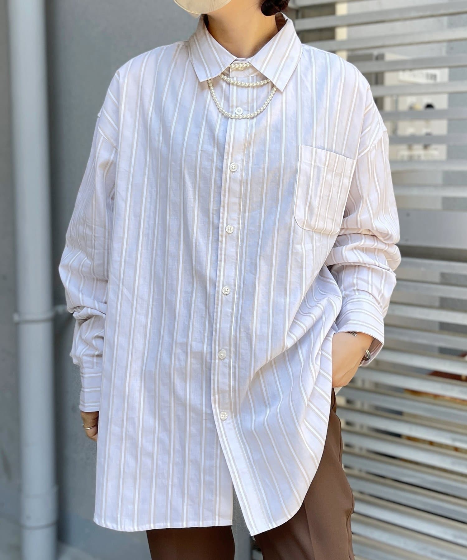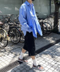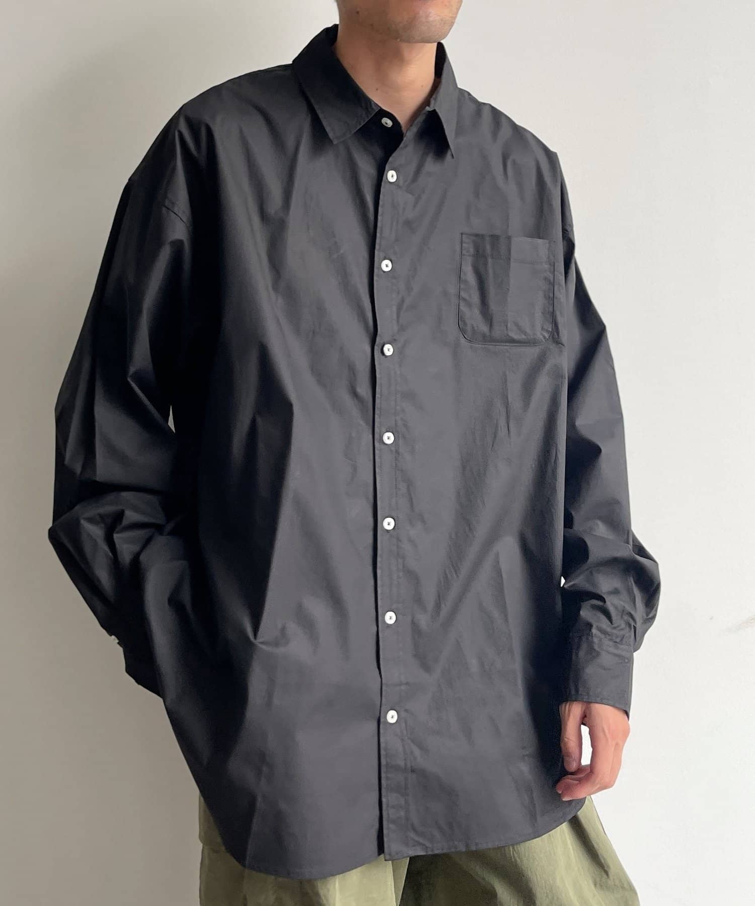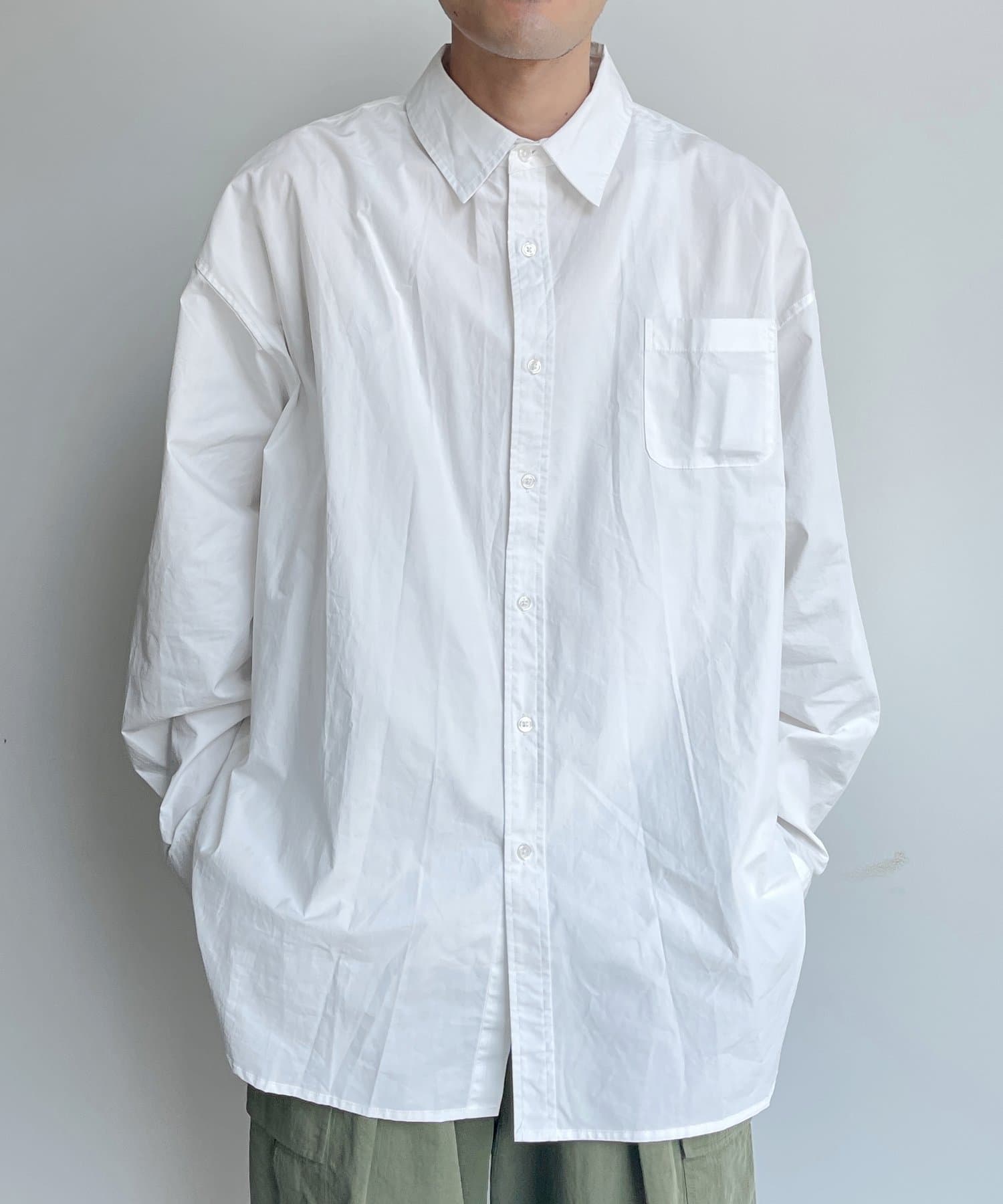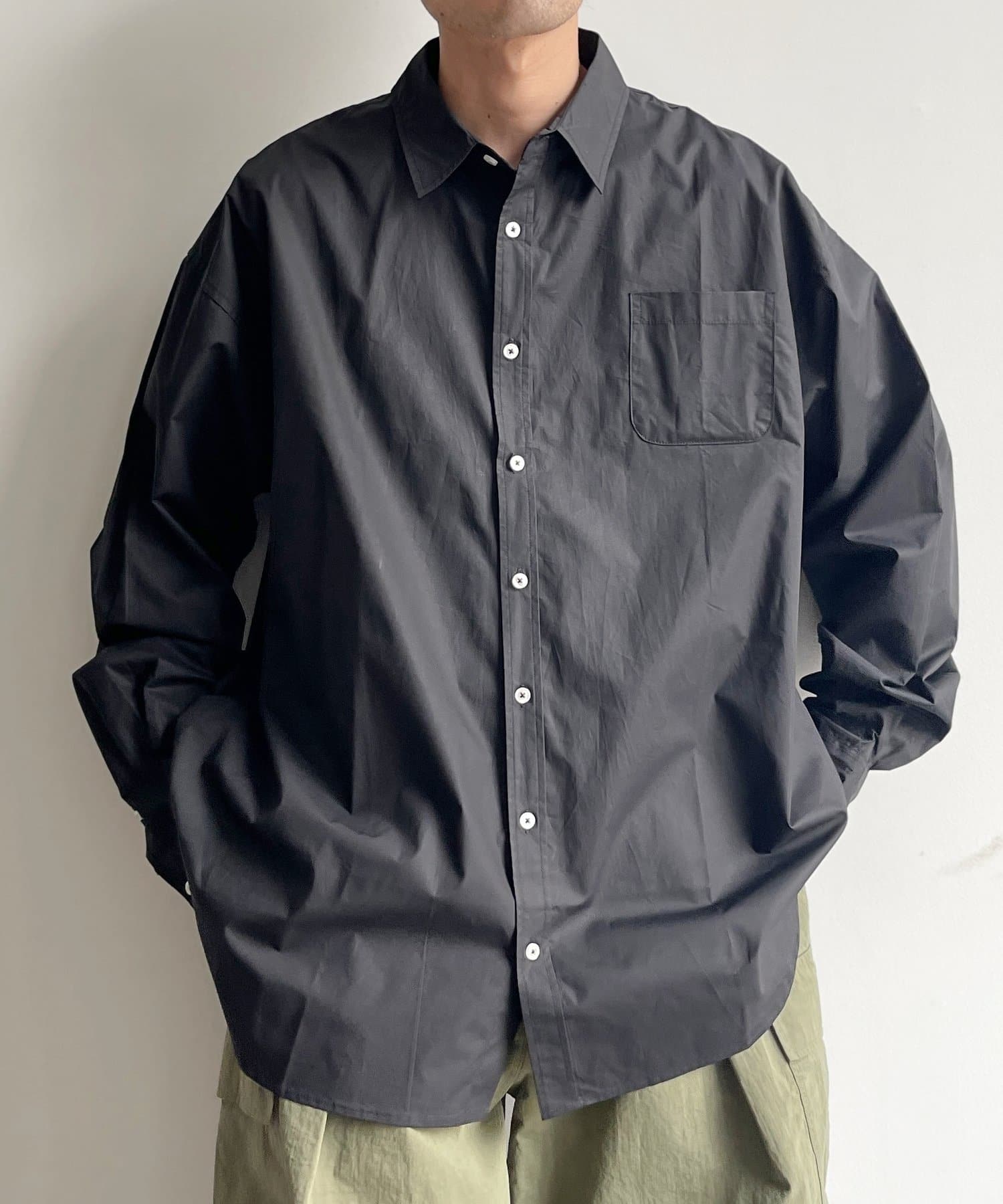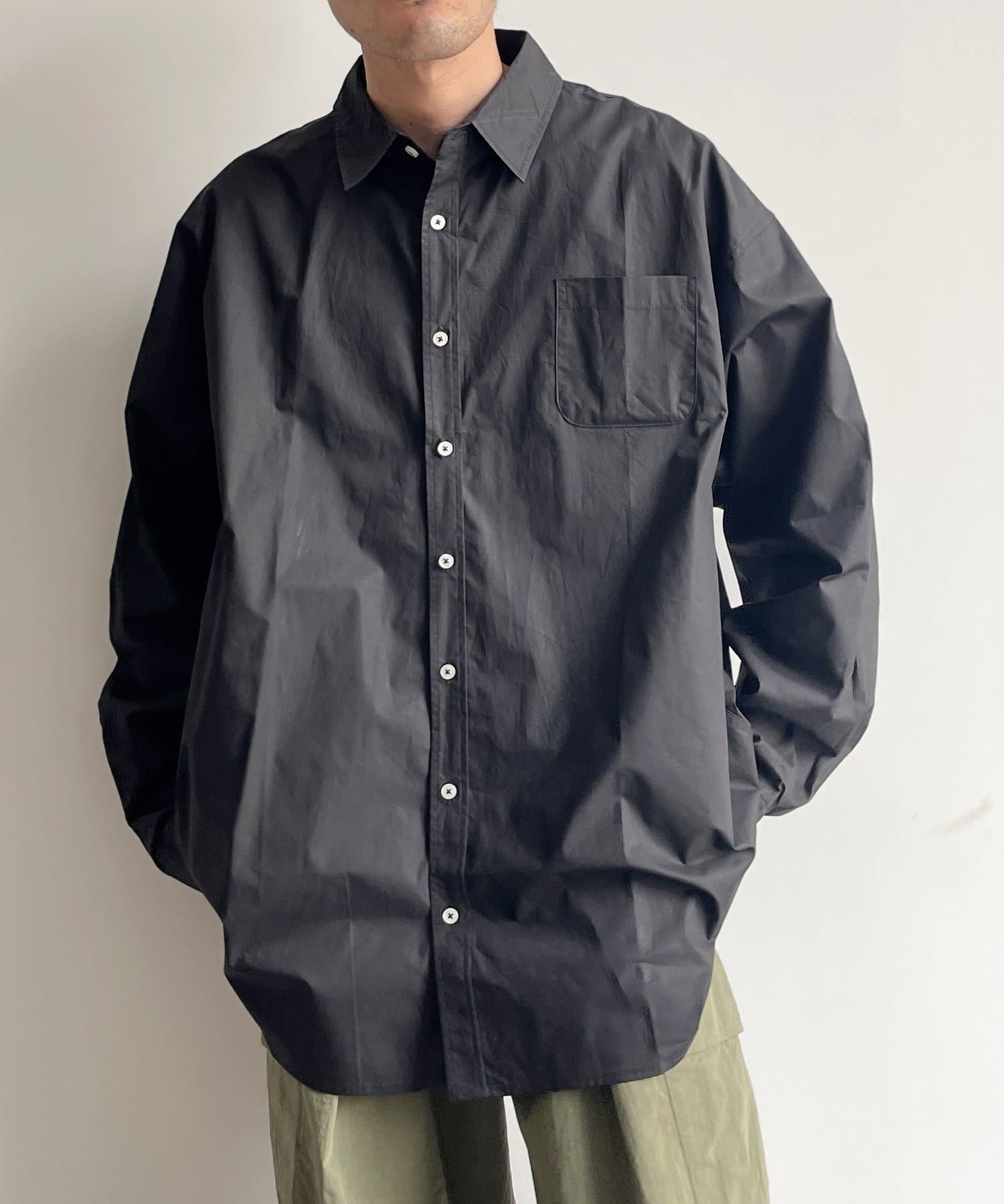 ブロード生地が上品な雰囲気で、カジュアルなパンツから綺麗めまで幅広い、どんなコーディネートにも馴染む1着となっております。ビッグシルエットなので、ワイドパンツフレアパンツと相性が良く、1枚着としてヘビーローテーションしてもらえます。カーディガンやベストといた秋に活躍するアイテムとレイヤードがおすすめ。