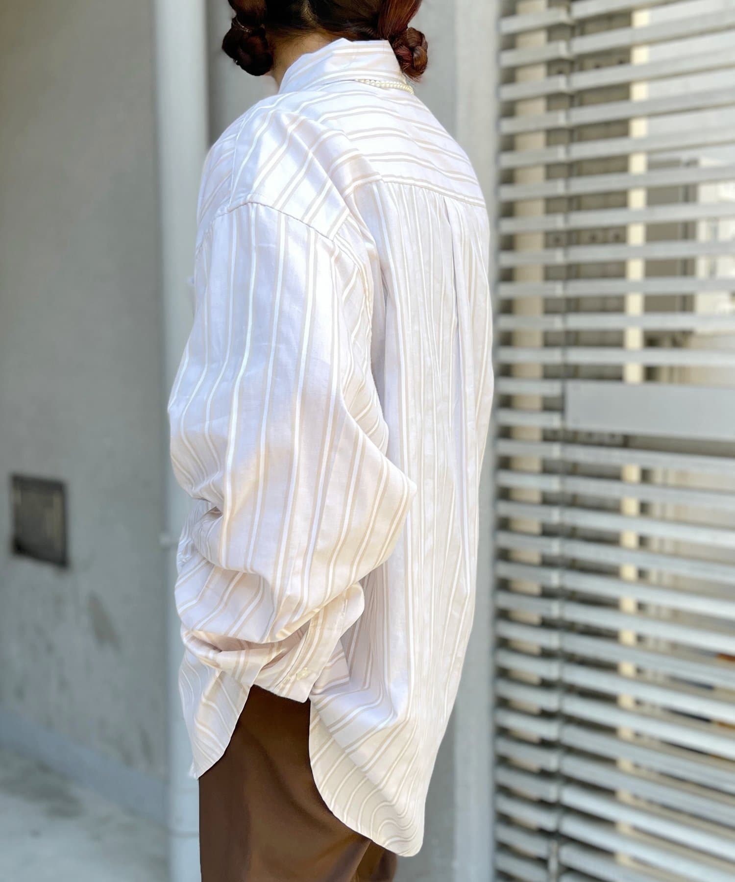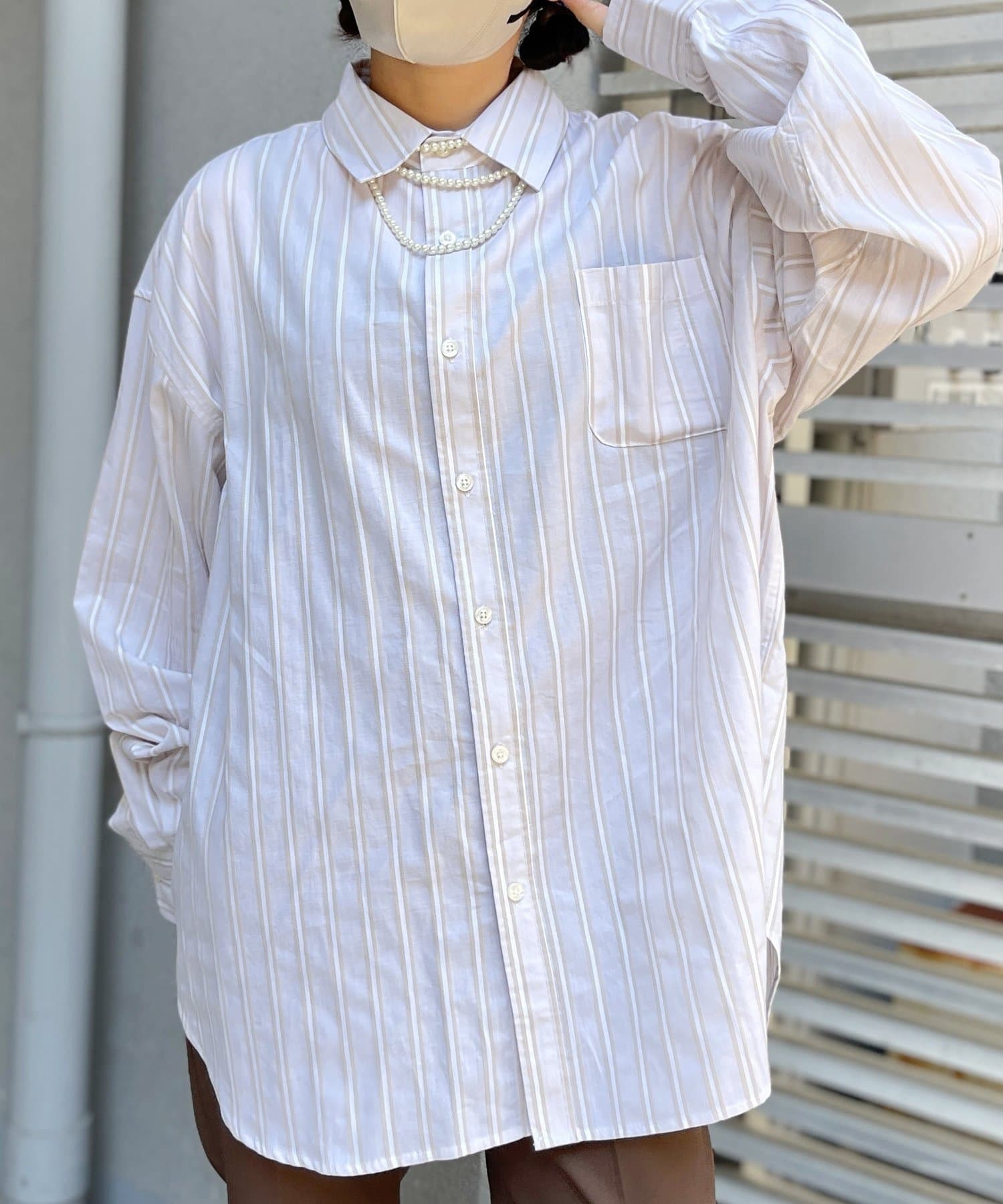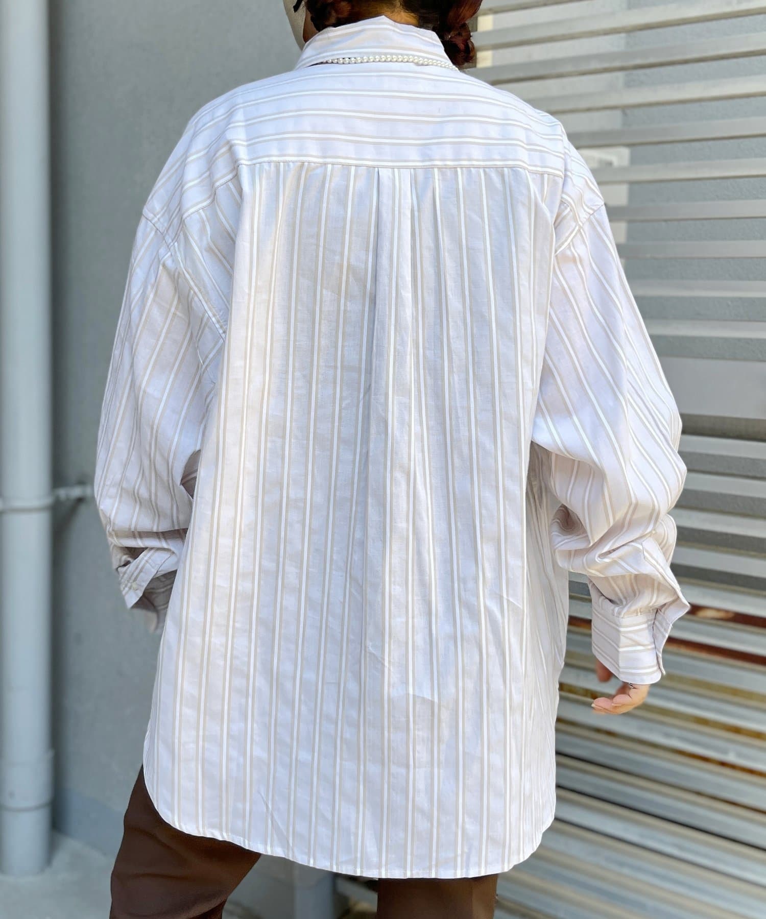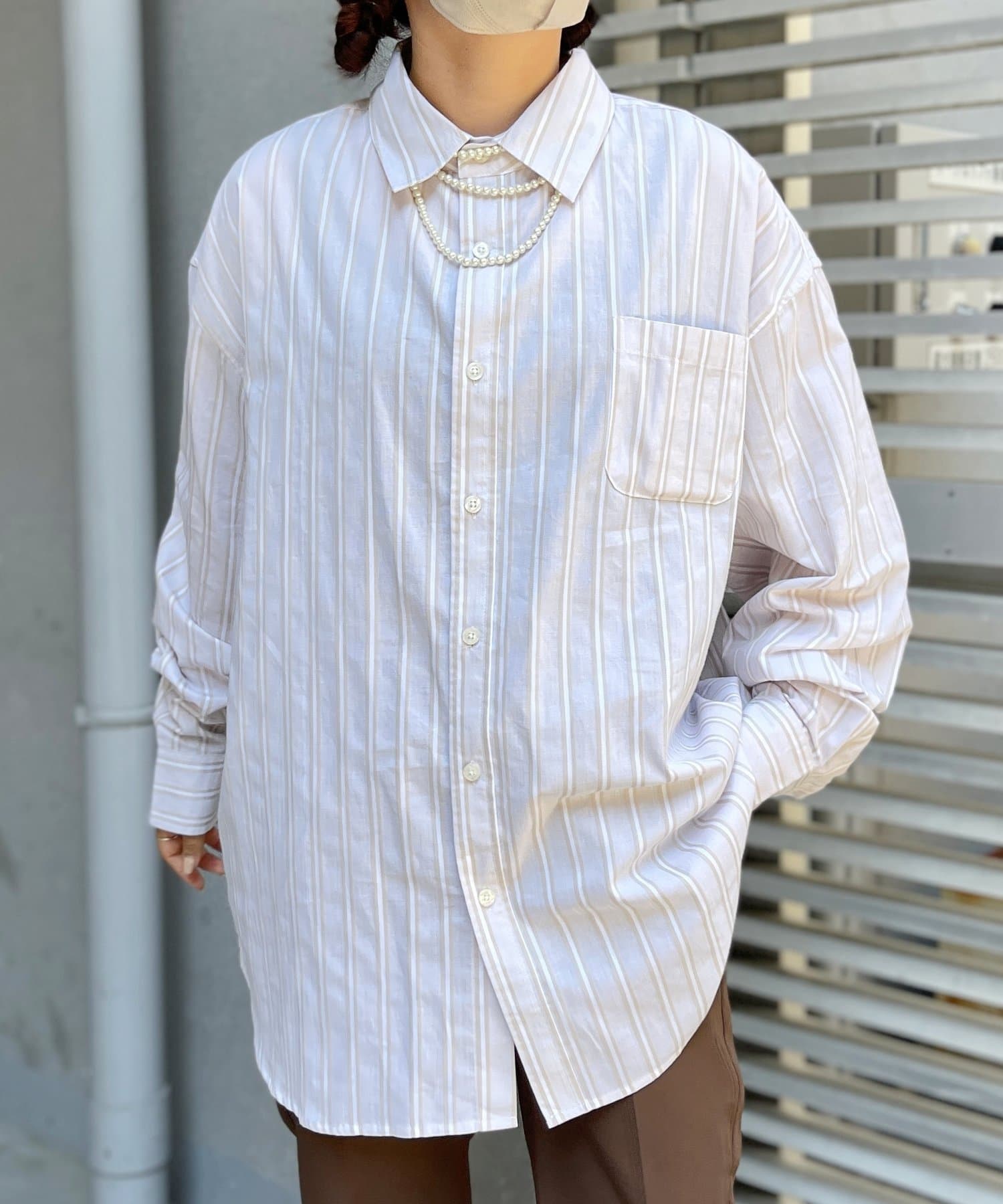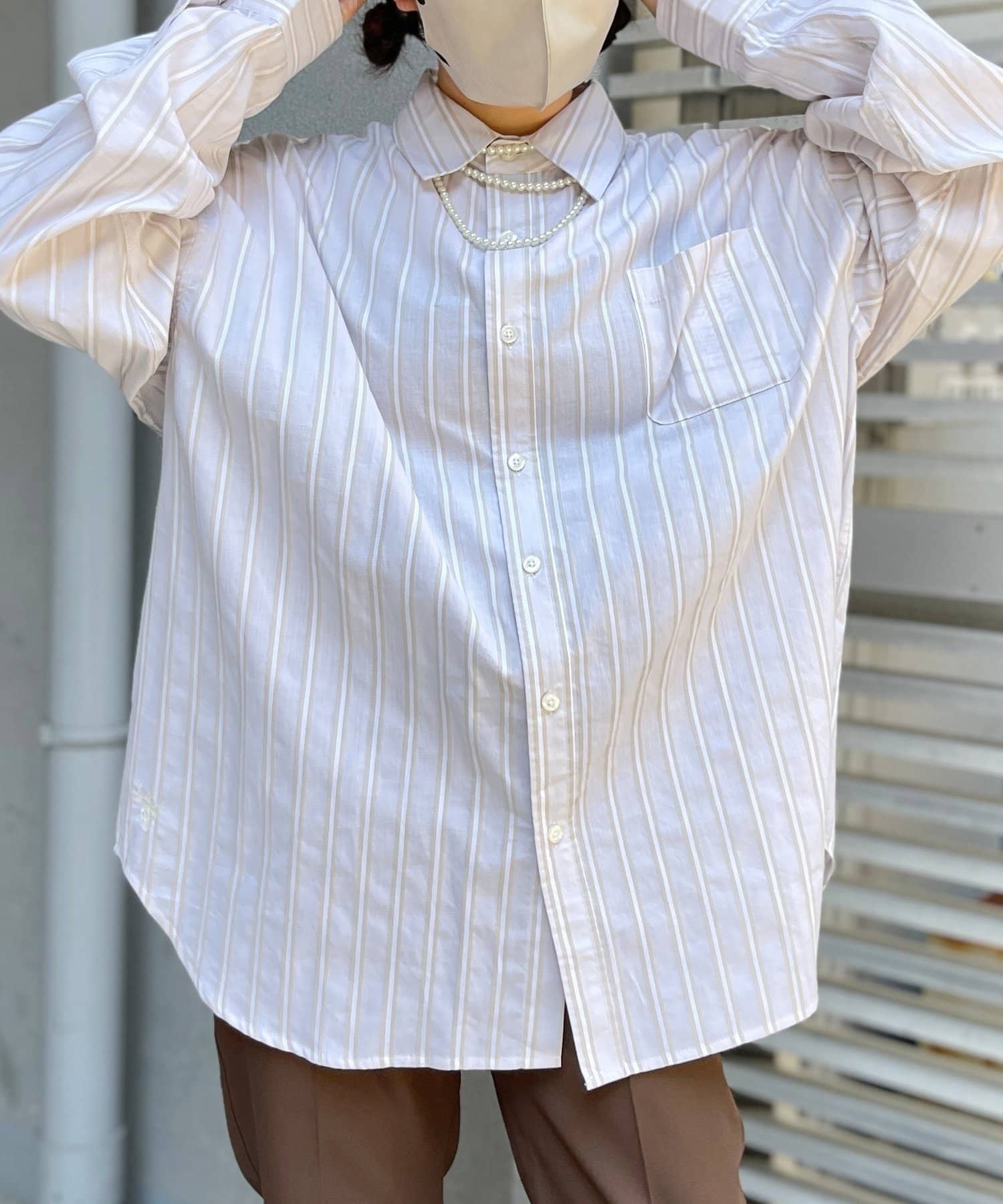 ブロード生地が上品な雰囲気で、カジュアルなパンツから綺麗めまで幅広い、どんなコーディネートにも馴染む1着となっております。ビッグシルエットなので、ワイドパンツフレアパンツと相性が良く、1枚着としてヘビーローテーションしてもらえます。カーディガンやベストといた秋に活躍するアイテムとレイヤードがおすすめ。