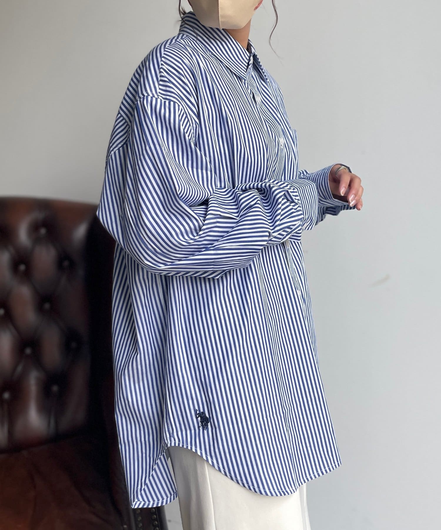 ブランドロゴが裾に刺繍されたルーズなシルエットのビッグシャツ