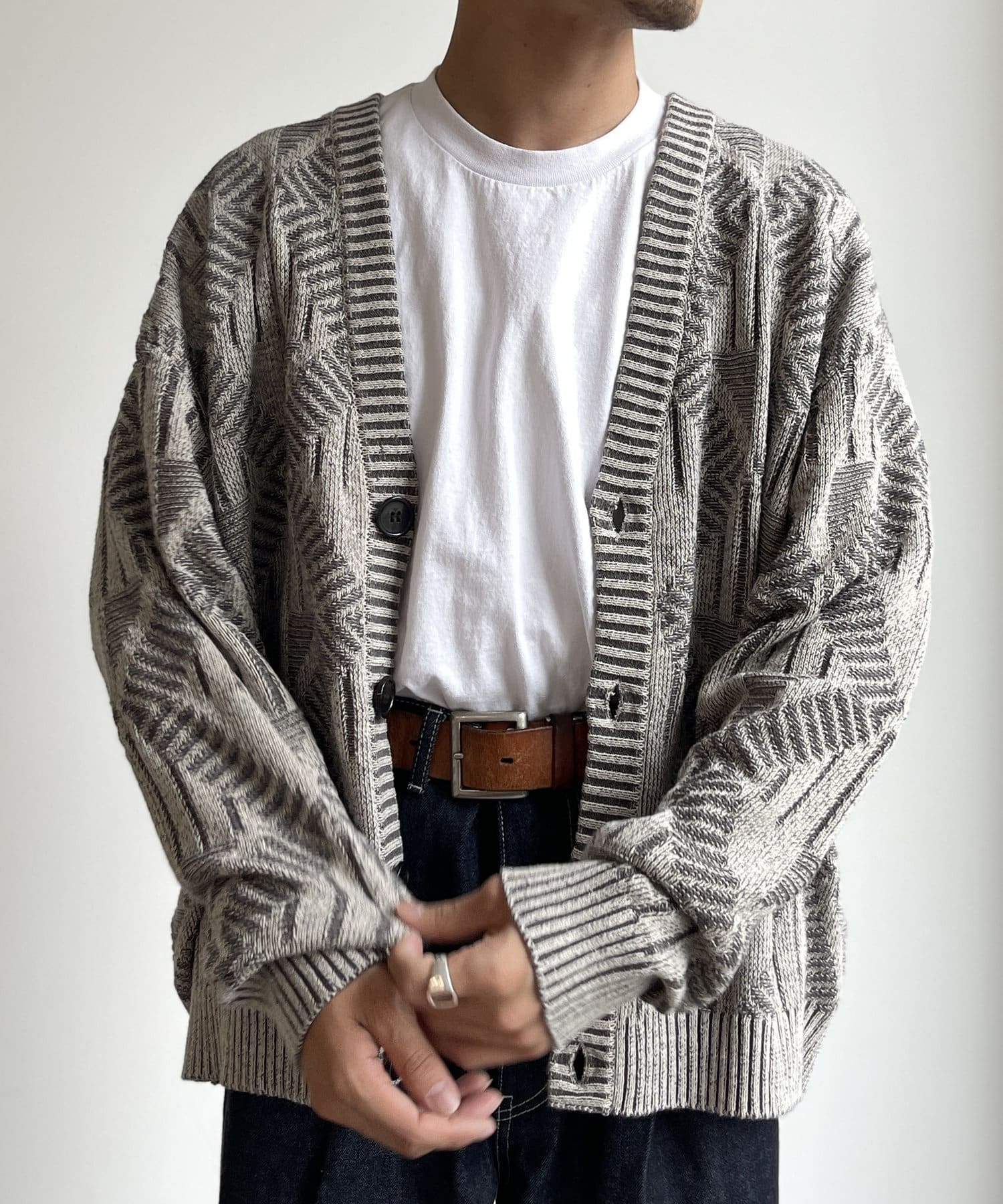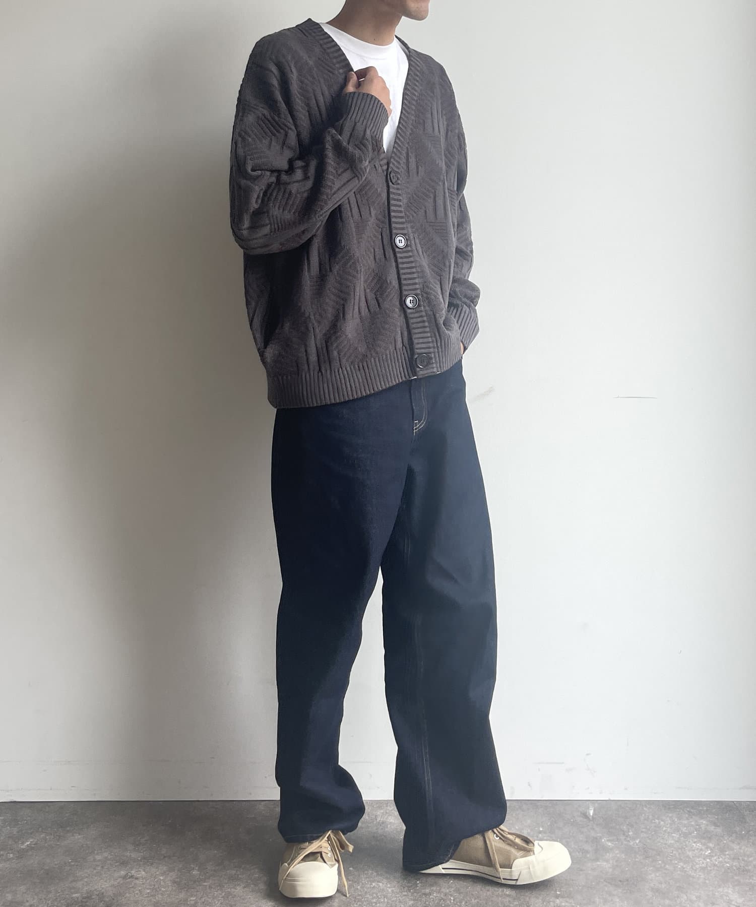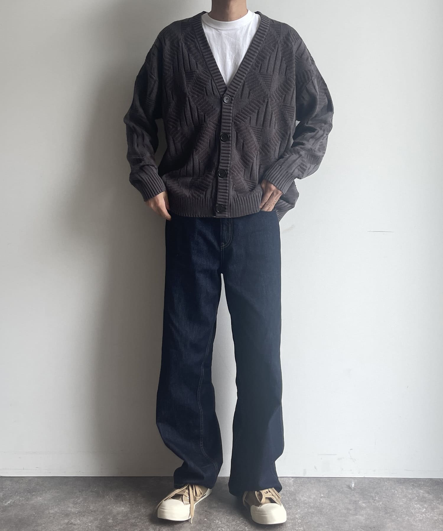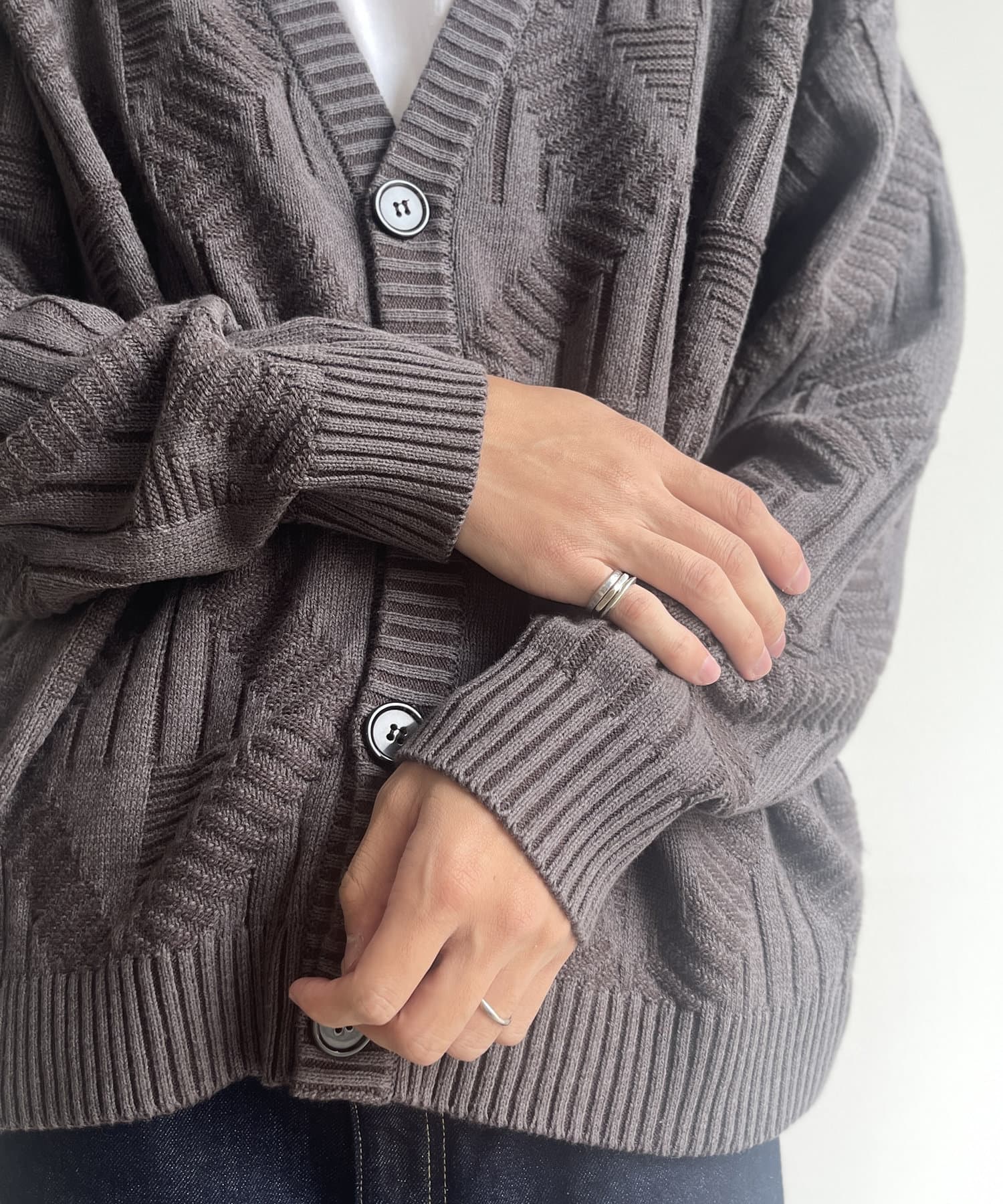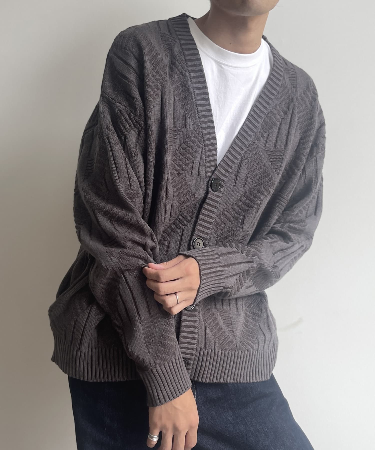 編み地のデザインが個性的な1枚でサマになるニットカーディガン
