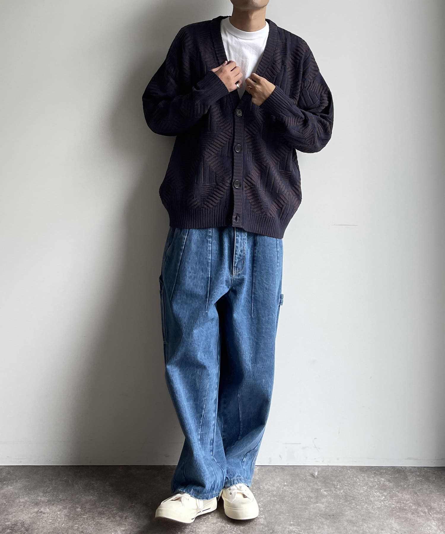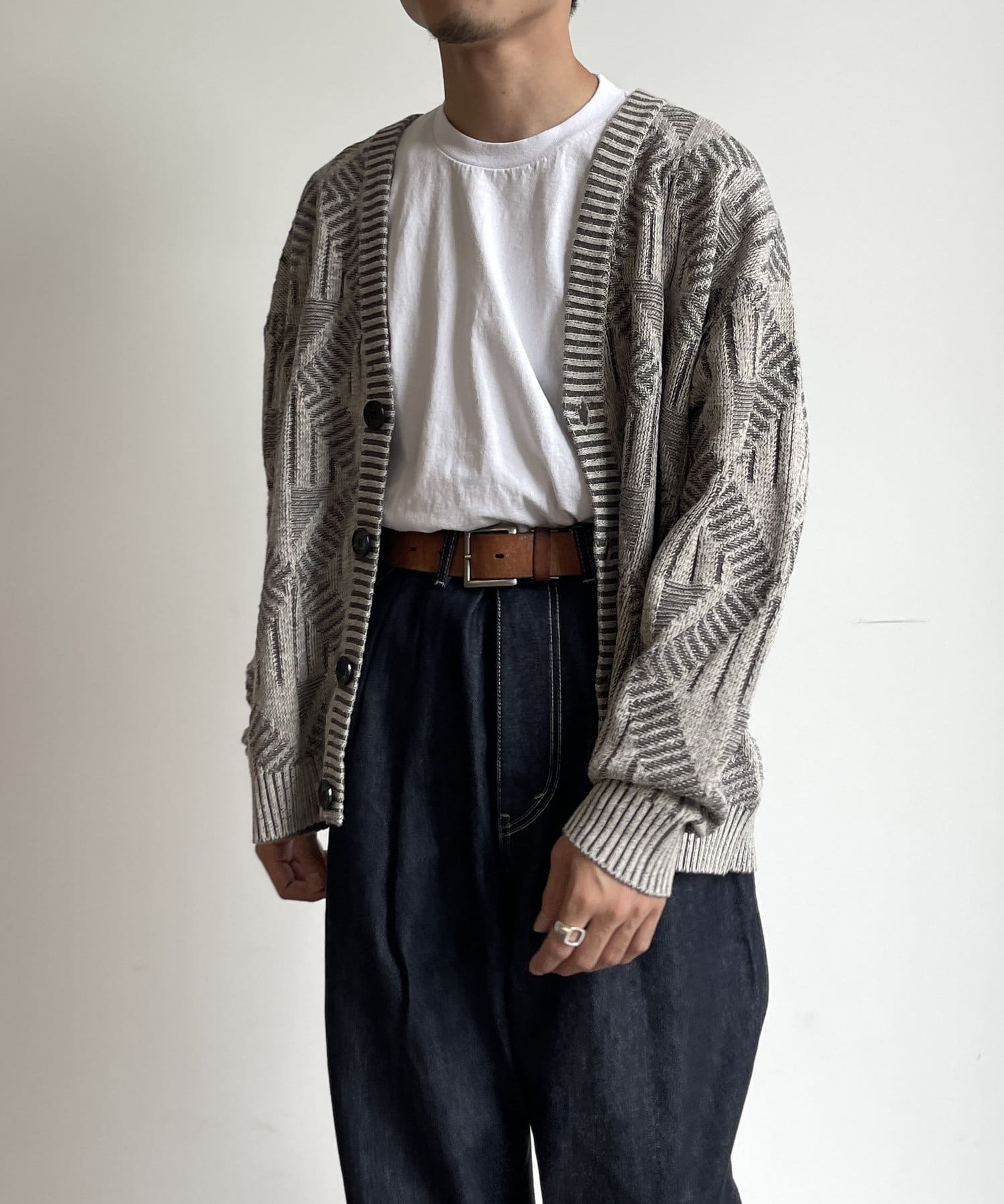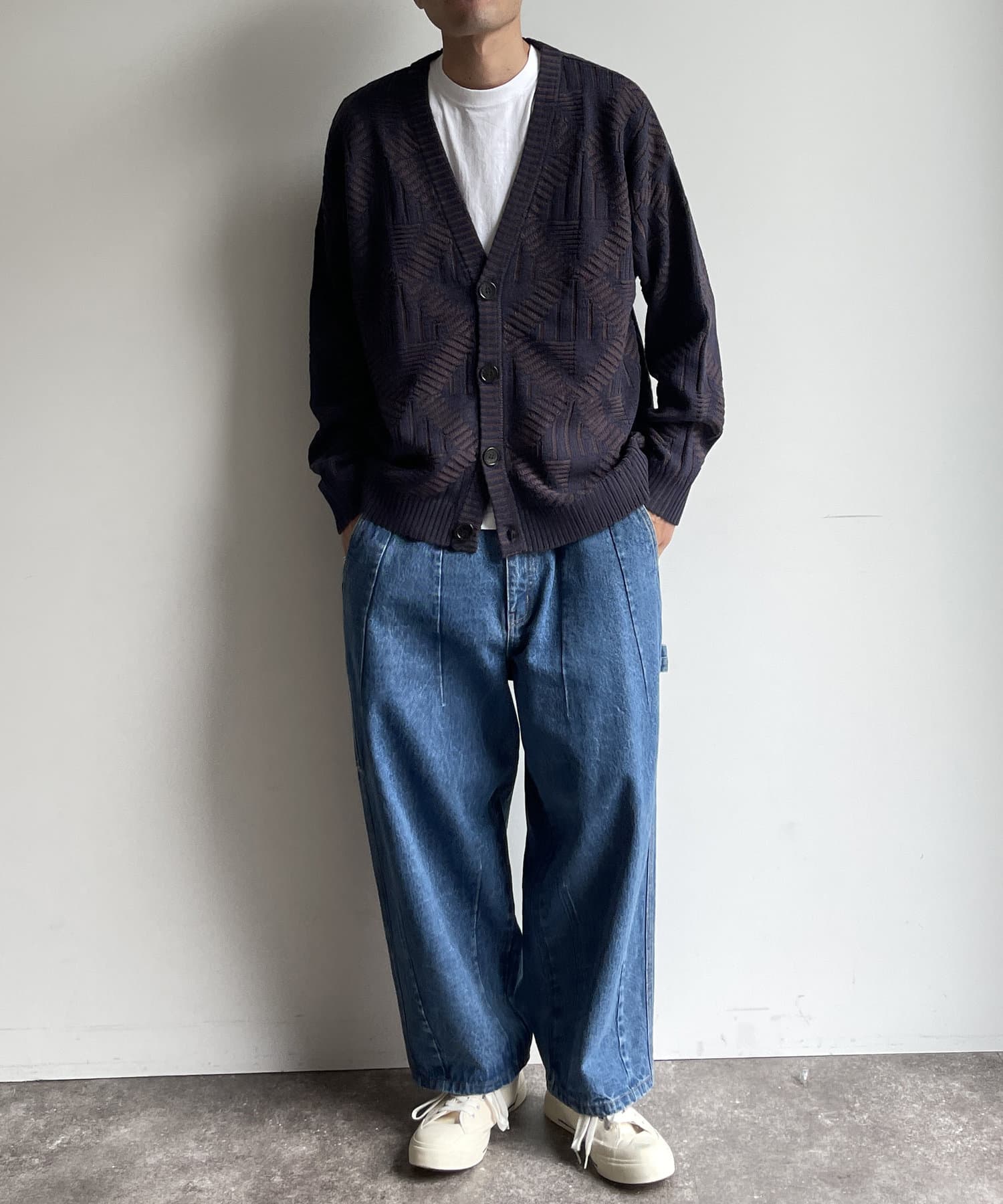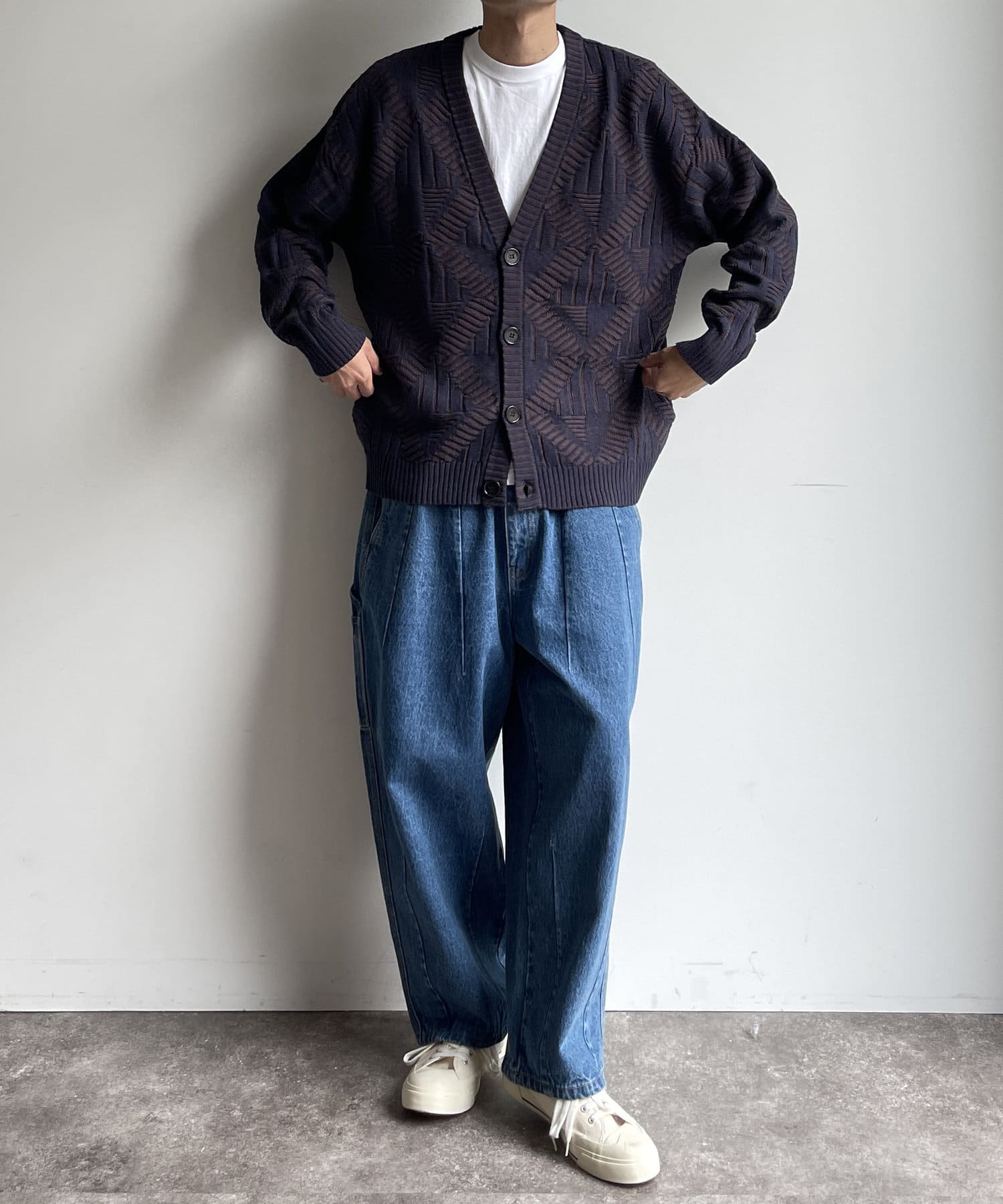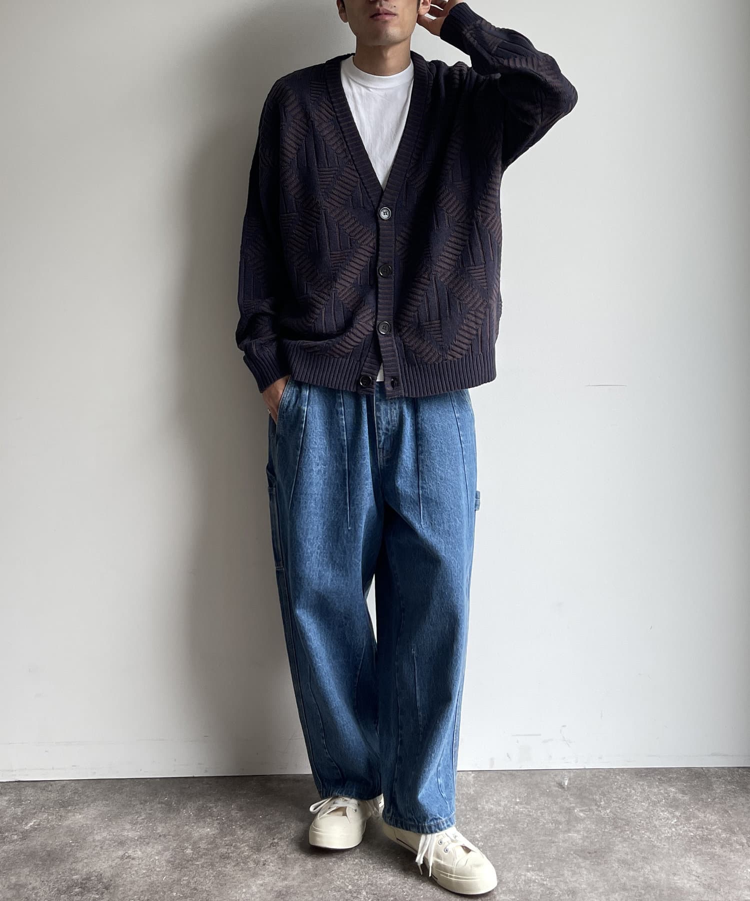編み地のデザインが個性的な1枚でサマになるニットカーディガン