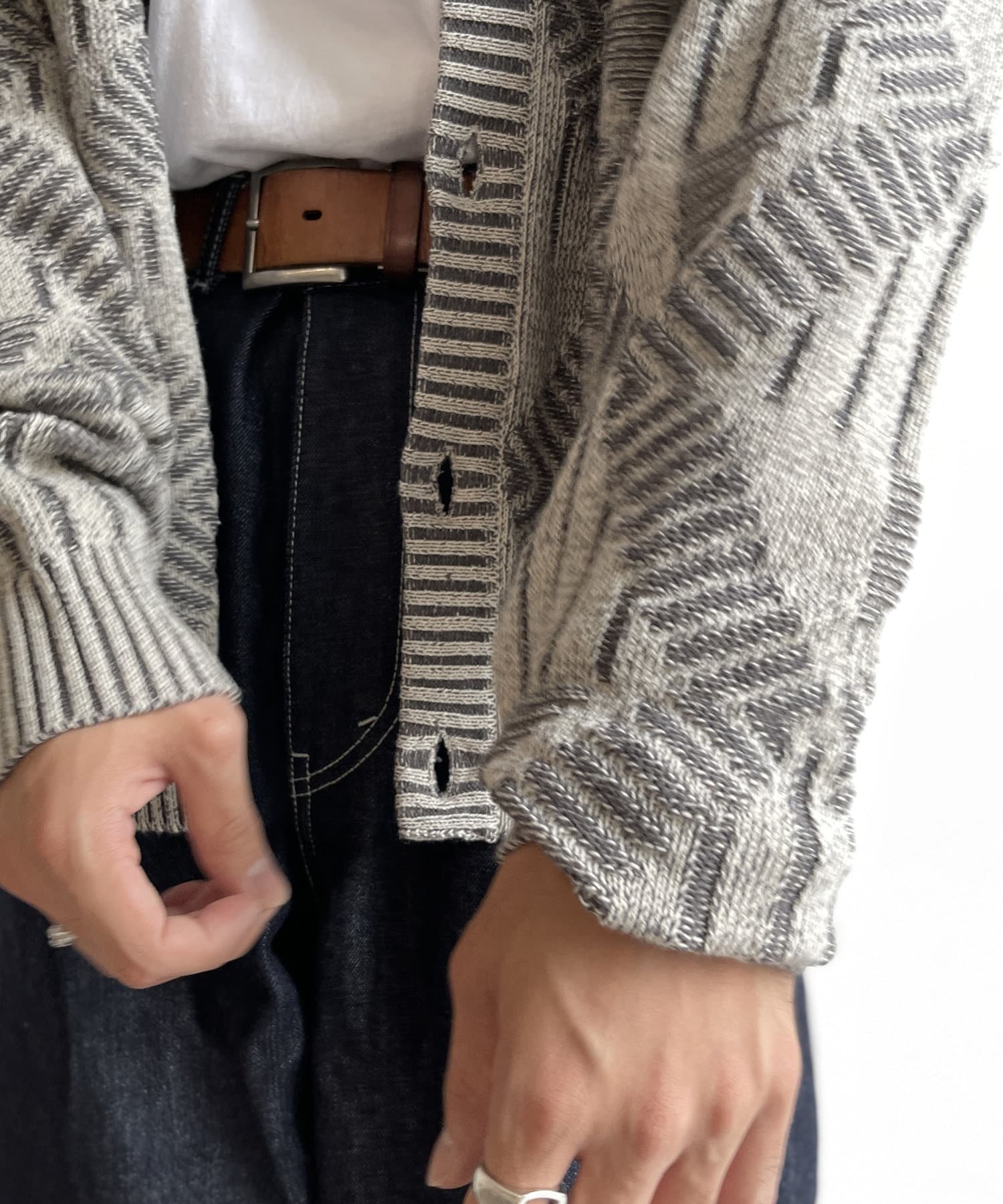 幾何学柄ニットカーディガン