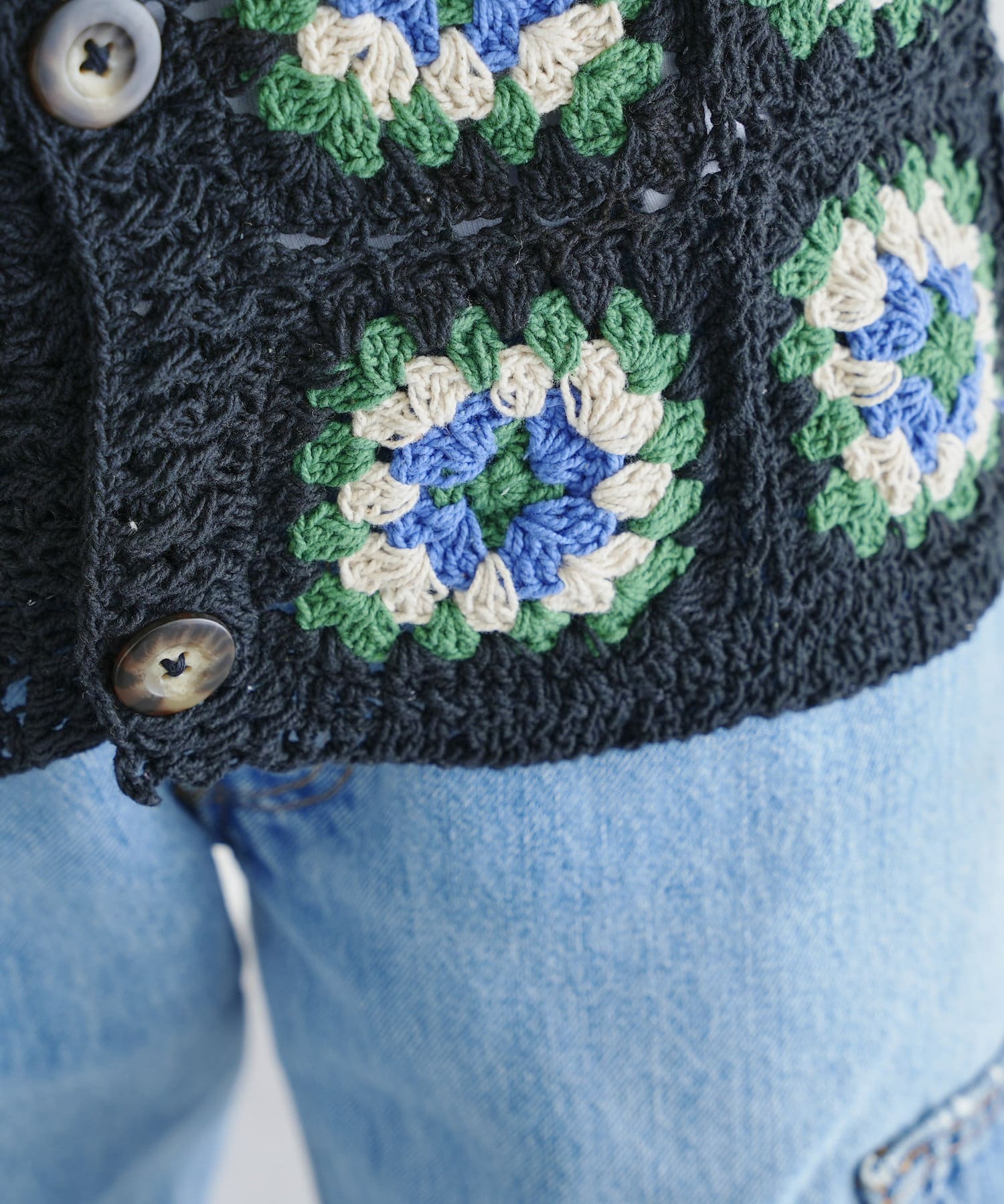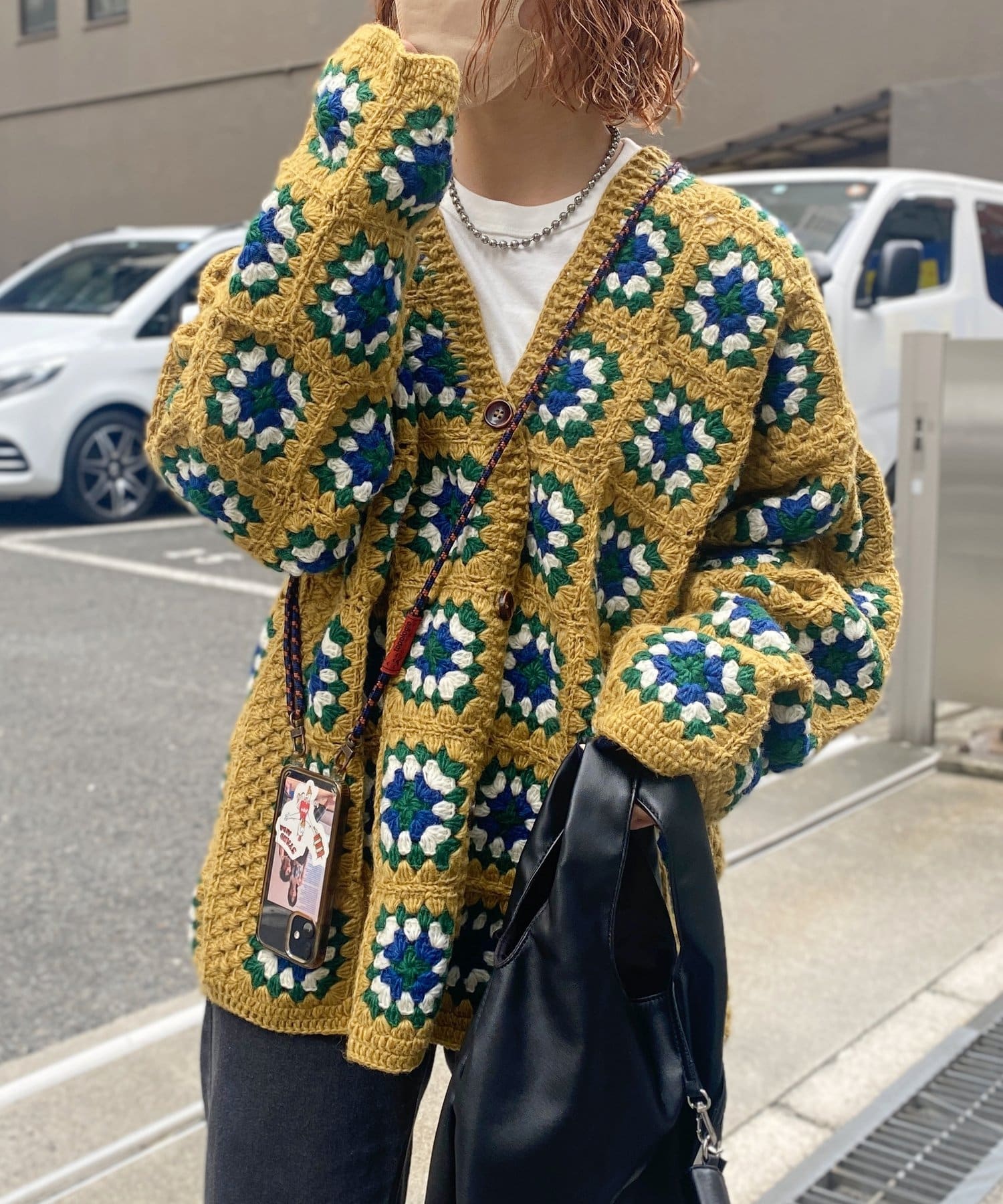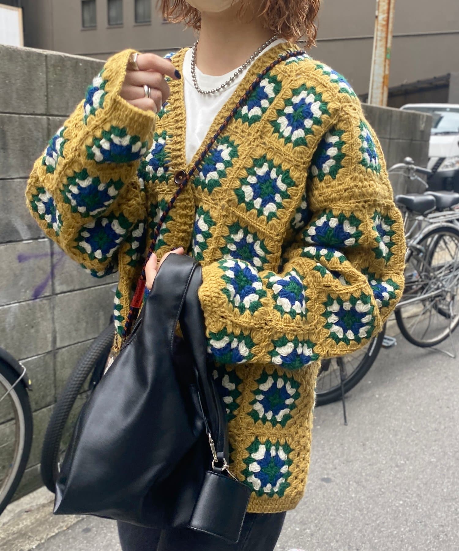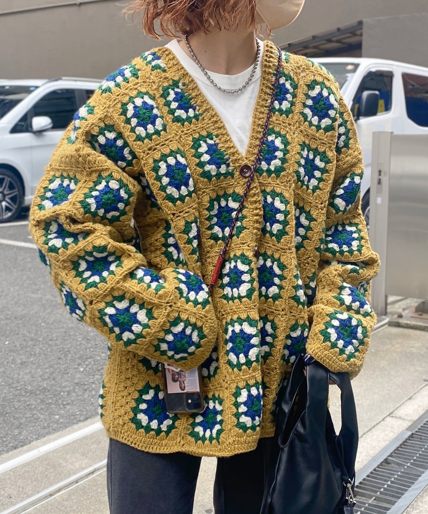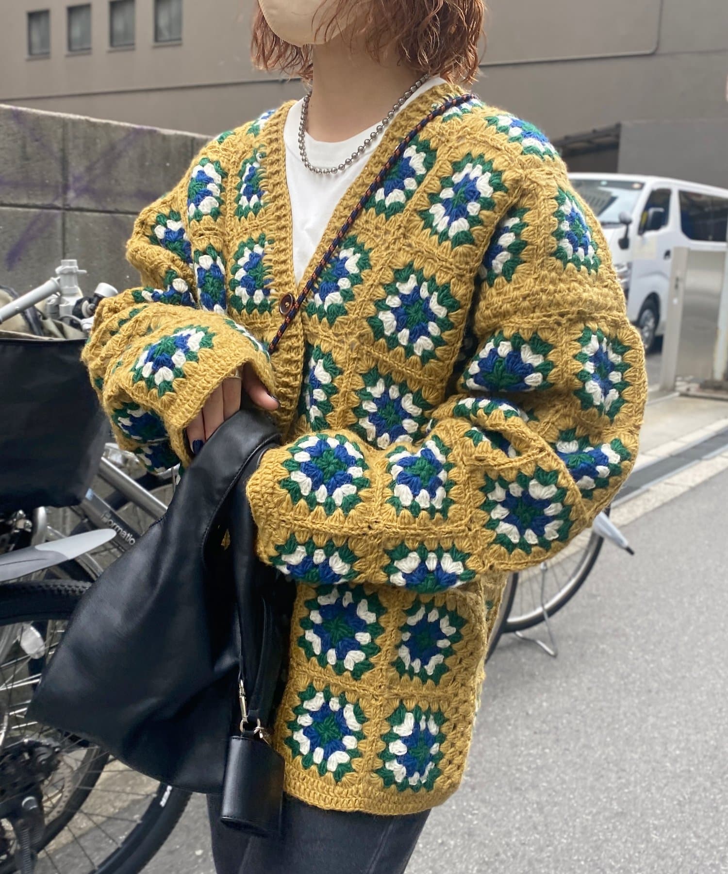 去年即完した今季もトレンド間違いなしのクロシェ編みニットカーディガン。