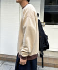 ほど良いオーバーサイズなドロップショルダーとビッグシルエットが、カジュアルながらもトレンド感溢れる大人な印象を演出してくれるスウェット。左胸には、ブランドのアイコンとなる「ダブルフォースマン」刺繍を施したことで、さり気なく目を引くポイントをプラス。1枚での存在感はもちろん、シャツやベストとのレイヤードスタイルや、デニムやワイドパンツをはじめとしてどんなボトムスにも相性良く決まります。着飾らないのに手を抜かない大人にピッタリのプルオーバーです。