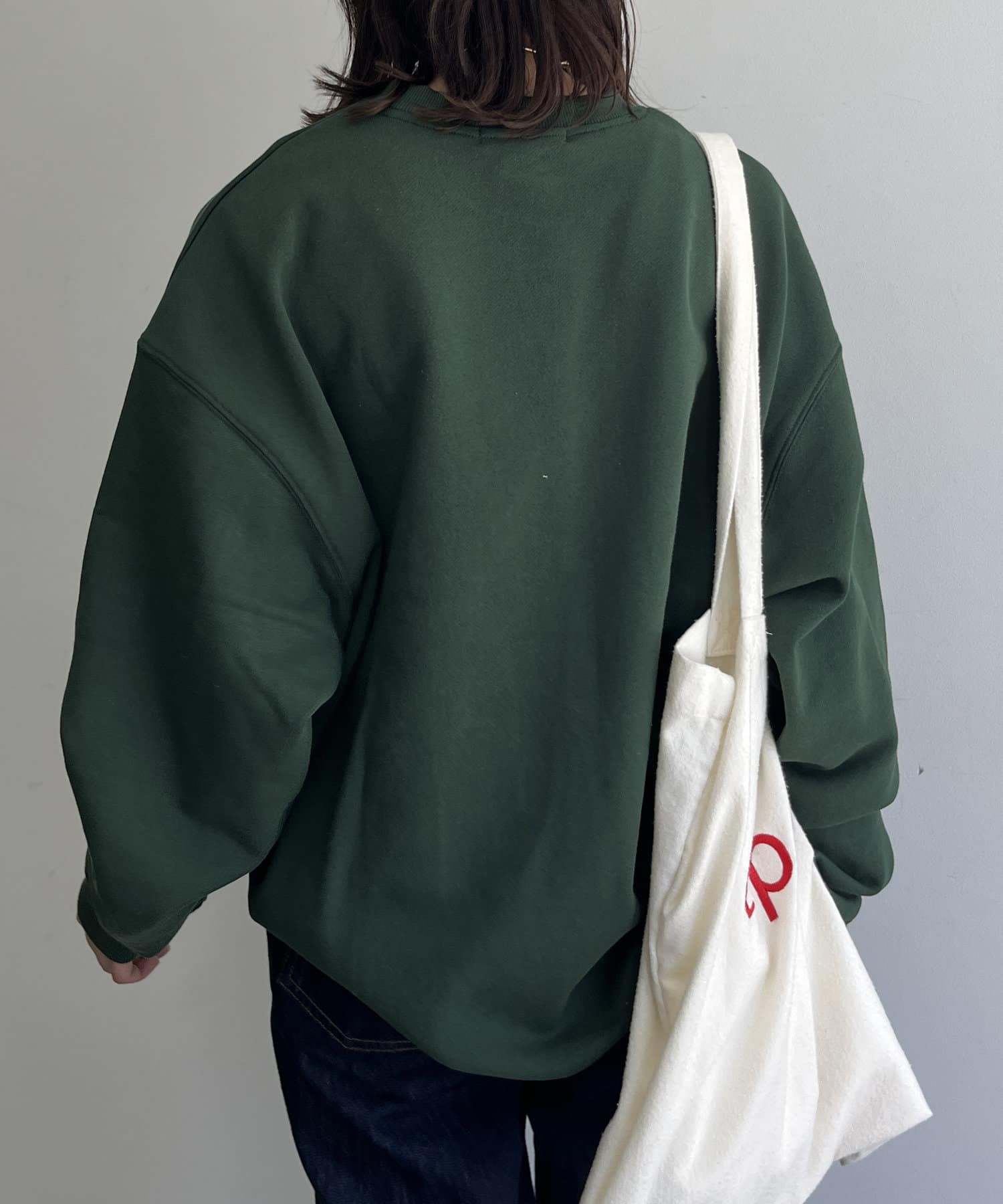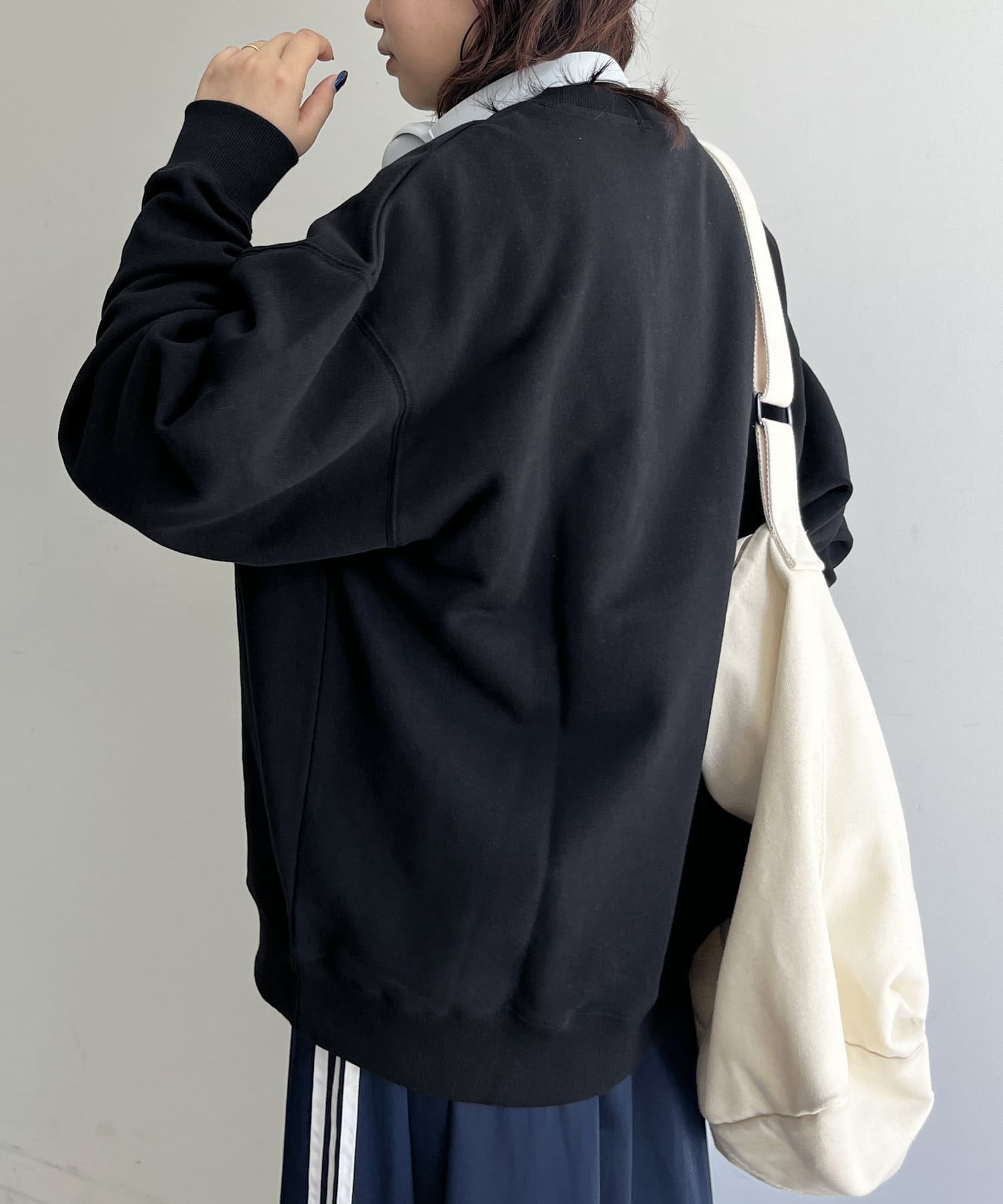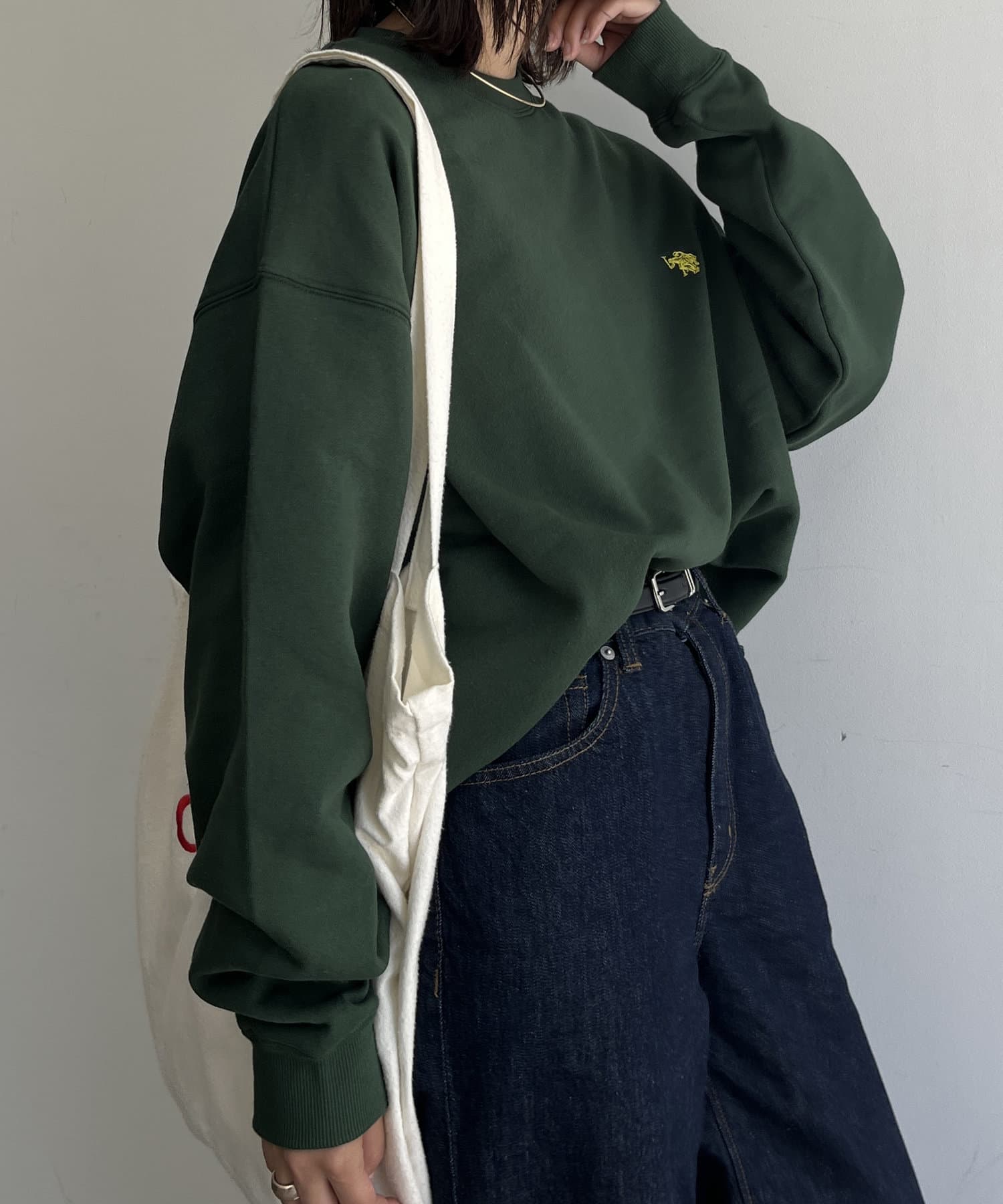 1ポイントの刺繍がアクセントになるビッグシルエットのスウェット