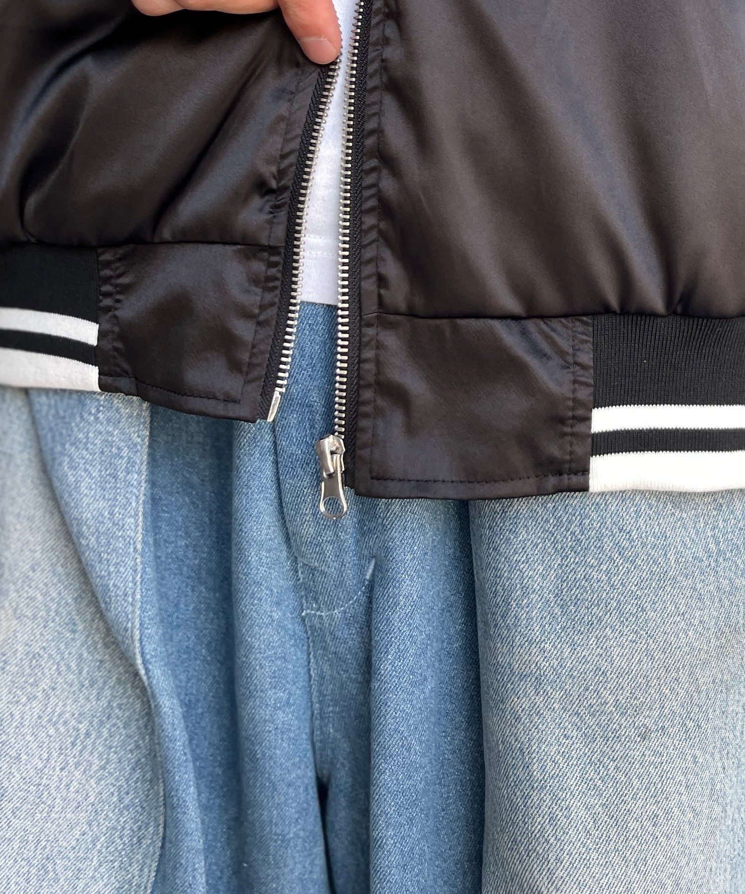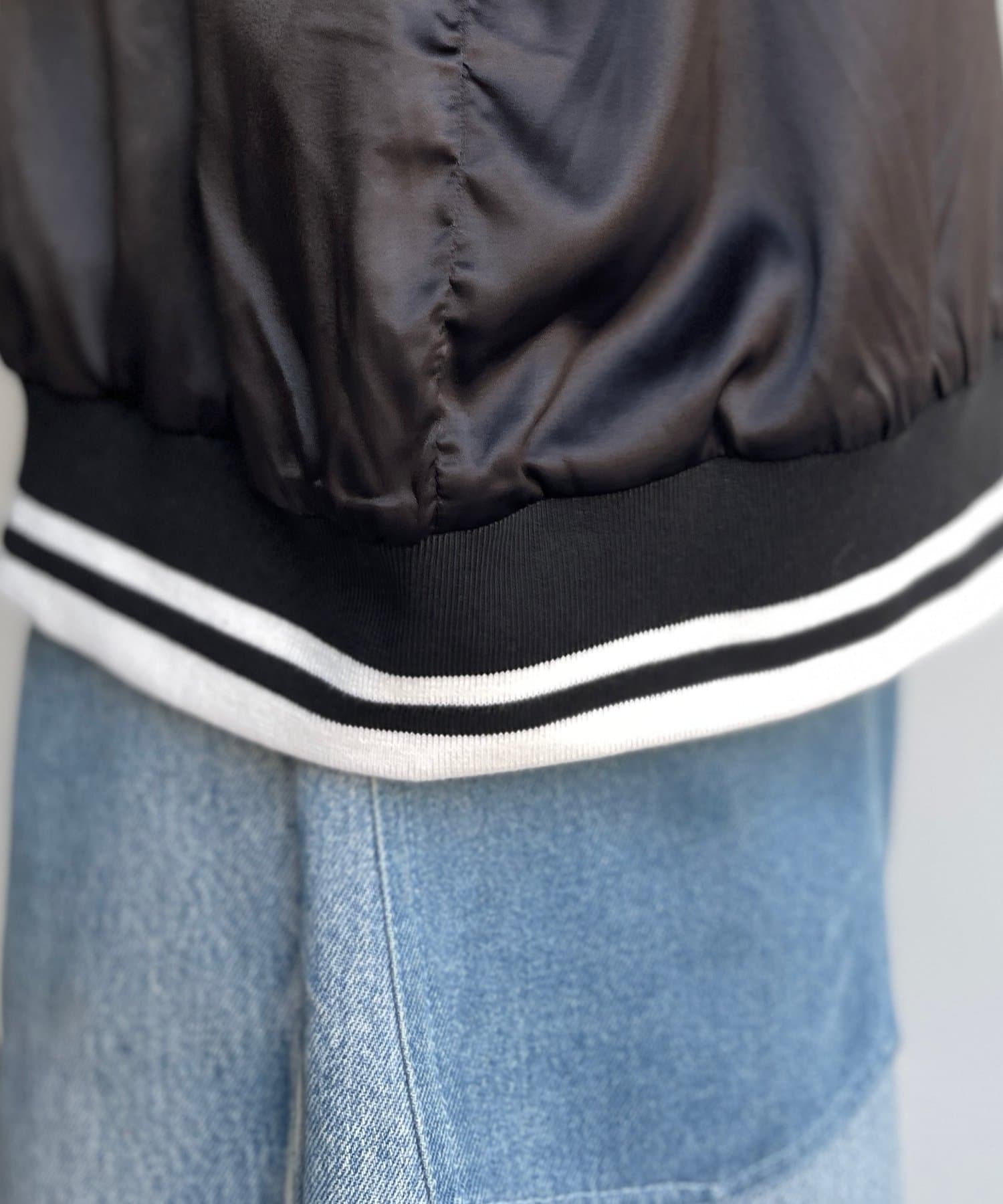 光沢感のあるサテン生地を使用し、袖通しが良くライトな着心地。