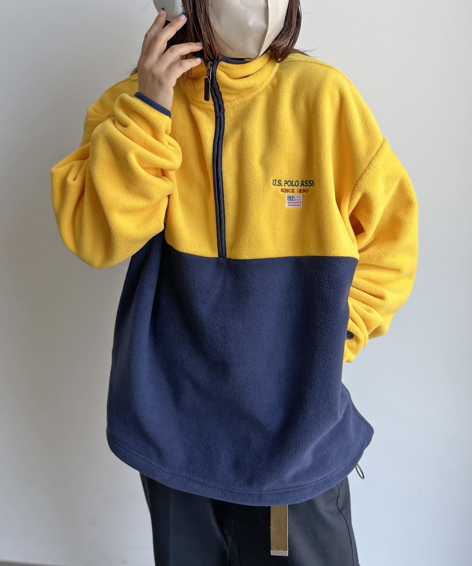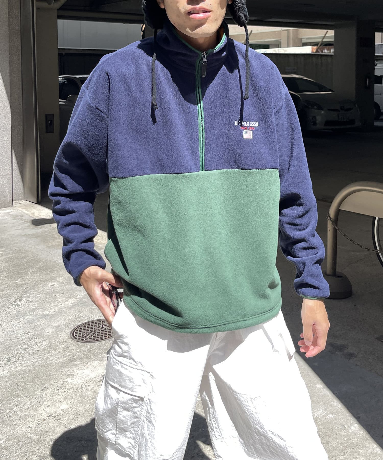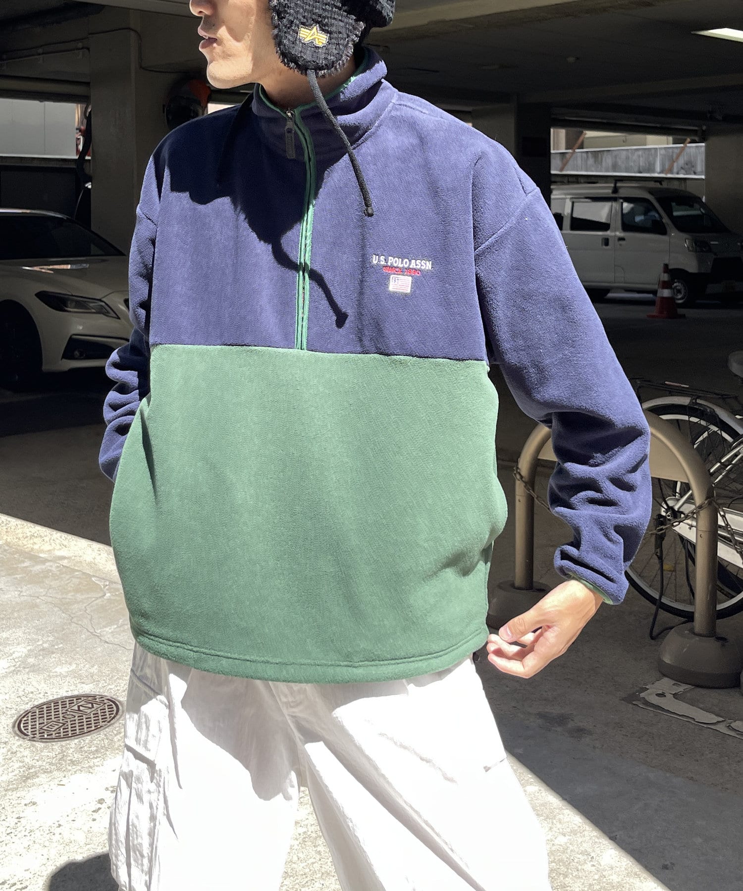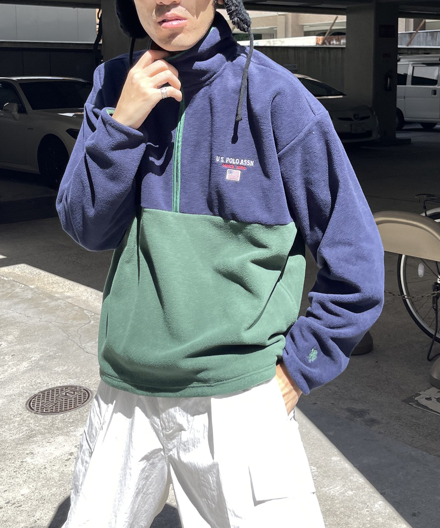 【U.S. POLO ASSN.】 1ポイント刺繍バイカラーフリースアノラック